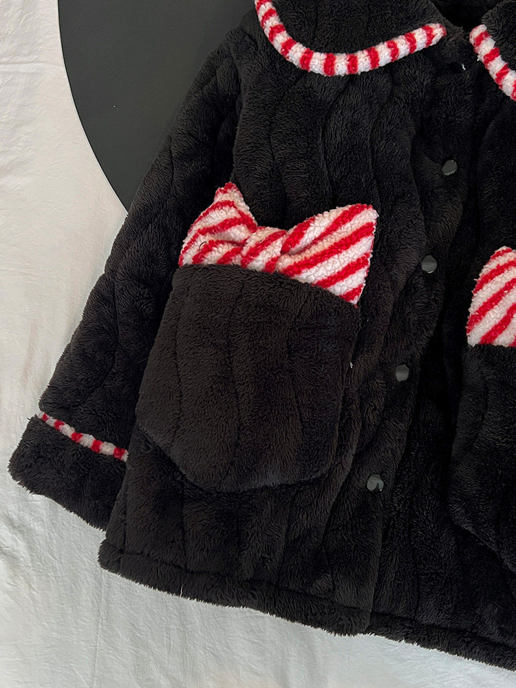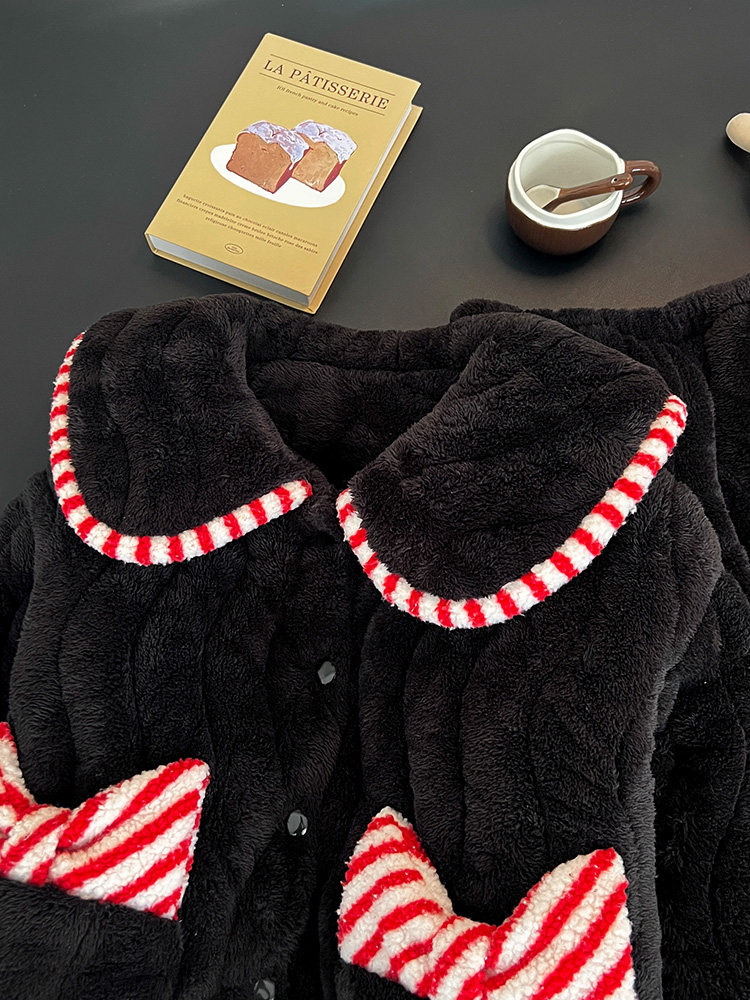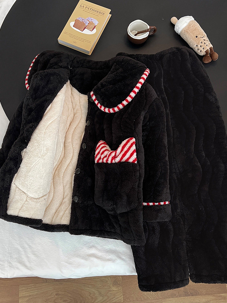 Bow 2025 new coral velvet pajamas for women autumn and winter three-layer quilted plus velvet thickened flannel home clothes
