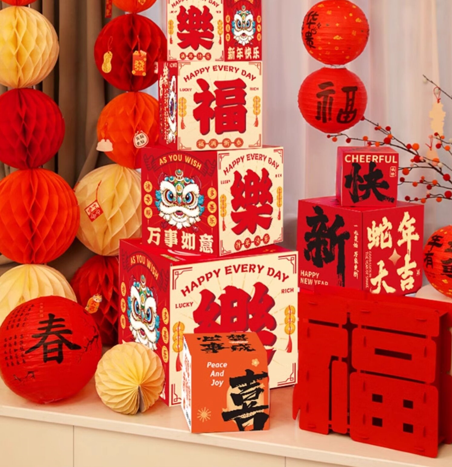 Year of the Horse Atmosphere Decoration New Year Stackable Box Small Ornaments 2026 New Model Spring Festival New Year's Day Shopping Mall Photo Decoration