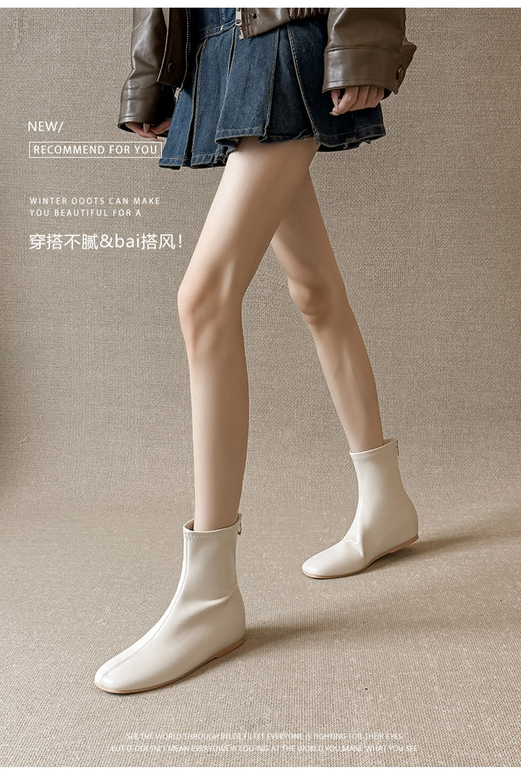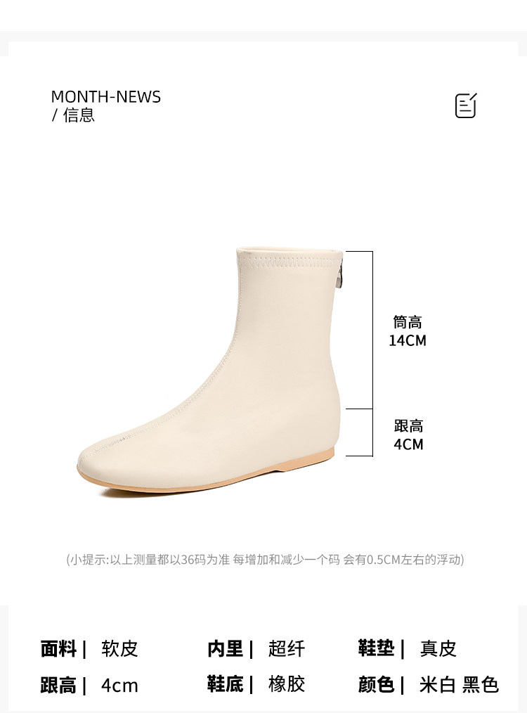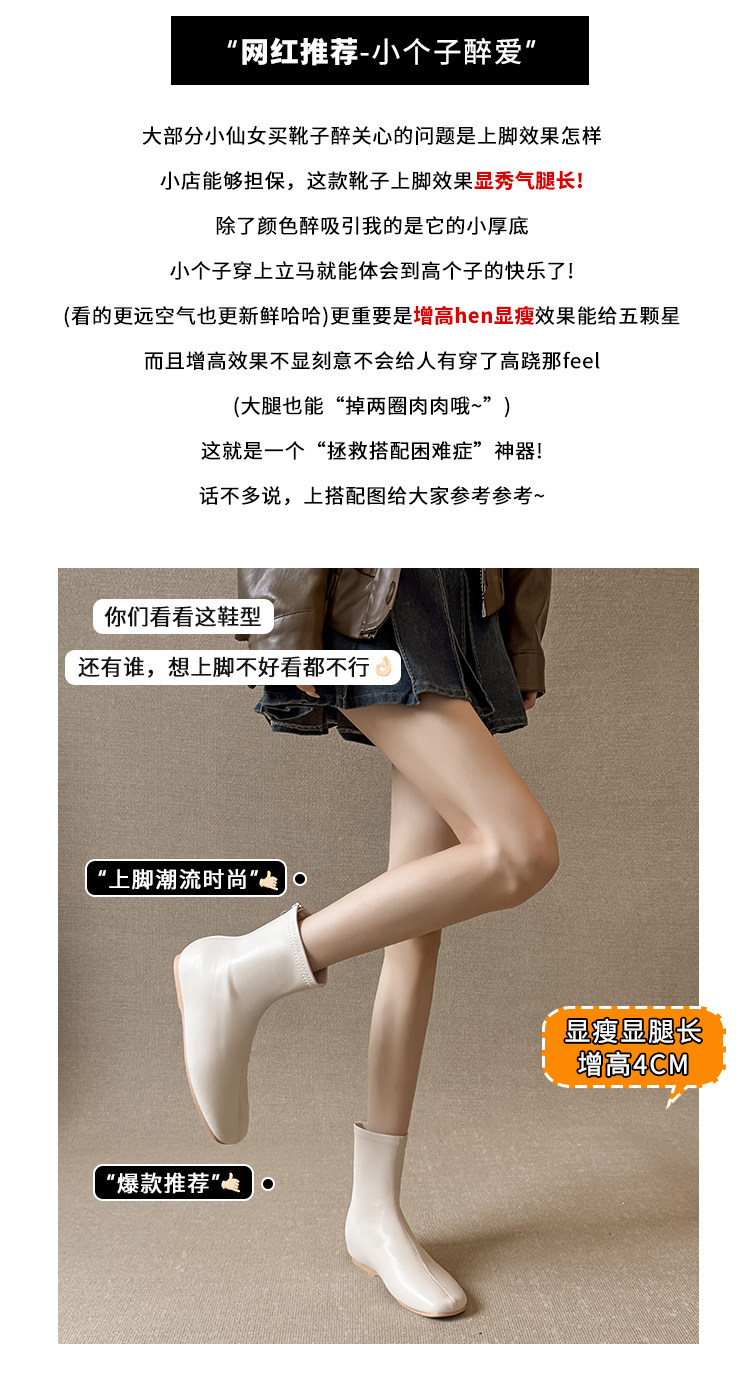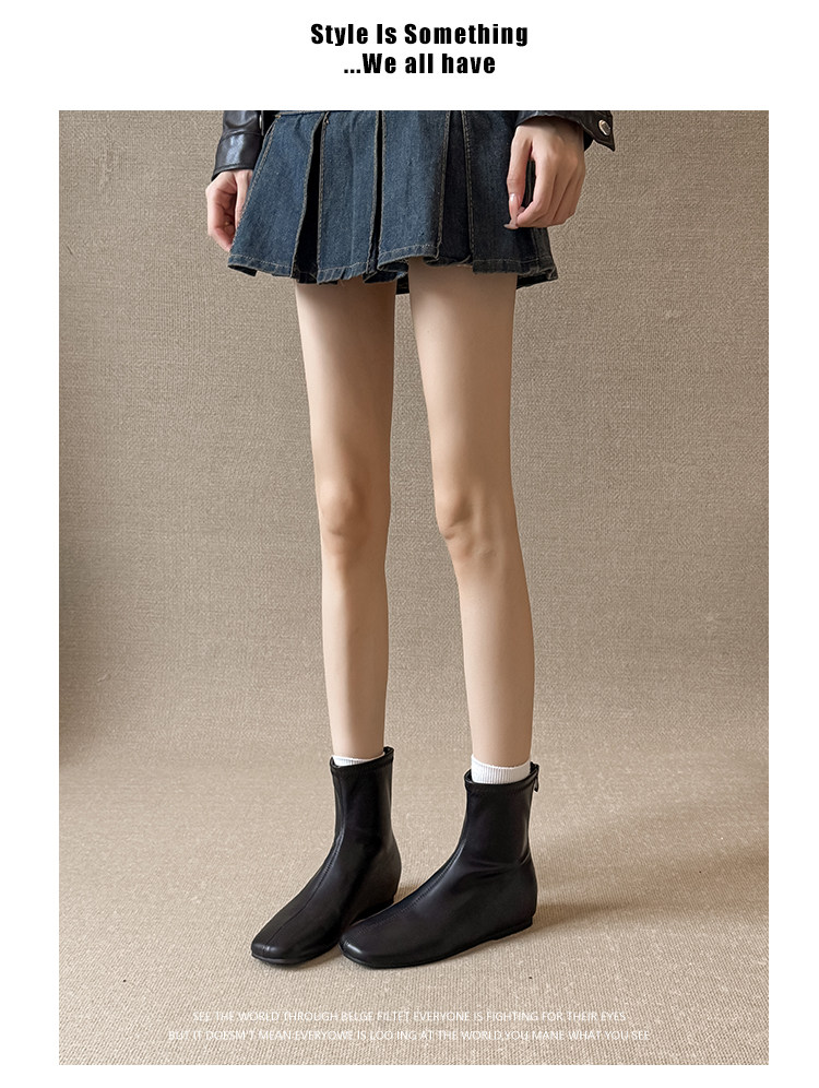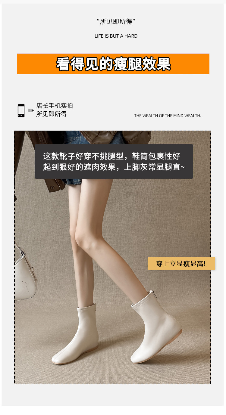 Genuine Leather Slim Boots for Women, Winter Height-Increasing Ankle Boots, Elastic Flat Short Boots, Soft Cowhide Back Zipper Slimming Single Boots
