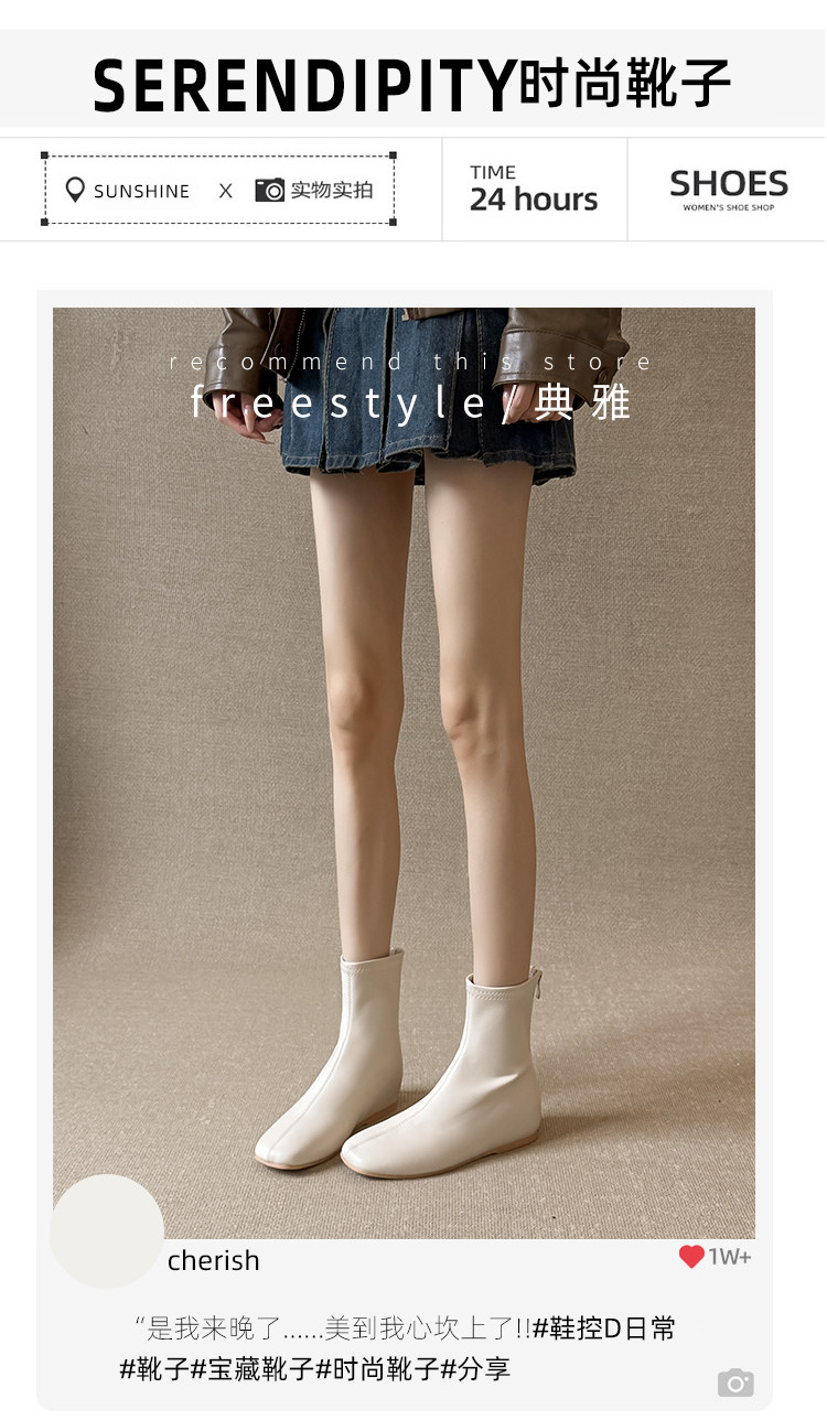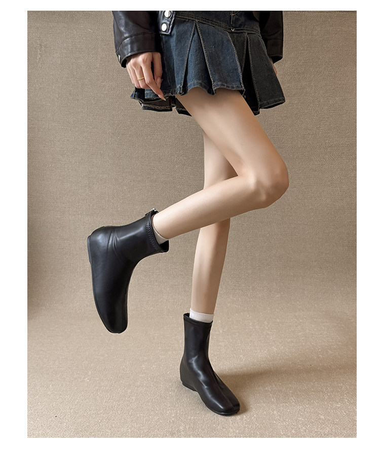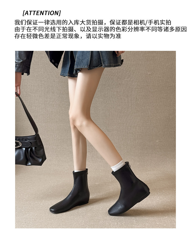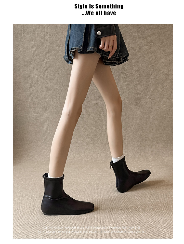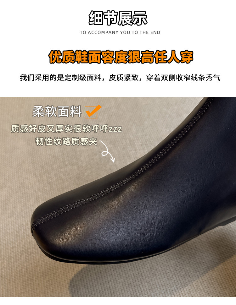 Genuine Leather Slim Boots for Women, Winter Height-Increasing Ankle Boots, Elastic Flat Short Boots, Soft Cowhide Back Zipper Slimming Single Boots