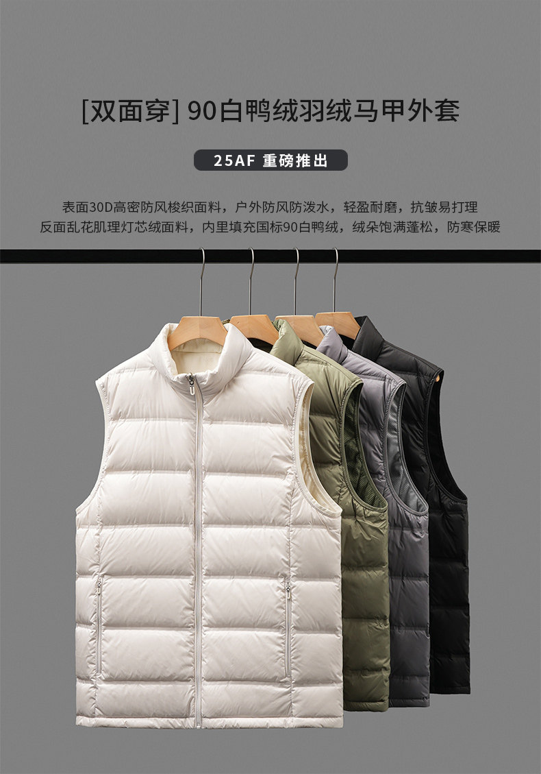 Pure 90 duck down down vest men's winter cold-proof and warm double-sided liner vest stand-up collar vest jacket