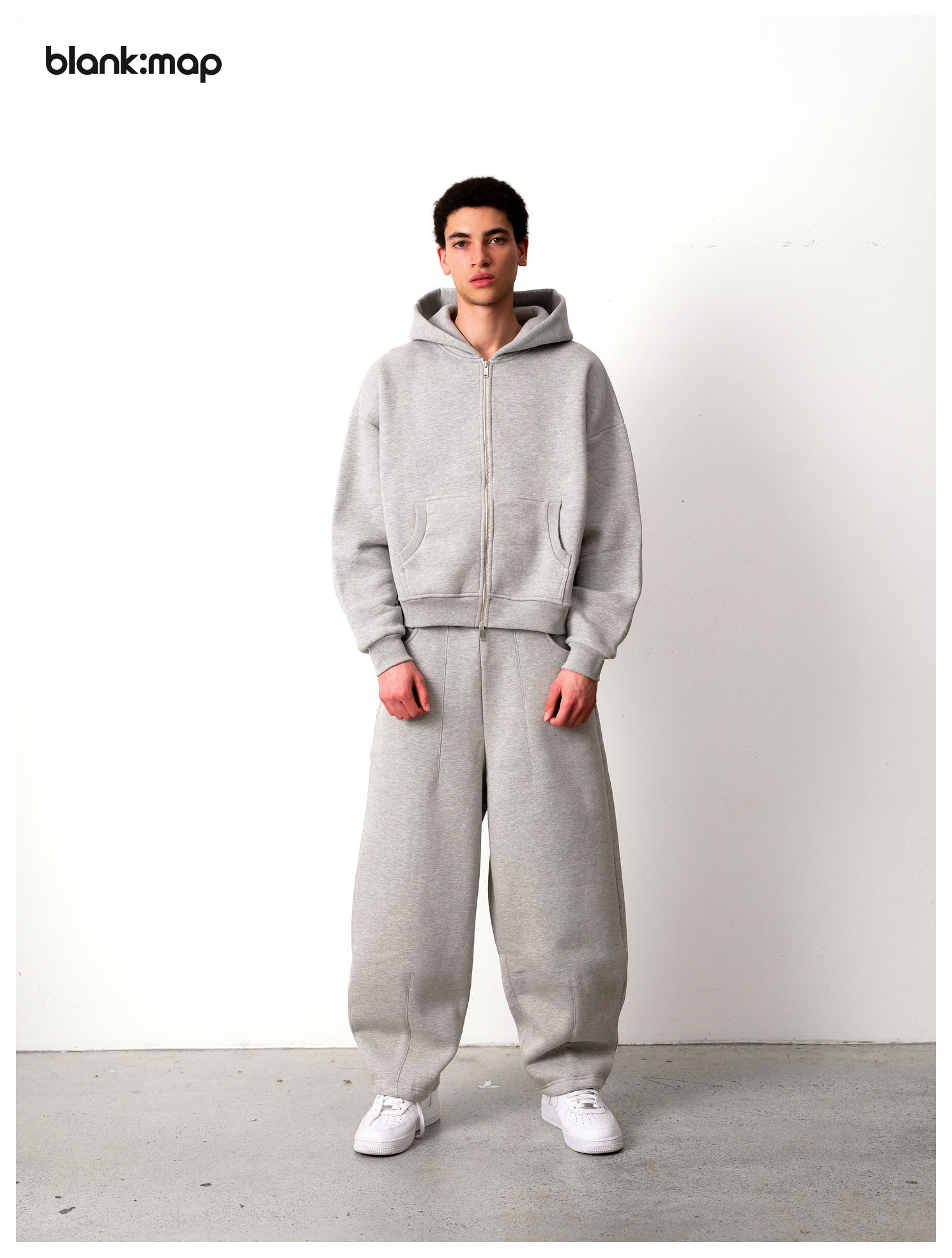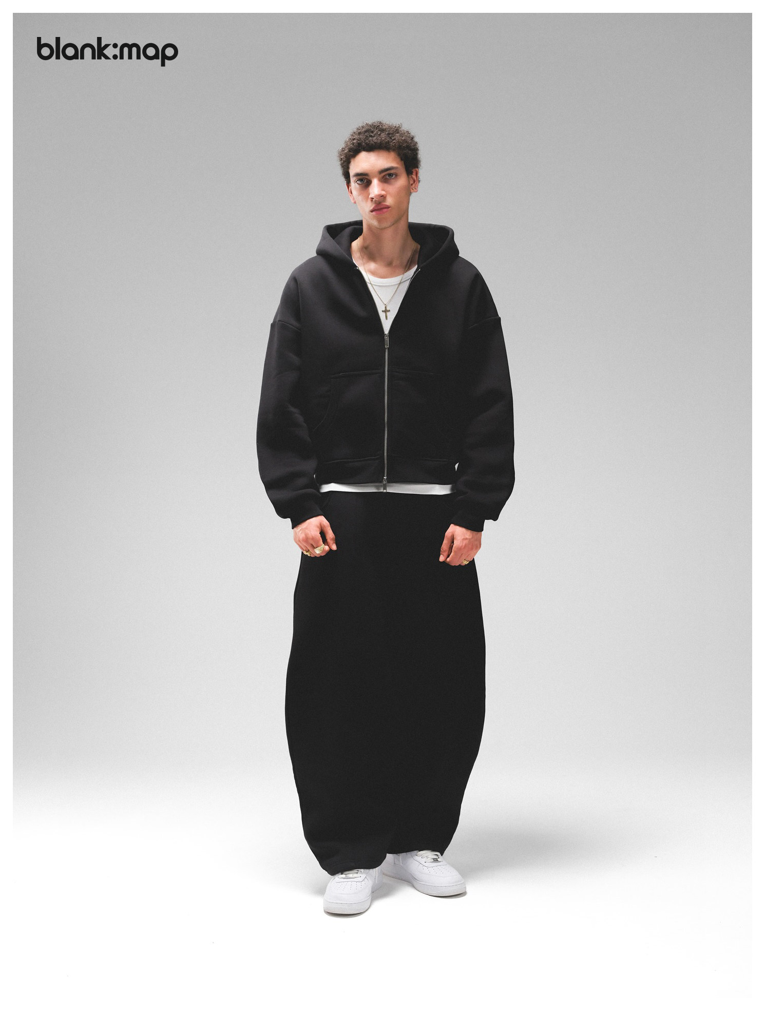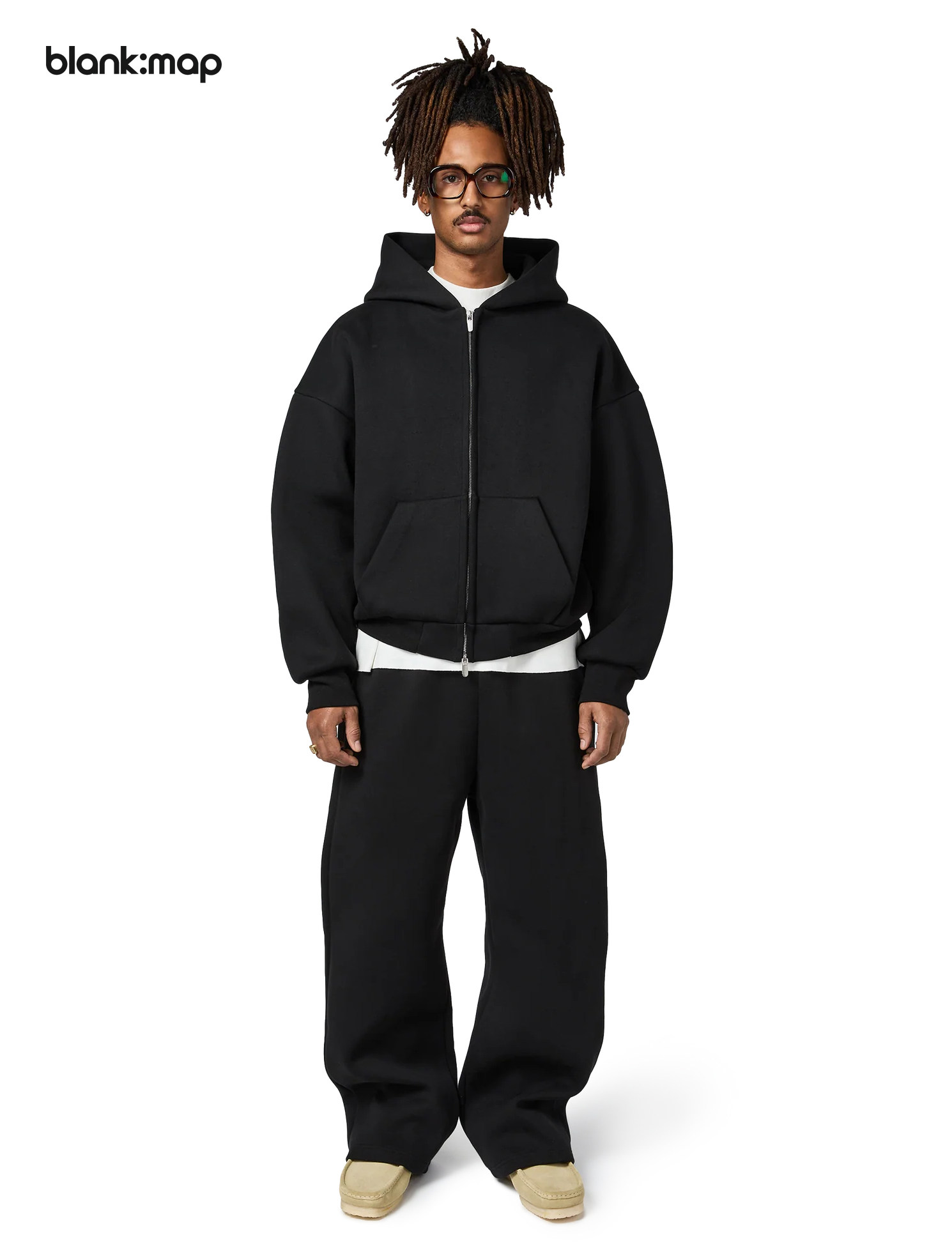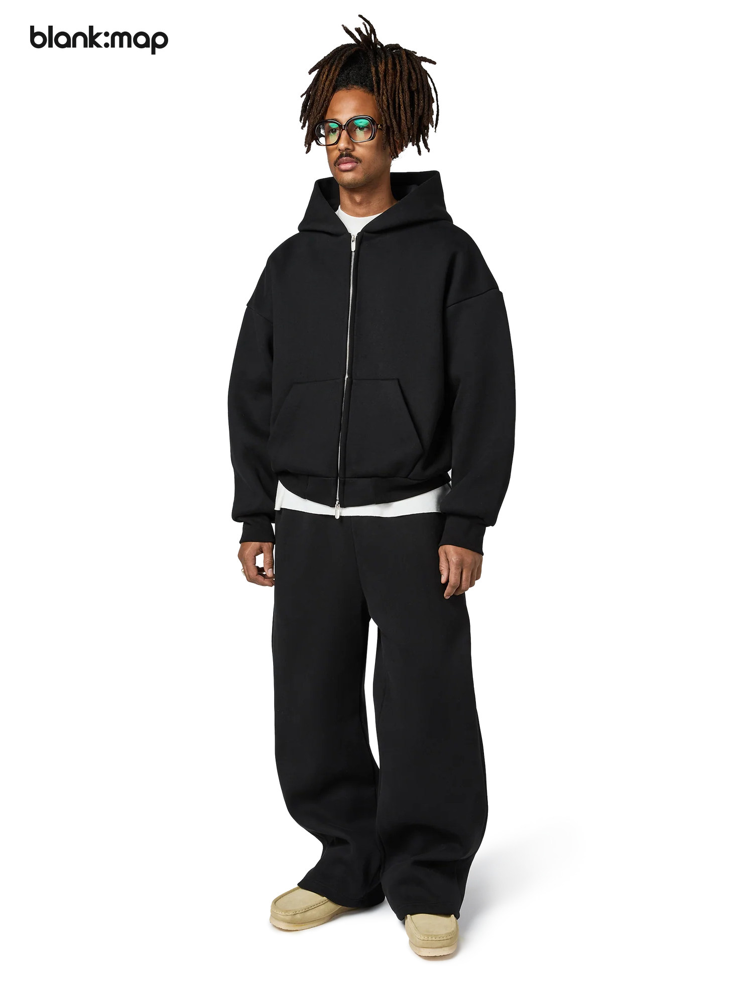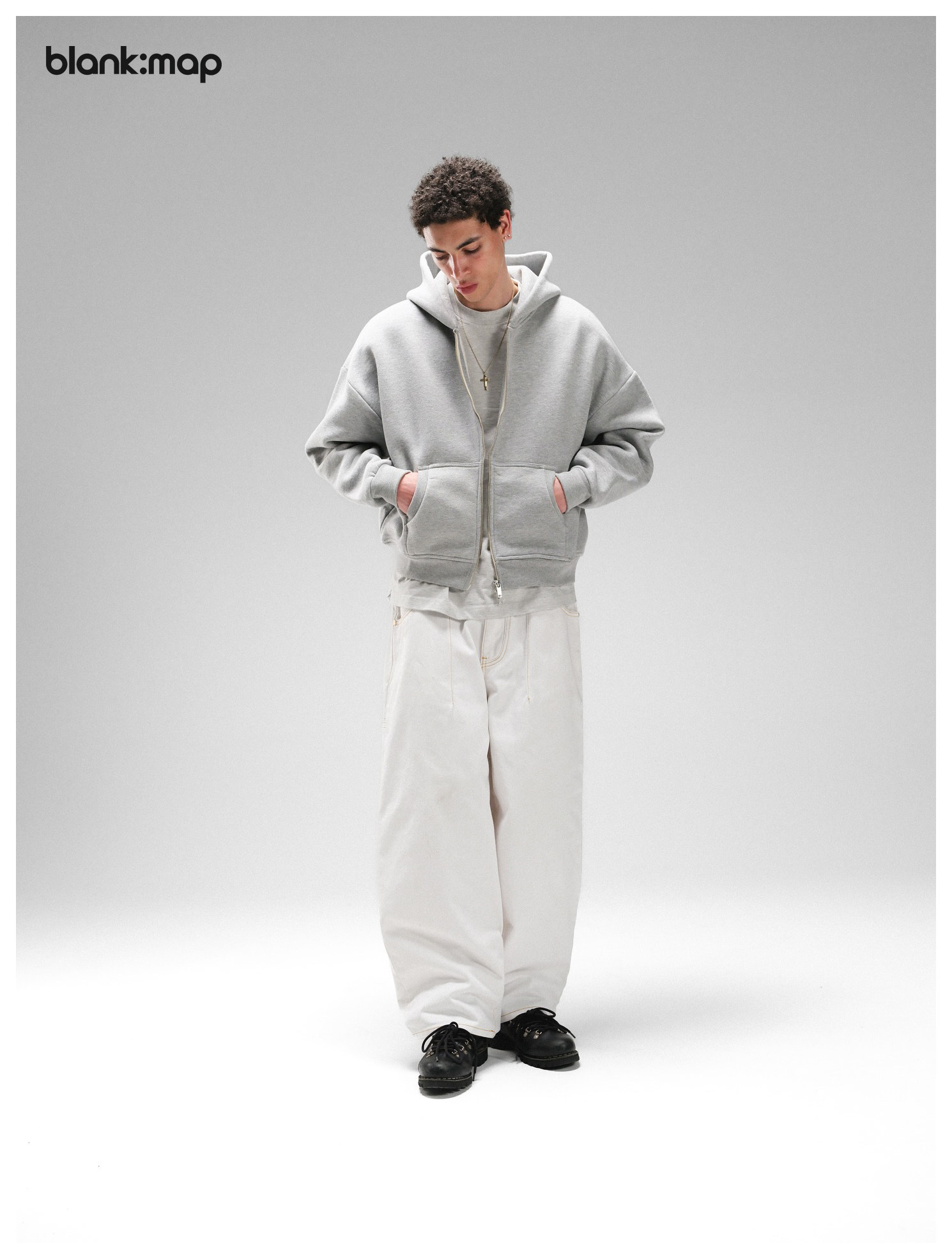 Blank Map American short boxy double zipper sweatshirt cleanfit heavyweight 500g stand-up hoodie men's trend