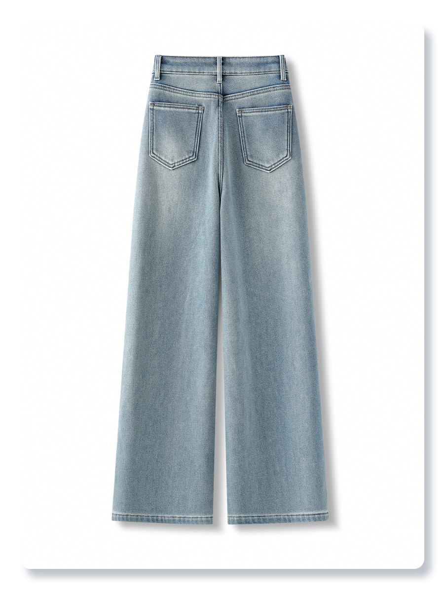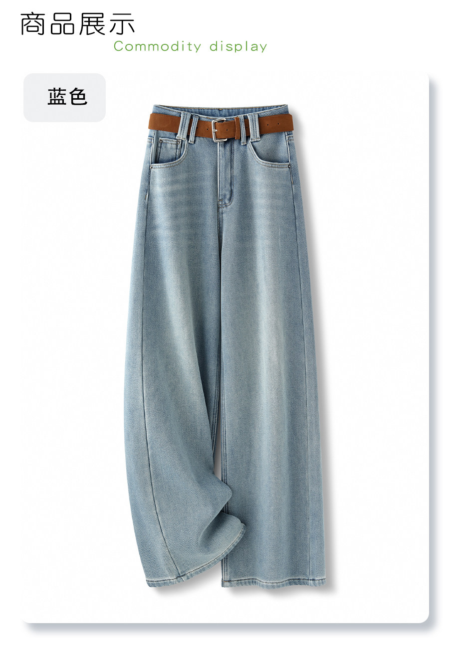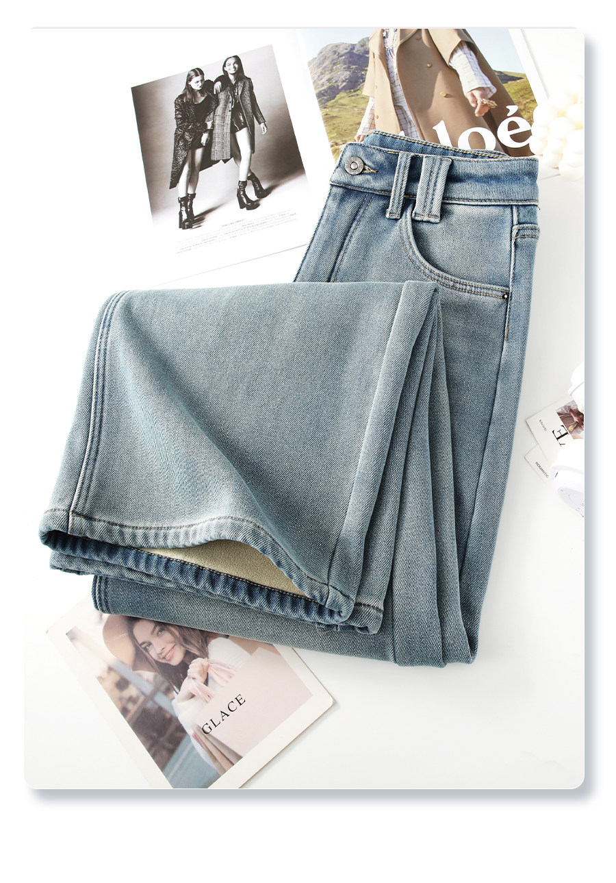 Light-colored narrow version denim wide-legged women's 2025 winter new high-waisted loose thickened plus velvet drape casual straight pants