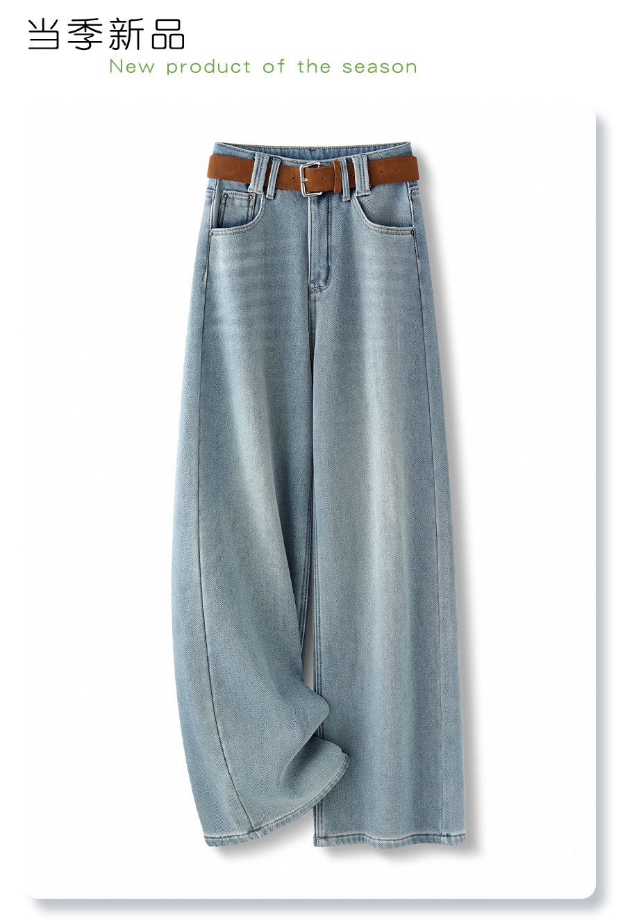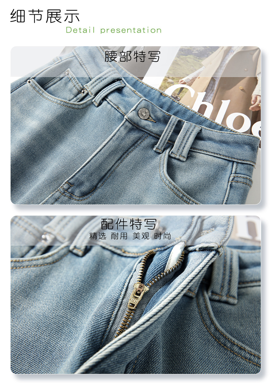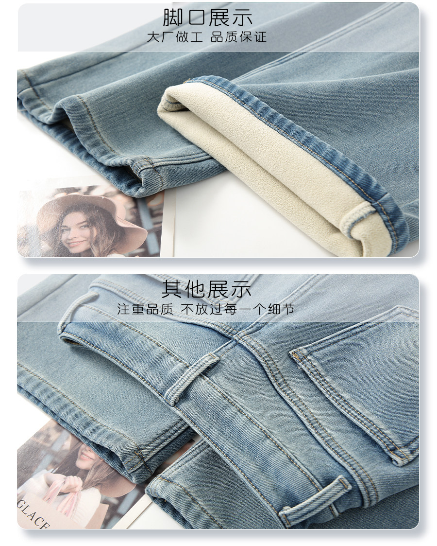 Light-colored narrow version denim wide-legged women's 2025 winter new high-waisted loose thickened plus velvet drape casual straight pants