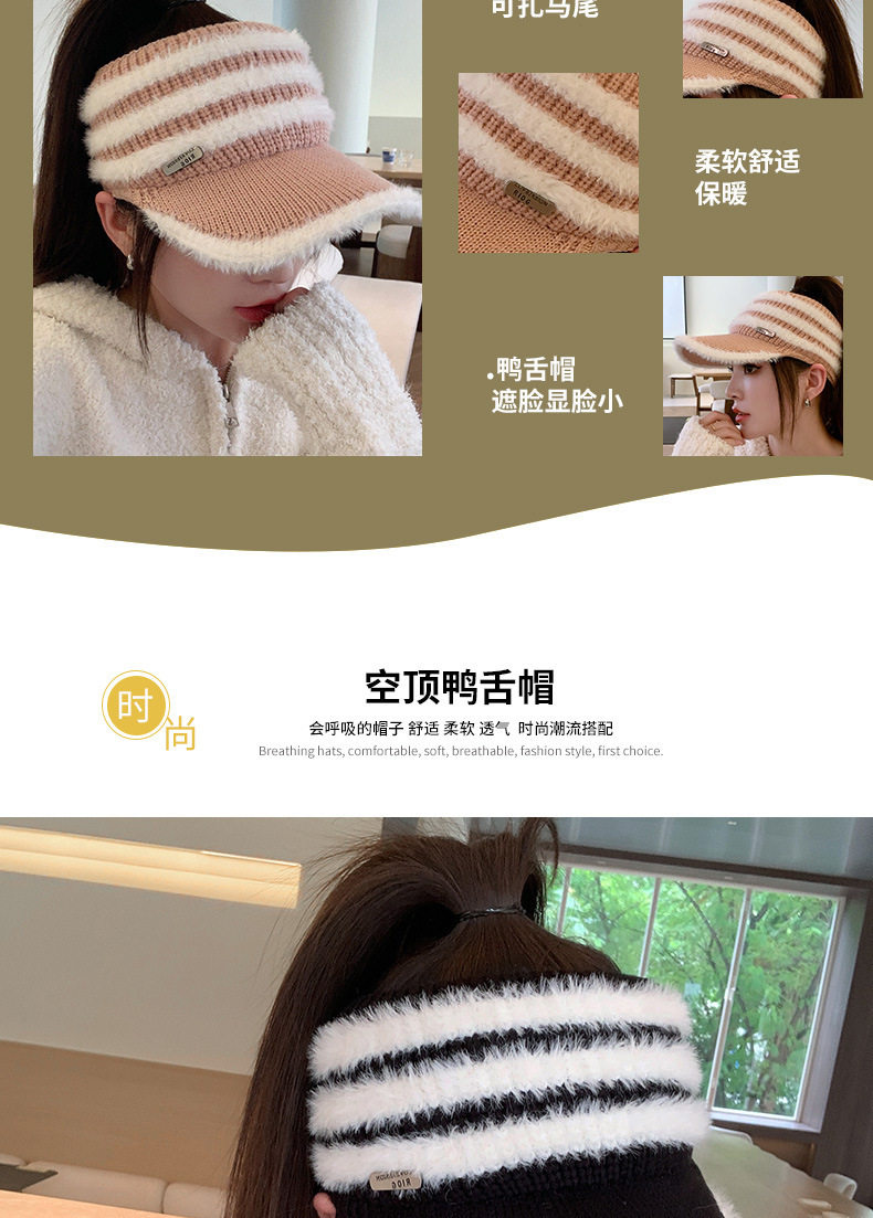 Women's Running Hat, Autumn and Winter Thickened Warm Knit Hat, Outdoor Cycling Ear Protection Hat, Open-Top Baseball Cap