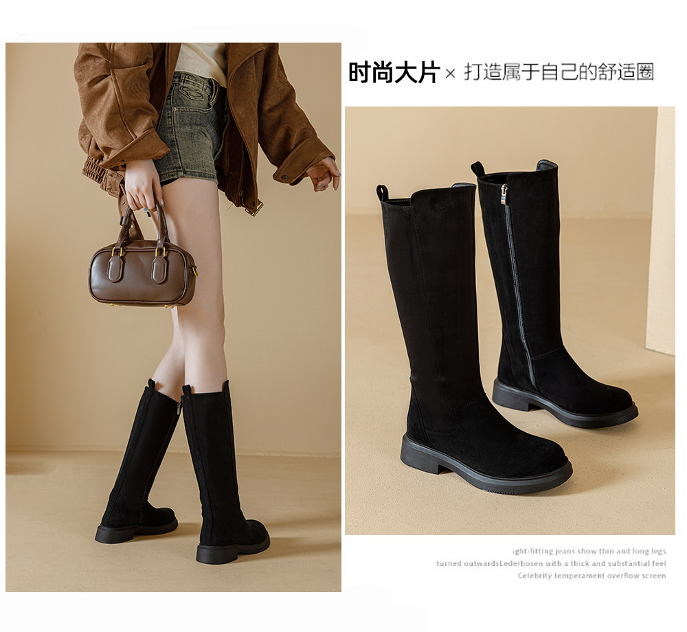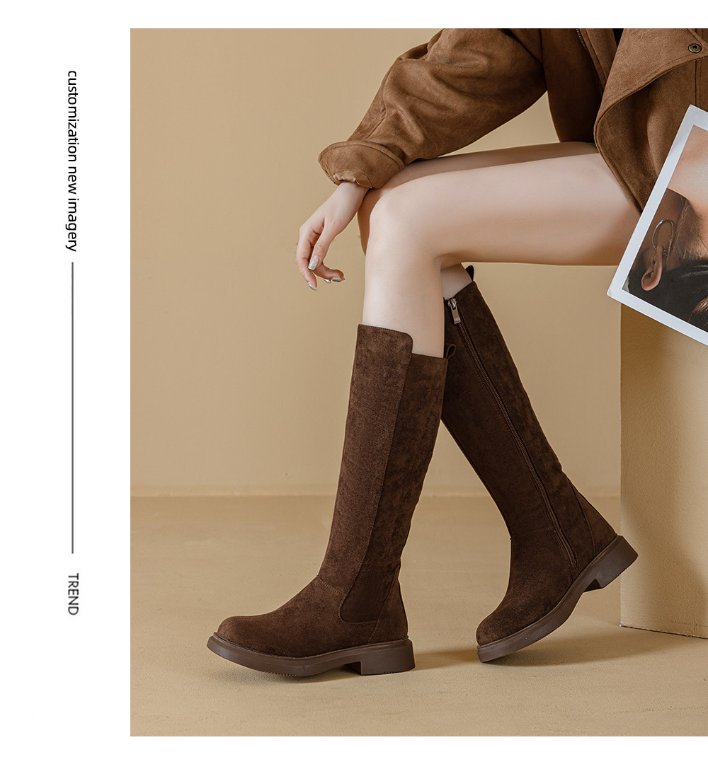 Long Boots for Women 2025 New Winter Style Fleece-Lined Boots with Chunky Heels, Knee-High Riding Boots, Martin Slim Boots