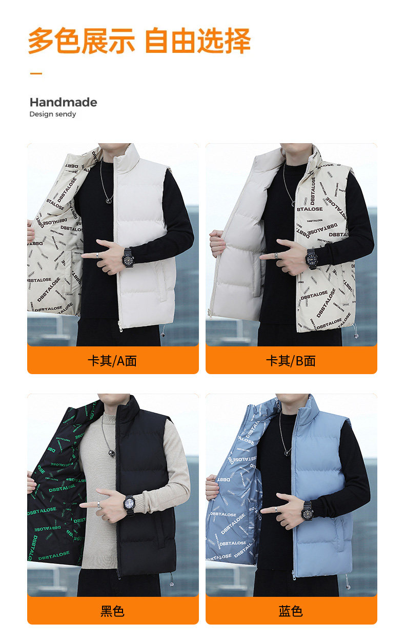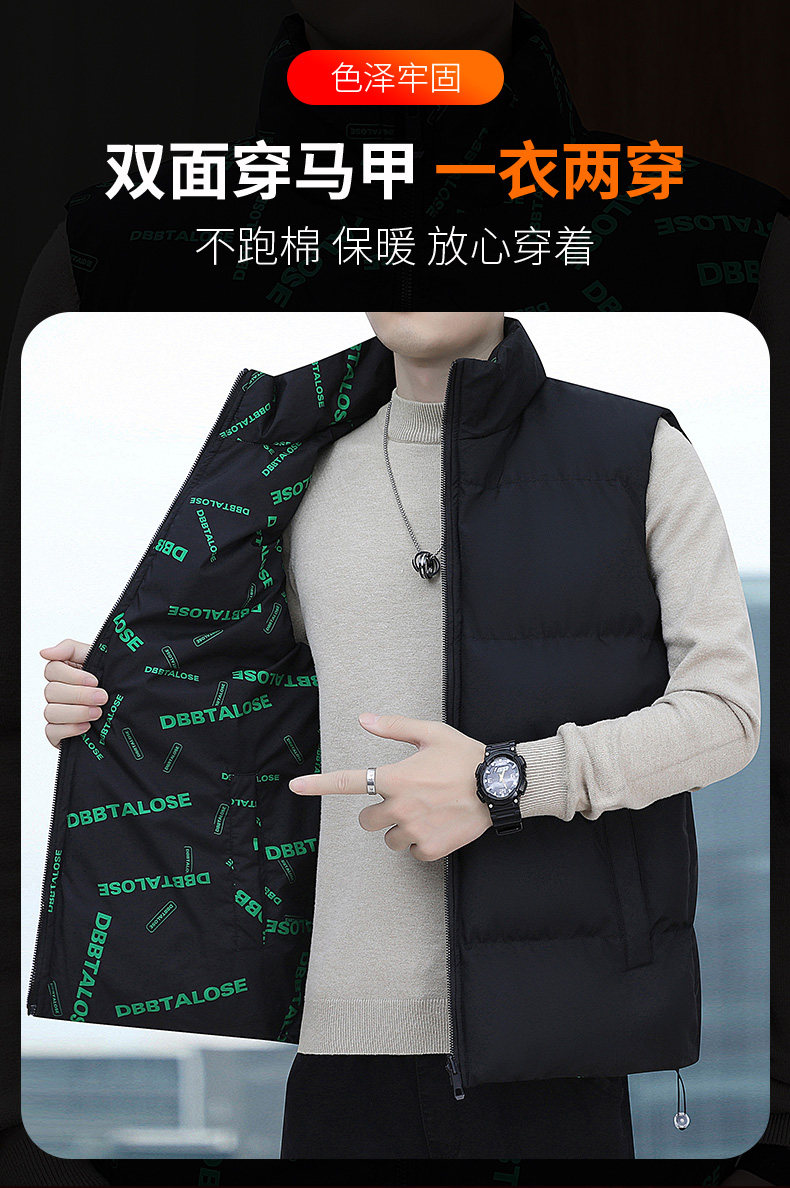 Oriental Camel Vest Men's Autumn and Winter Reversible Vest Cotton Warm Thick Down Cotton Vest Jacket Men