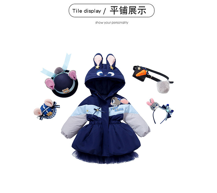 Judy Rabbit Polizist Daunenjacke Kinder verdickte warme Jacke mittellange Mädchen Lolita Winterkleidung neuer Stil