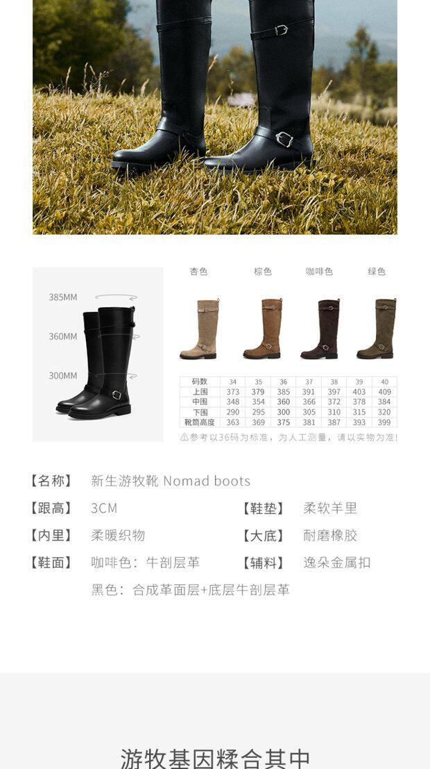 Natursun knight boots 2025 new winter retro black nomad boots long boots n25580901