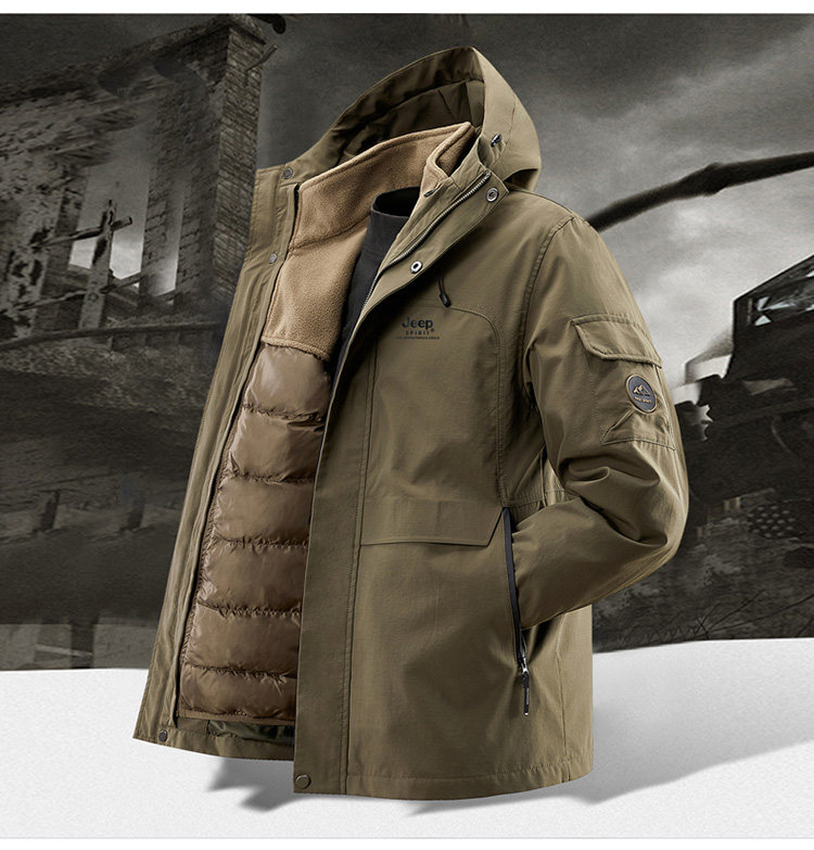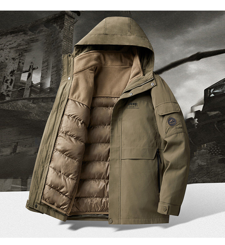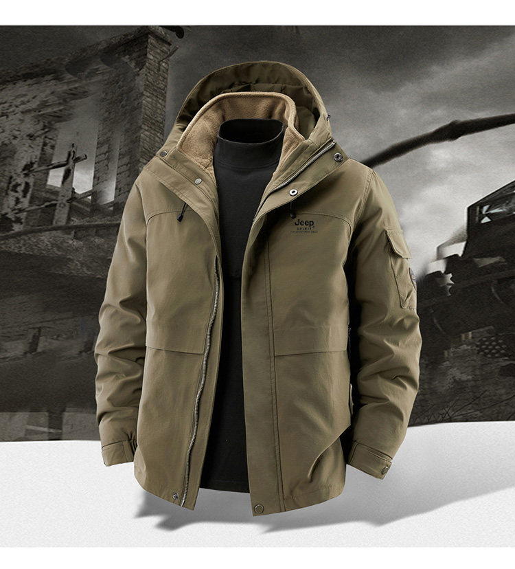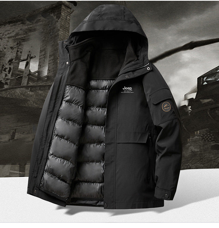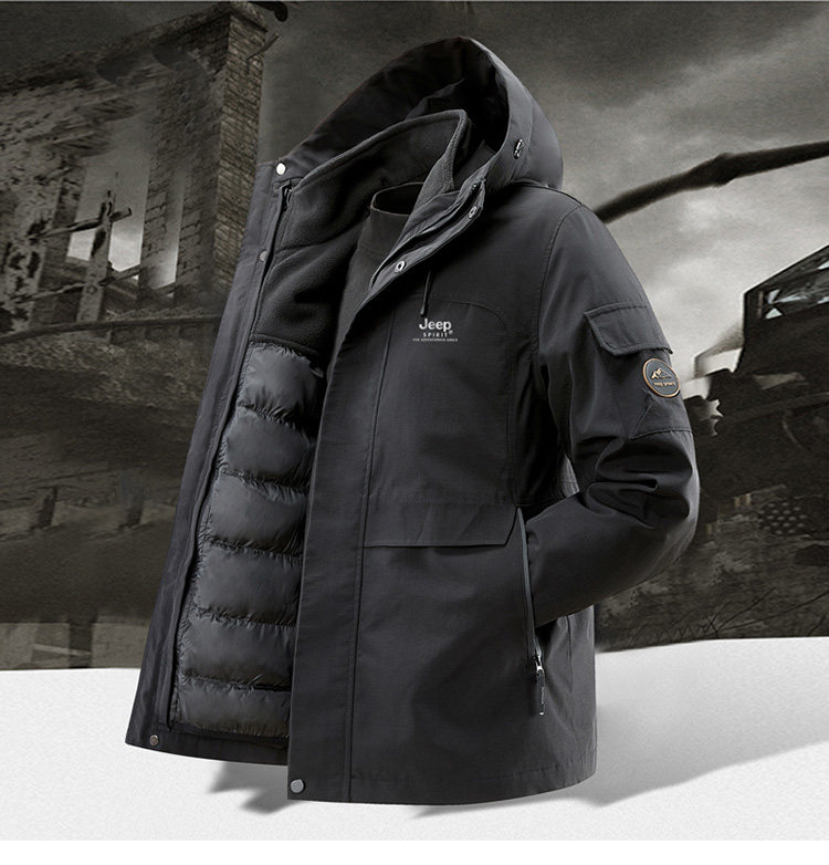 Jeep Jacket Men's Winter Removable Liner Jacket Cotton Thickened Coldproof Cotton Warm Casual Jacket