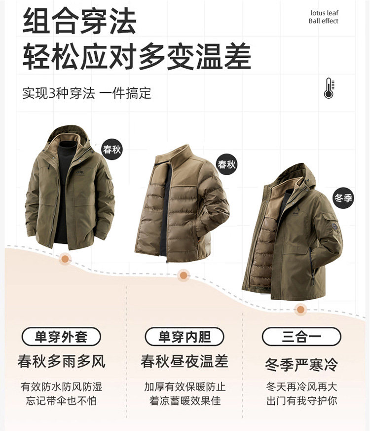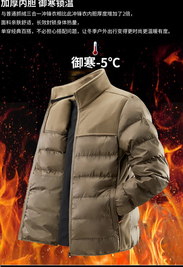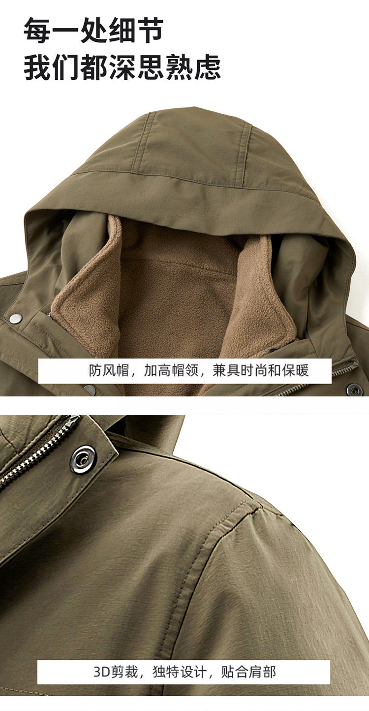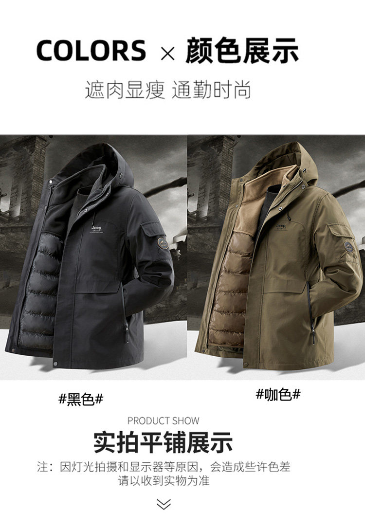 Jeep Jacket Men's Winter Removable Liner Jacket Cotton Thickened Coldproof Cotton Warm Casual Jacket