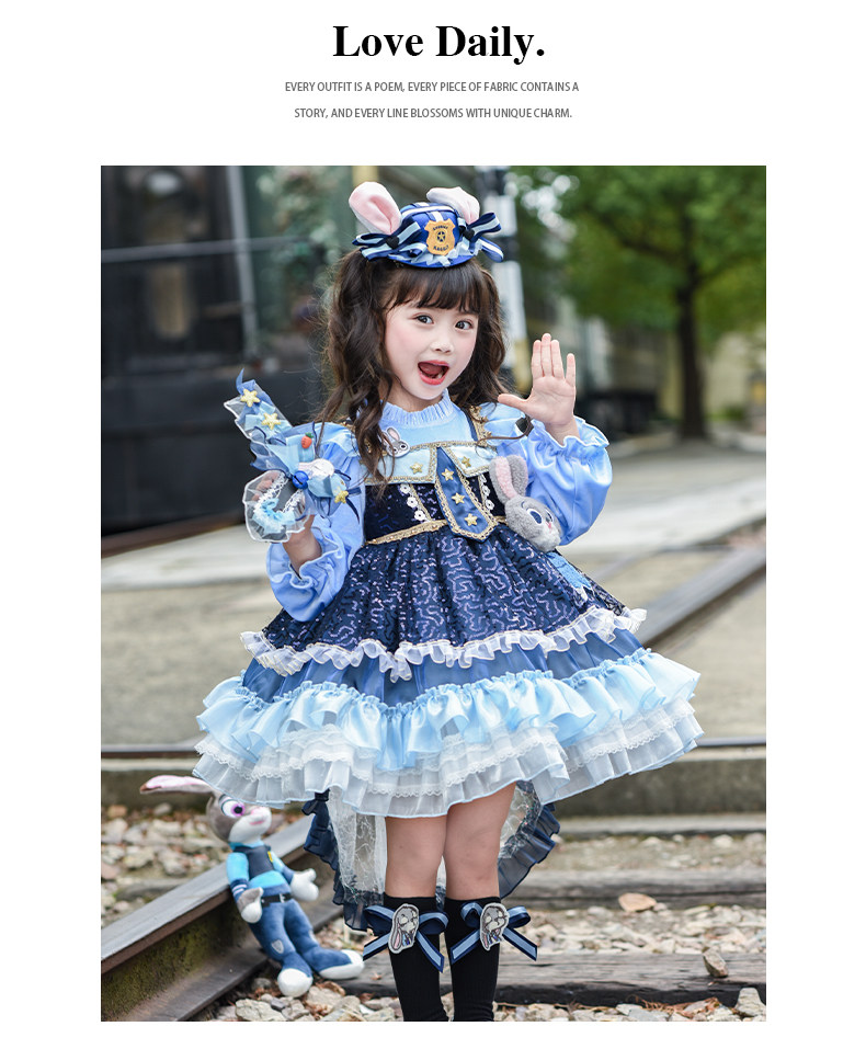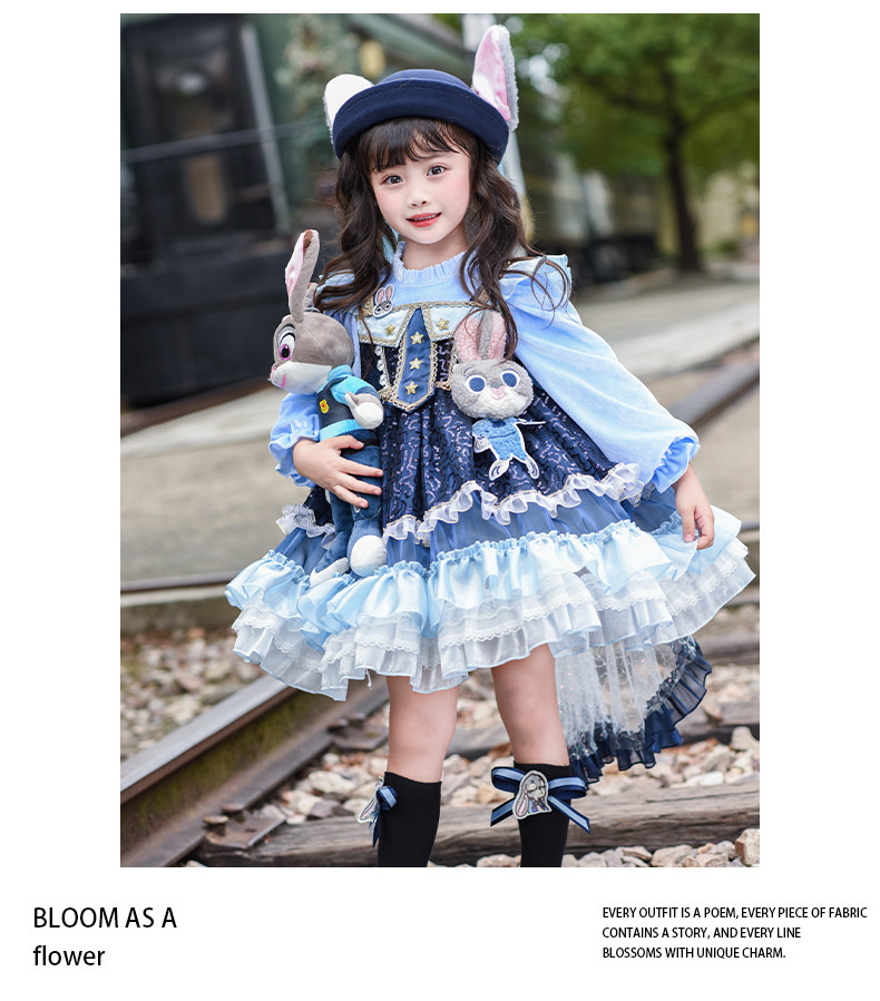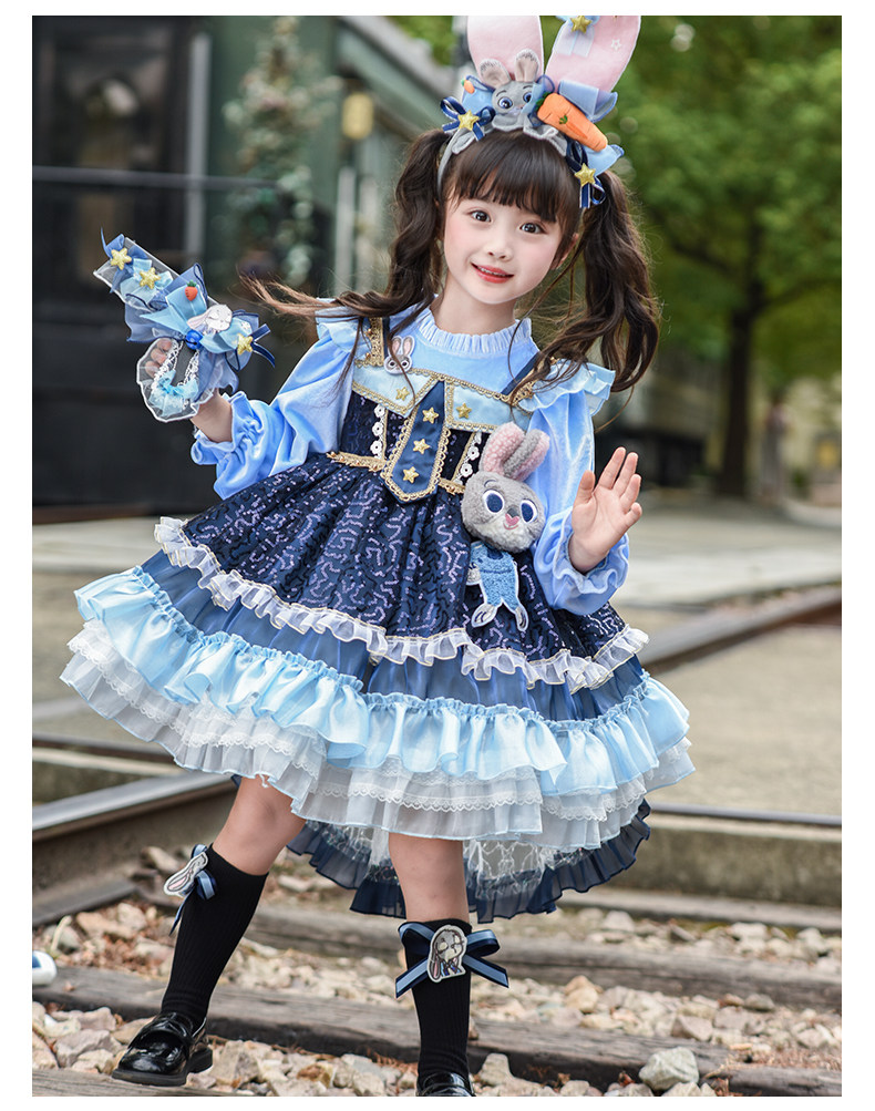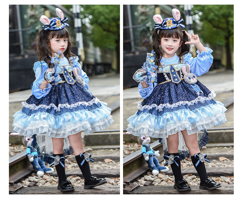 Otoño e Invierno nuevo vestido de policía de conejo para niños falda niña Judy vestido de princesa Lolita vestido de niña