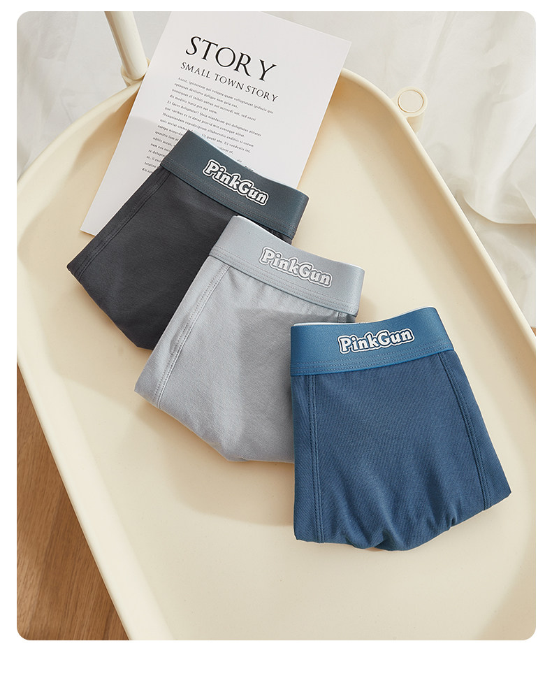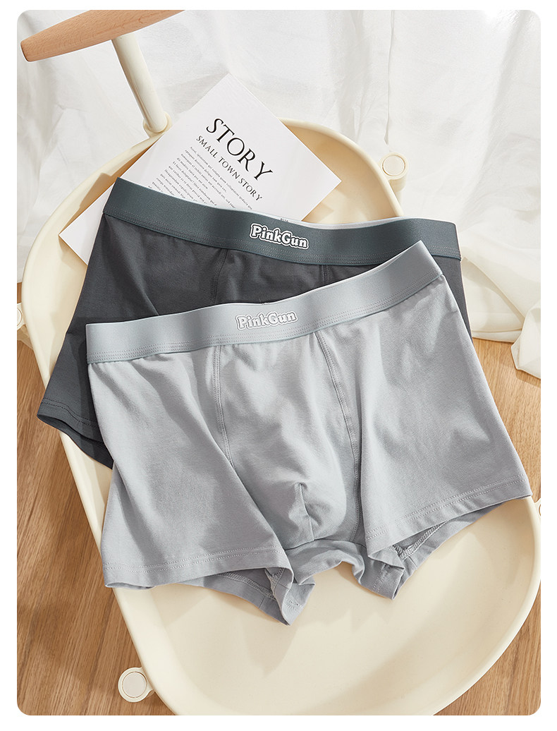 Pure cotton men's underwear, sports solid color boxer briefs, comfortable mid-waist trendy Korean style youth boxer shorts for men