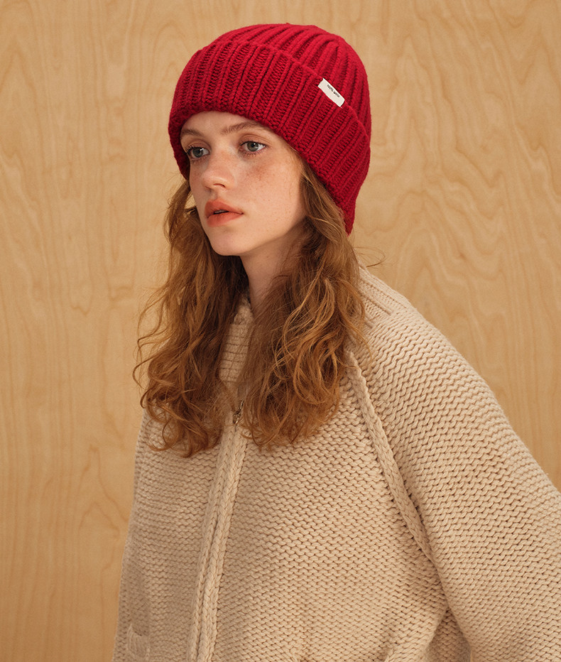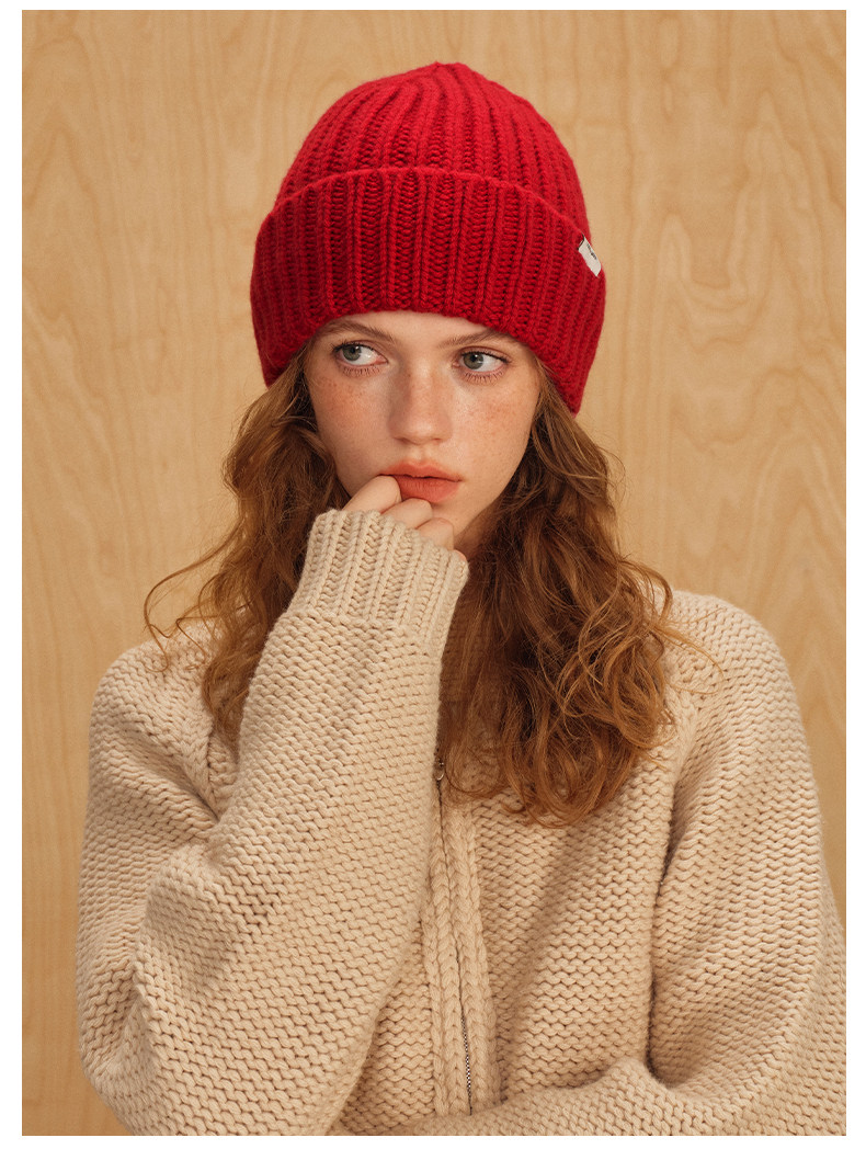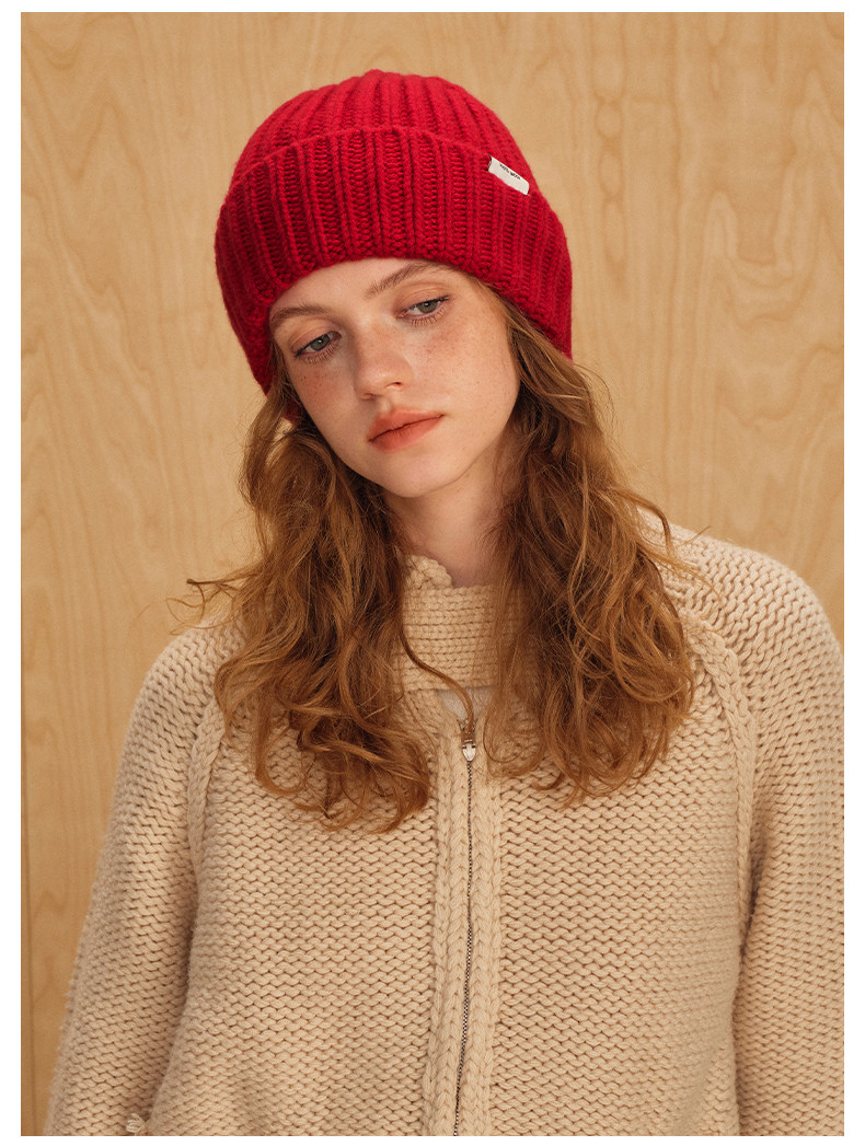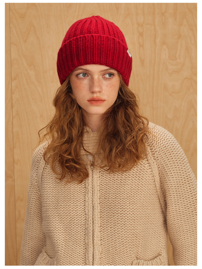Premium 100% Pure Wool Red Knit Hat for Women, Autumn and Winter Ear Protection, Warm, Face-Slimming, Knitted Beanie