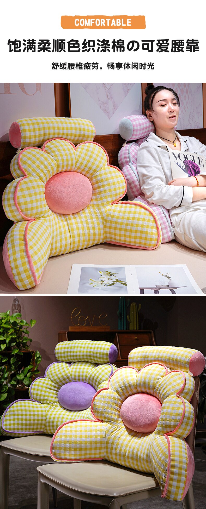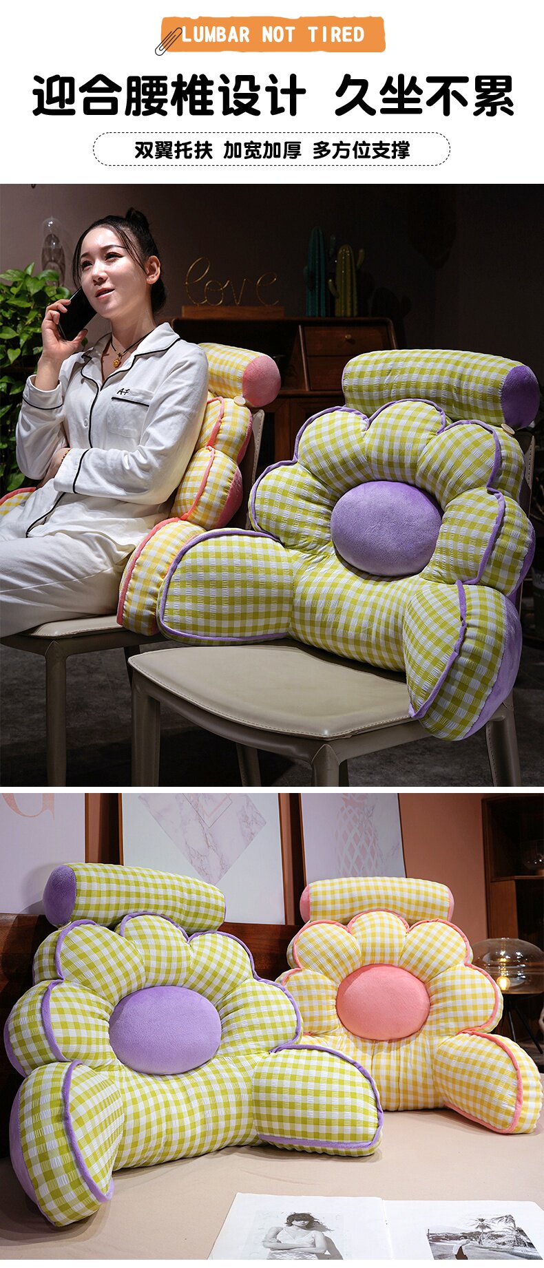 Flower-Shaped Office Chair Cushion Lumbar Support Cushion for Long Sitting, Back Cushion, Chair Sofa Throw Pillow