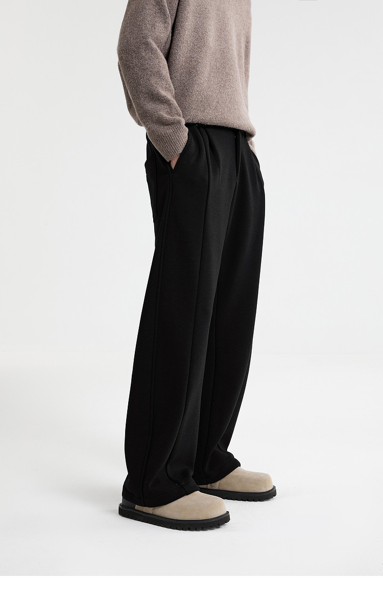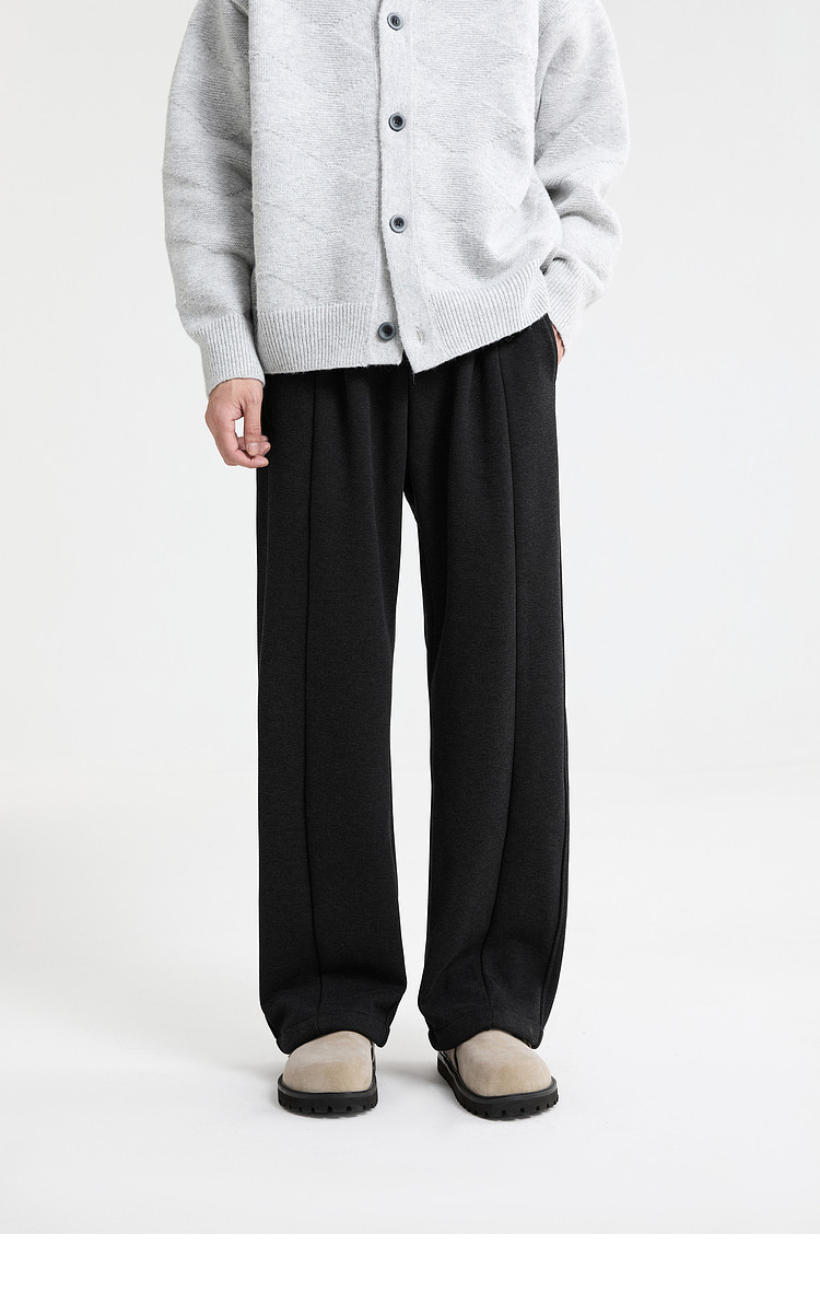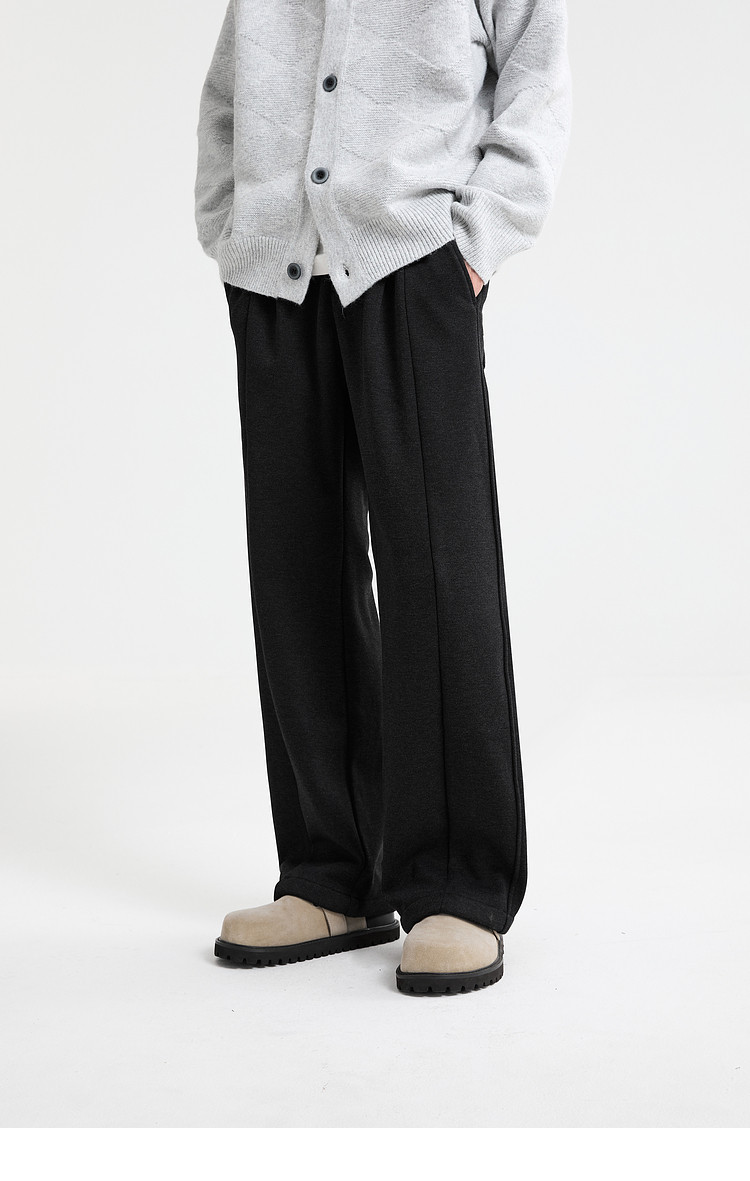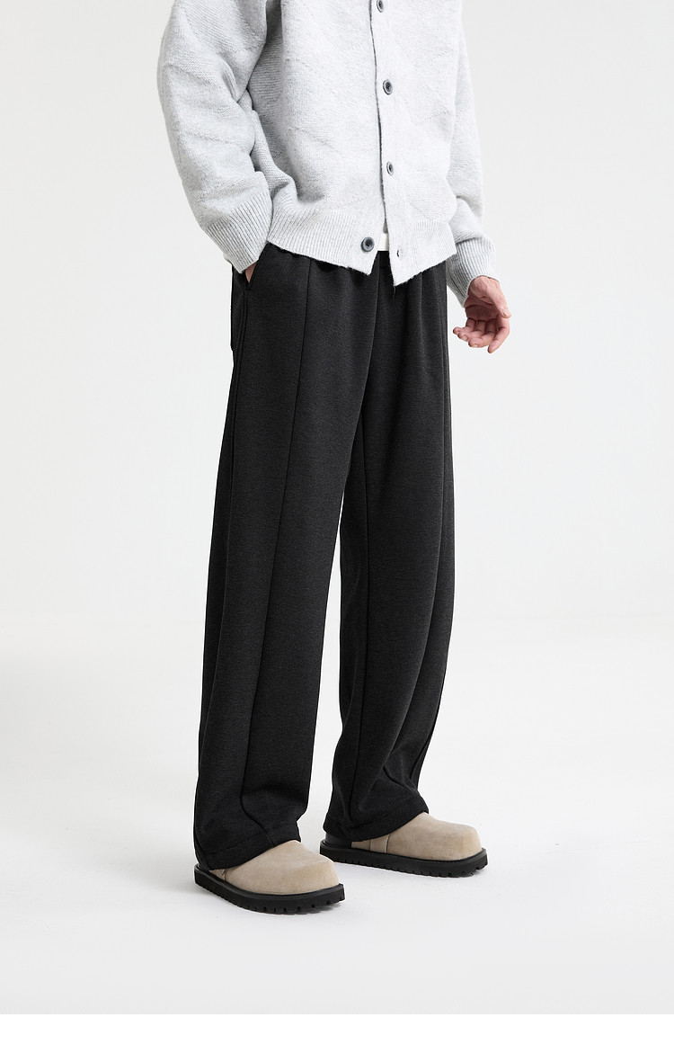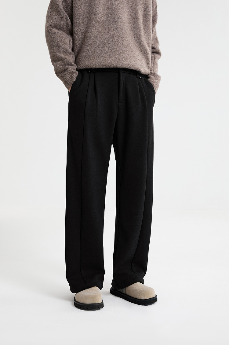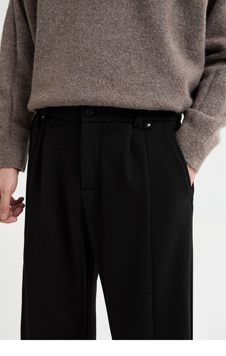Black Zeming Men's Knitted Casual Pants 2025 Winter New Thick Warm Single Pleat Drape Versatile Pants