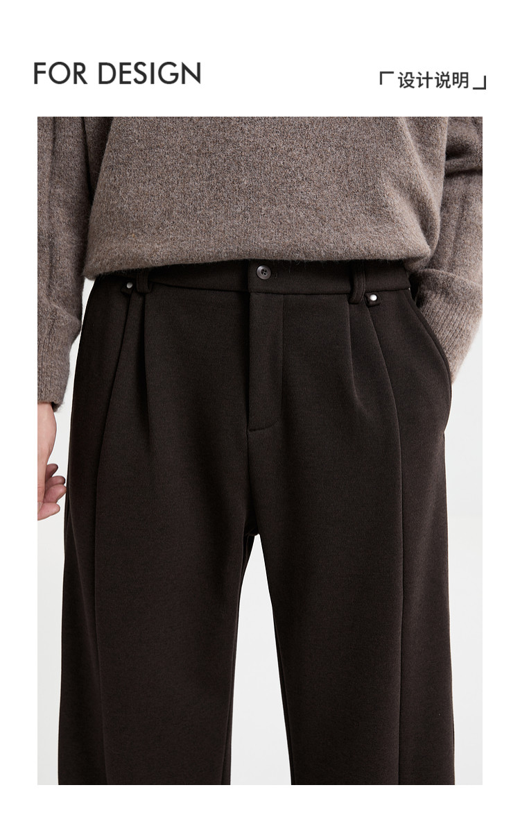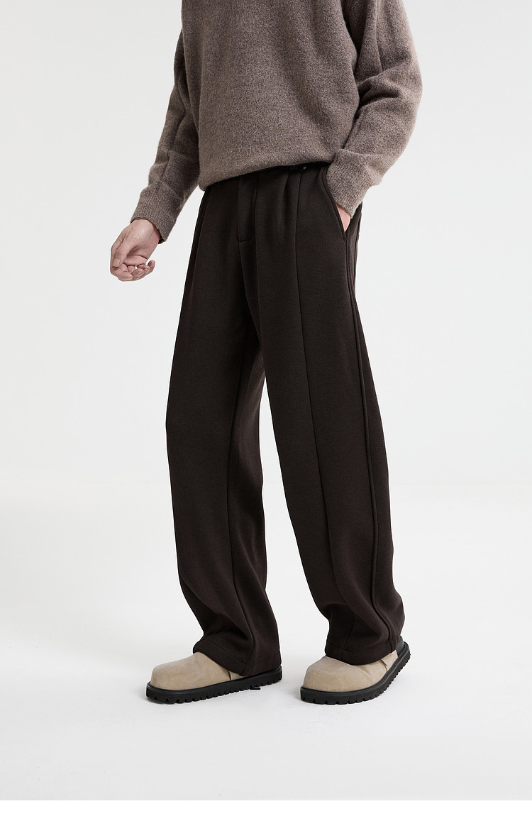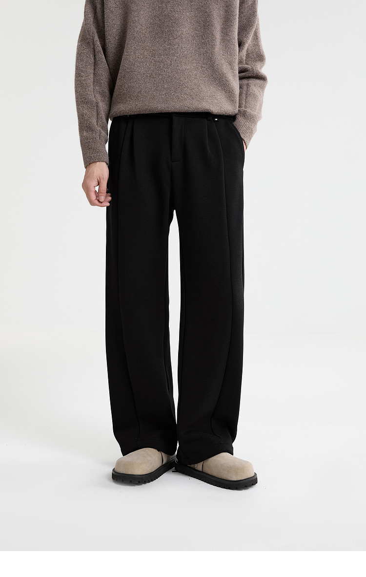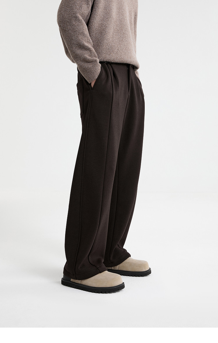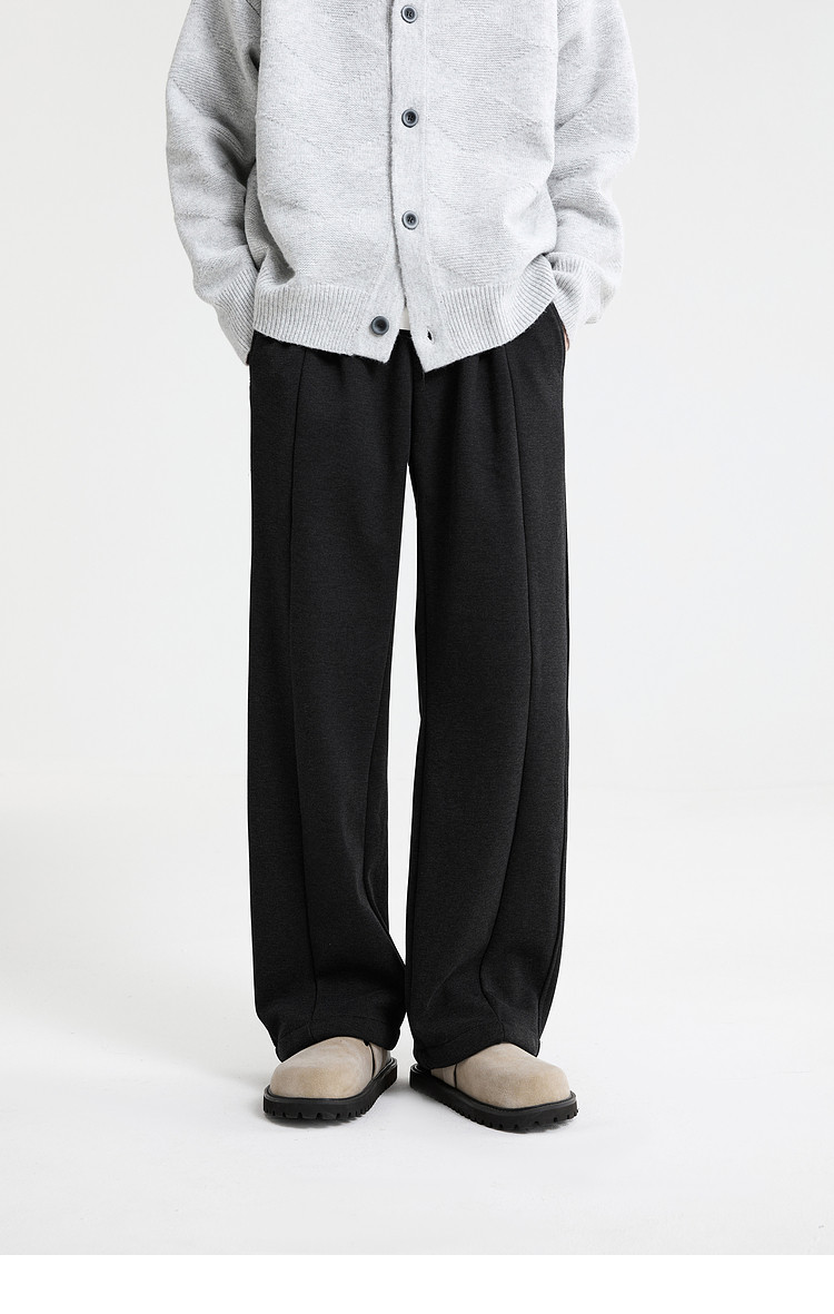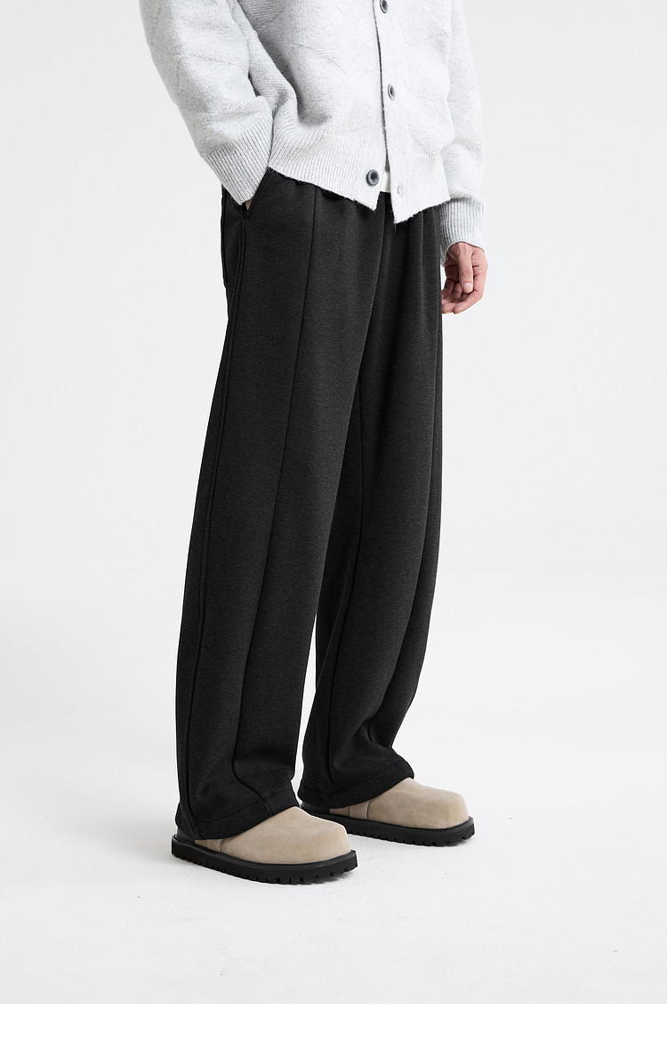 Black Zeming Men's Knitted Casual Pants 2025 Winter New Thick Warm Single Pleat Drape Versatile Pants