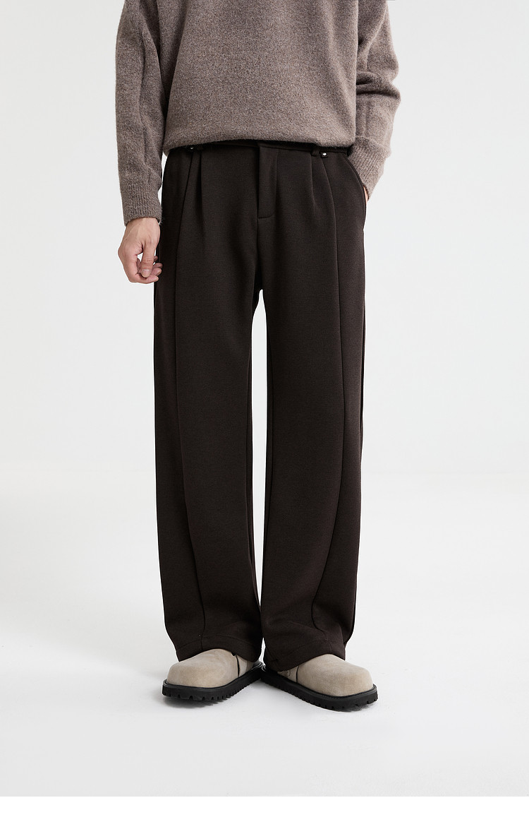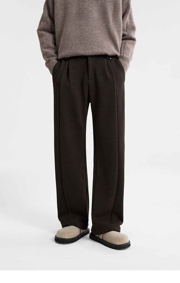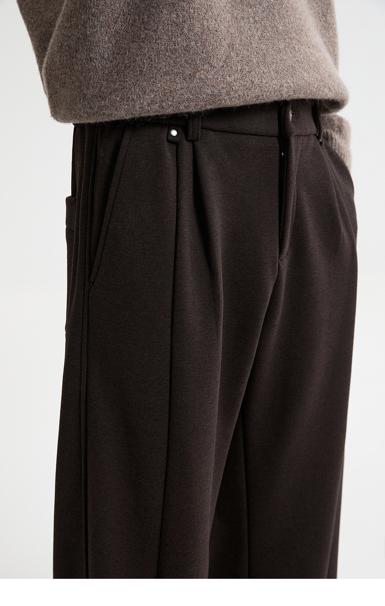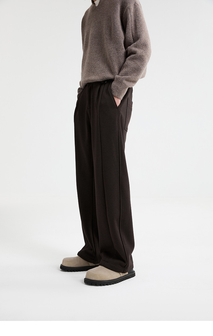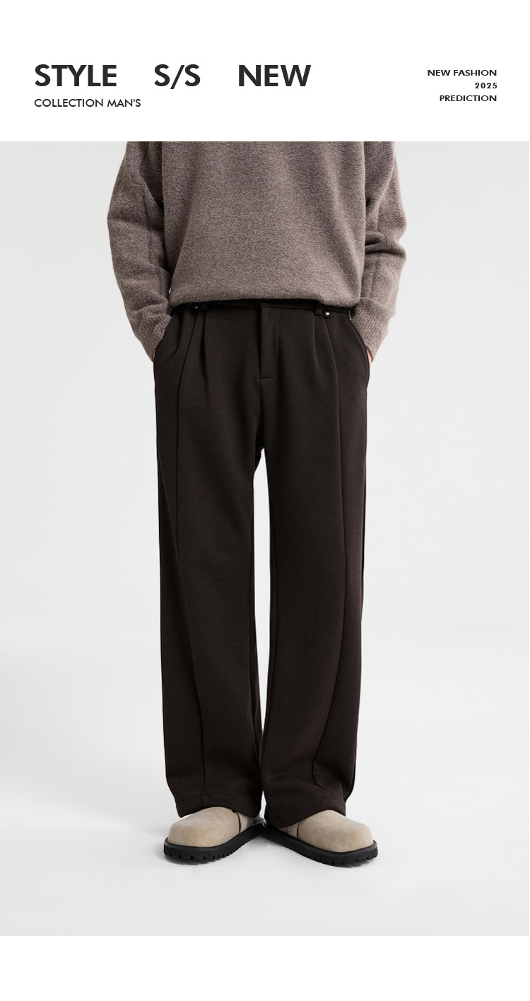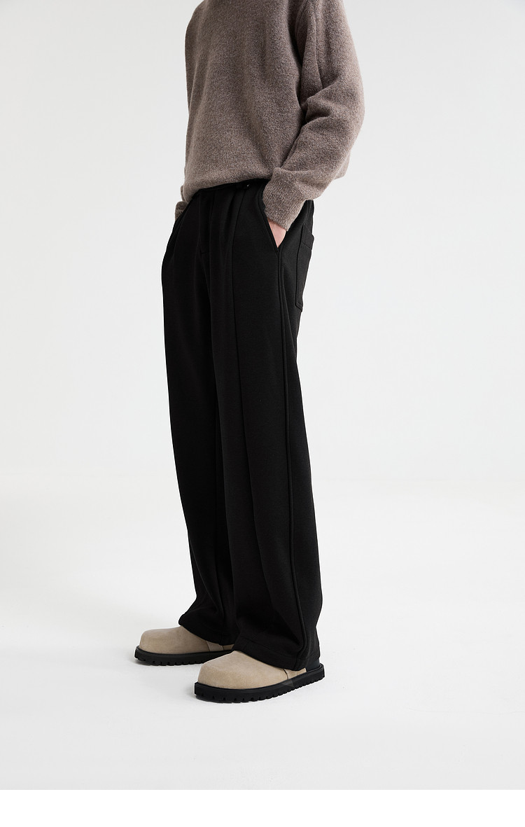 Black Zeming Men's Knitted Casual Pants 2025 Winter New Thick Warm Single Pleat Drape Versatile Pants