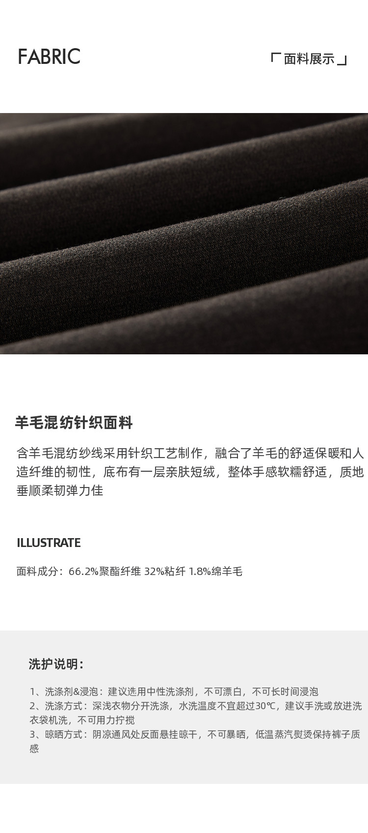 Material ingredients Polyester fiber 66.2%, viscose fiber (viscose fiber) 32%, sheep wool 1.8%