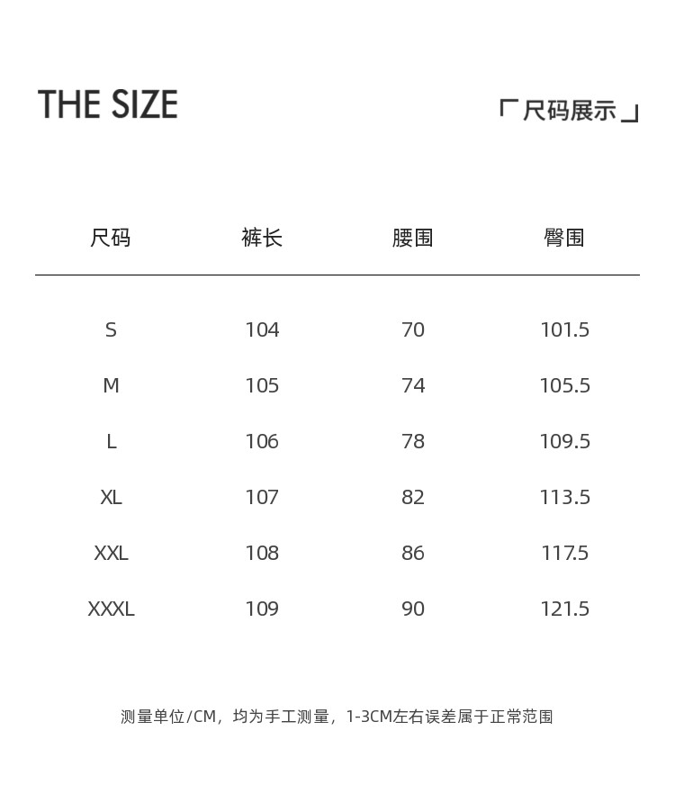 Outseam (cm) 99 cm 101.5 cm 104 cm 106.5 cm 109 cm