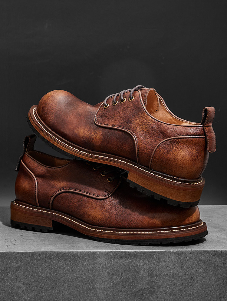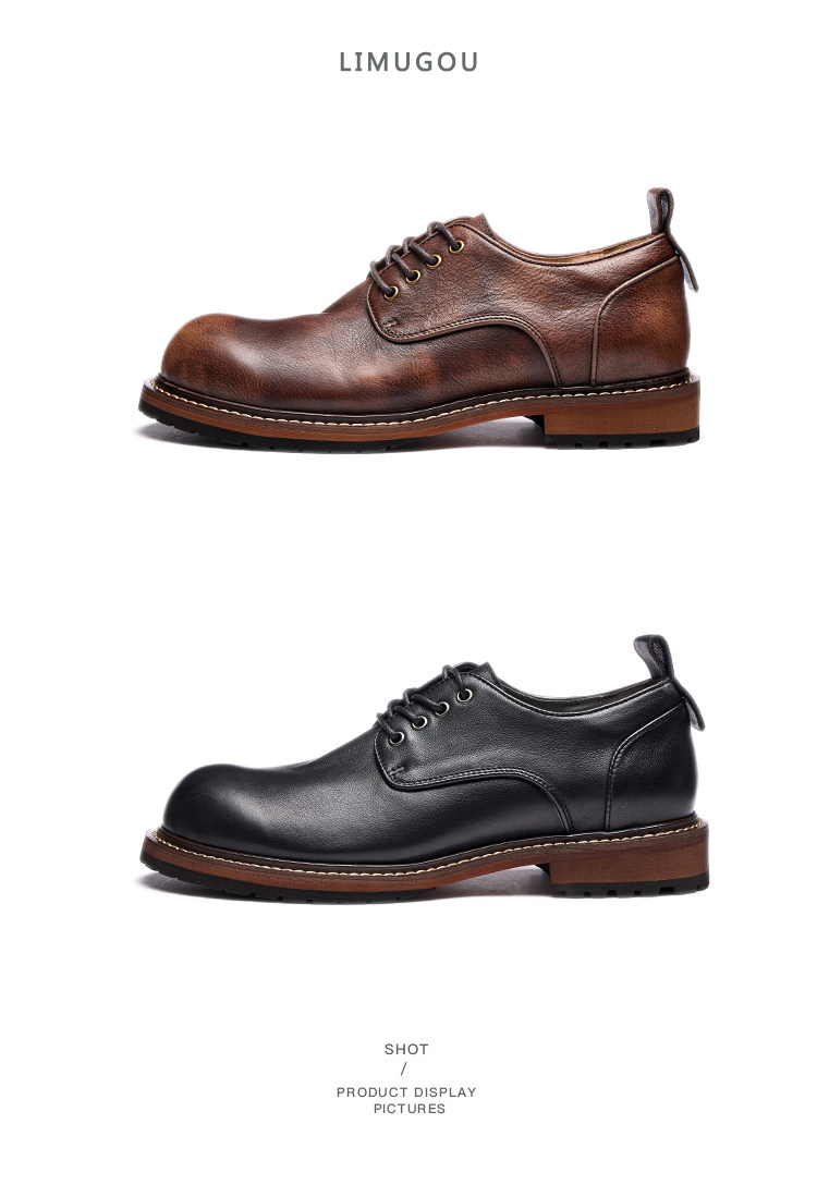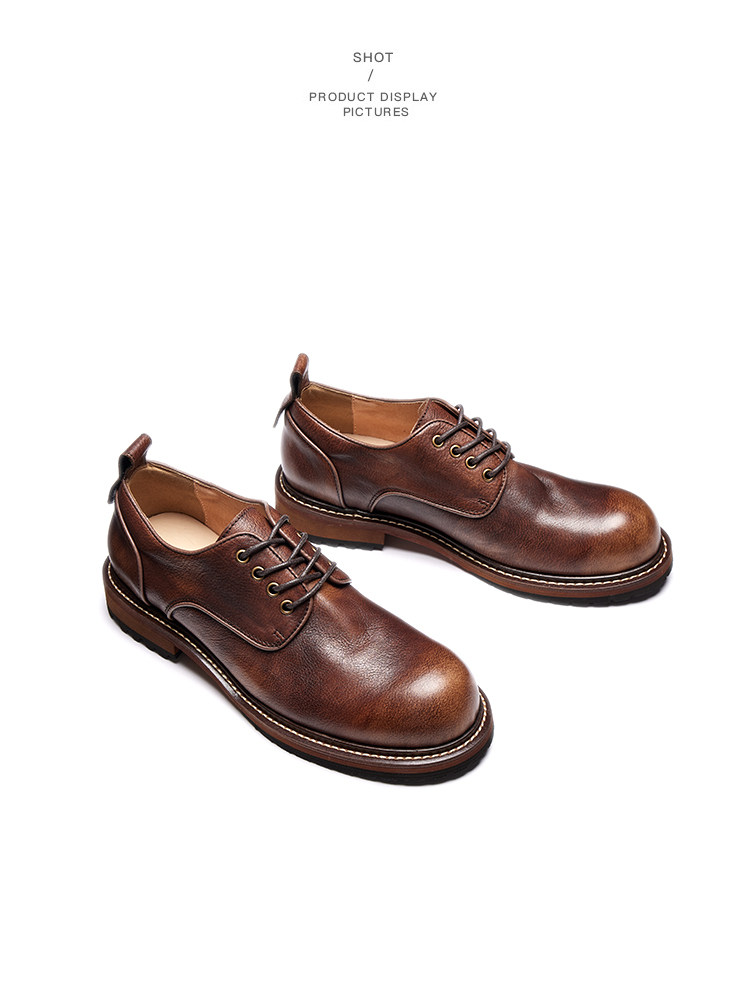 Vintage Leather Shoes for Men, Genuine Leather British Style Business Casual Men's Shoes, 2025 New High-End Men's Large-Toe Formal Derby Shoes