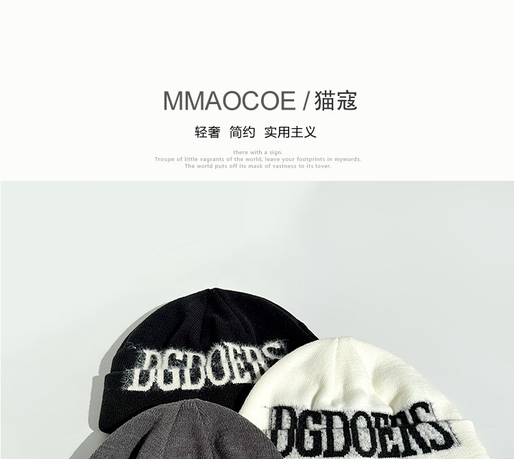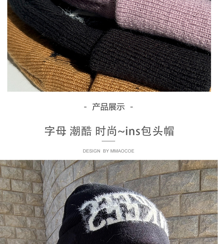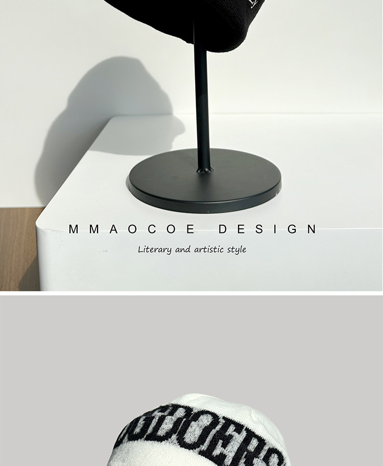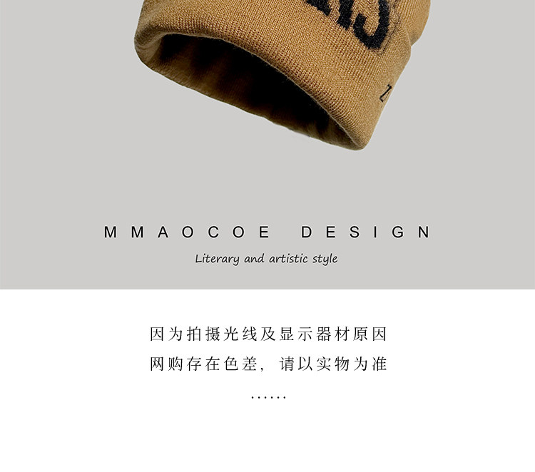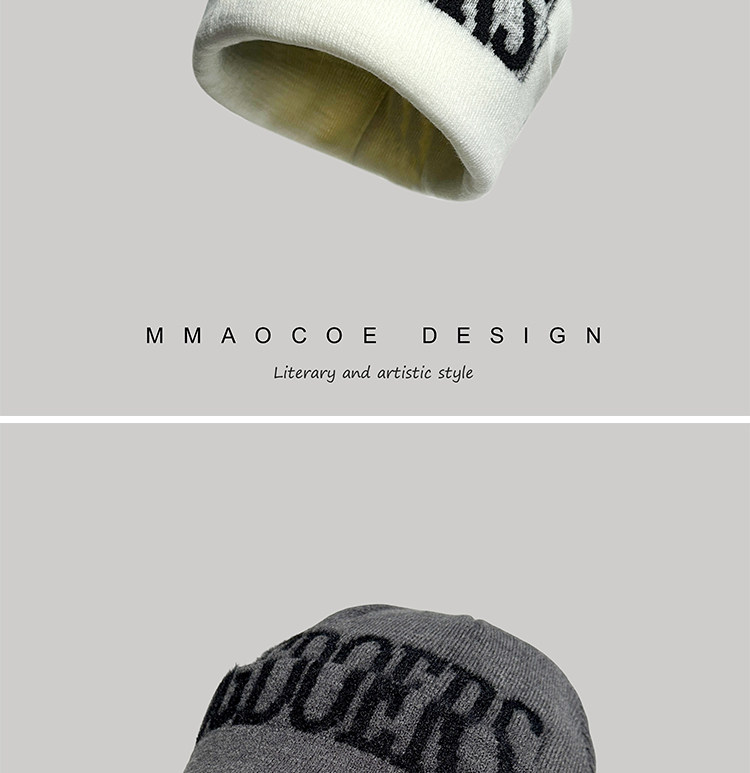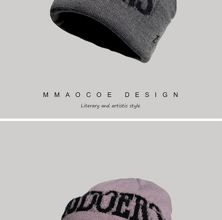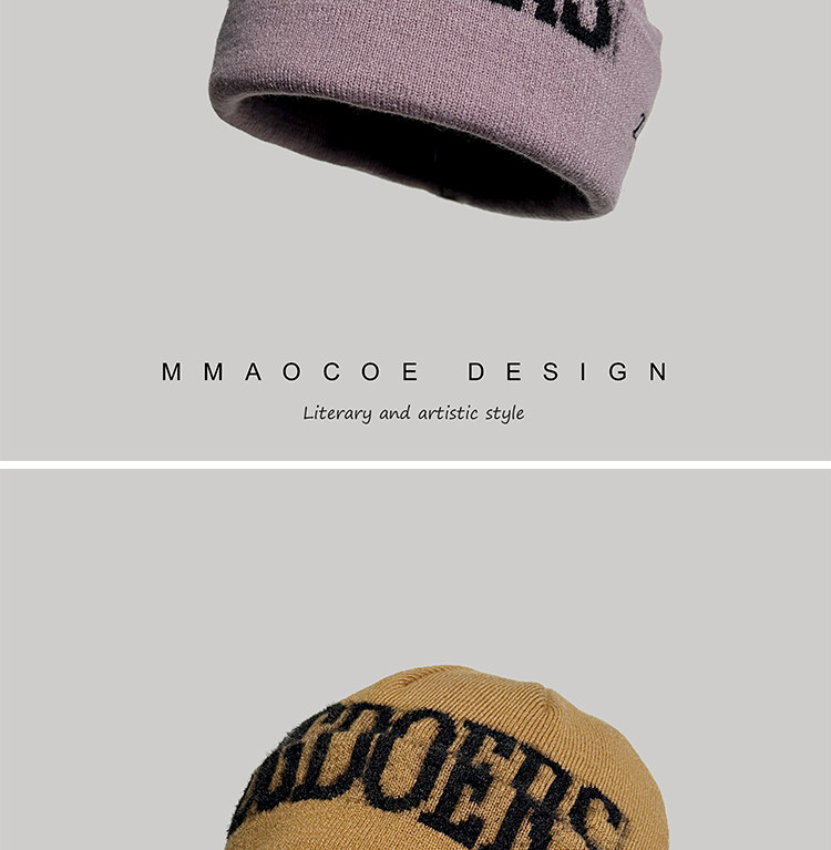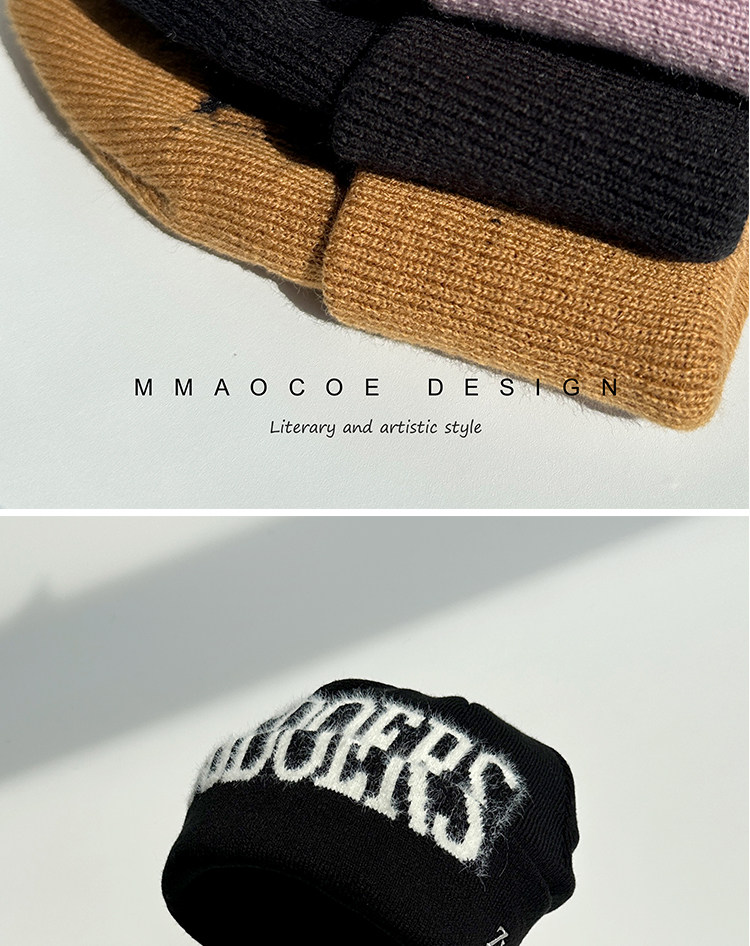 American-Style Trendy Brand Letter Knit Hat for Women, Winter Warm Wool Hat That Makes the Face Look Smaller, Cold Weather Hat with Ear Protection and Full Head Coverage