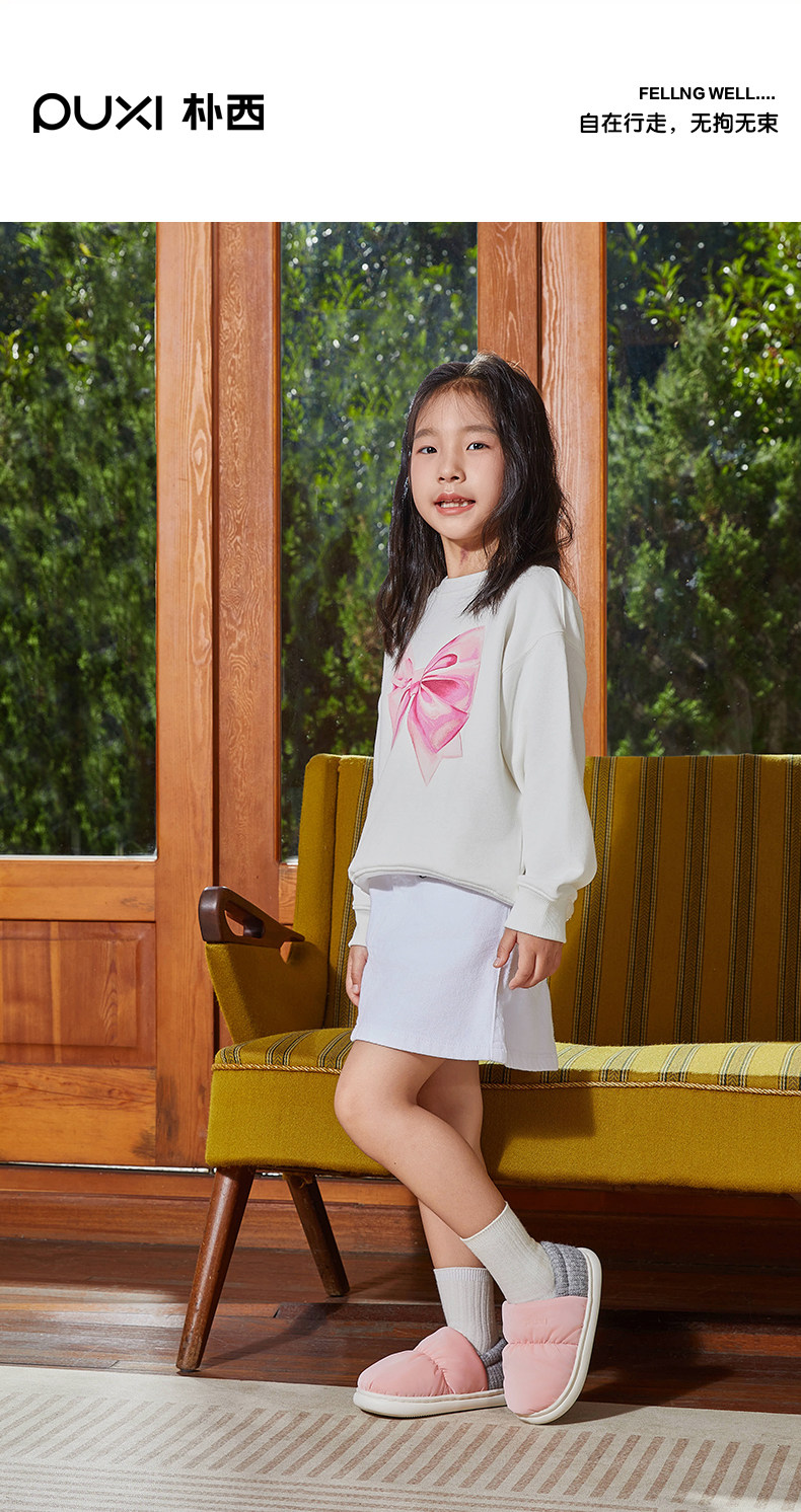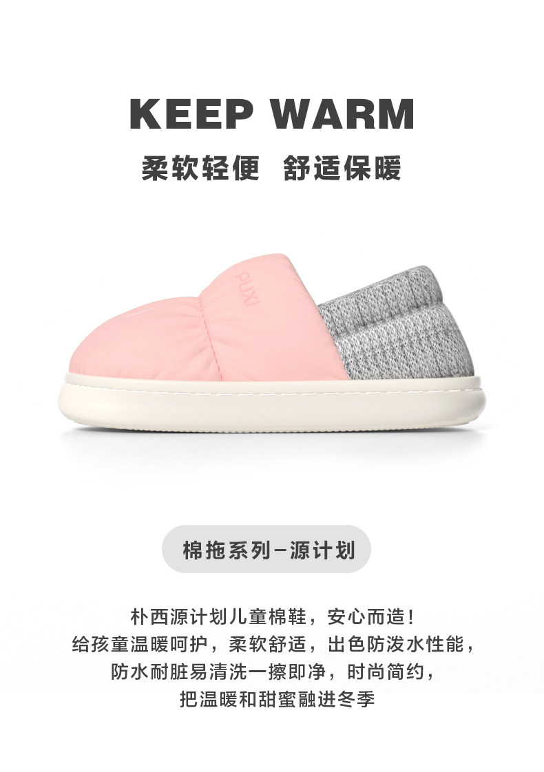 Puxi 2025 Winter Children's Cotton Slippers Girls' Heels Warm Anti-Slip Thick-soled Home Furnishing Boys' Cotton Shoes