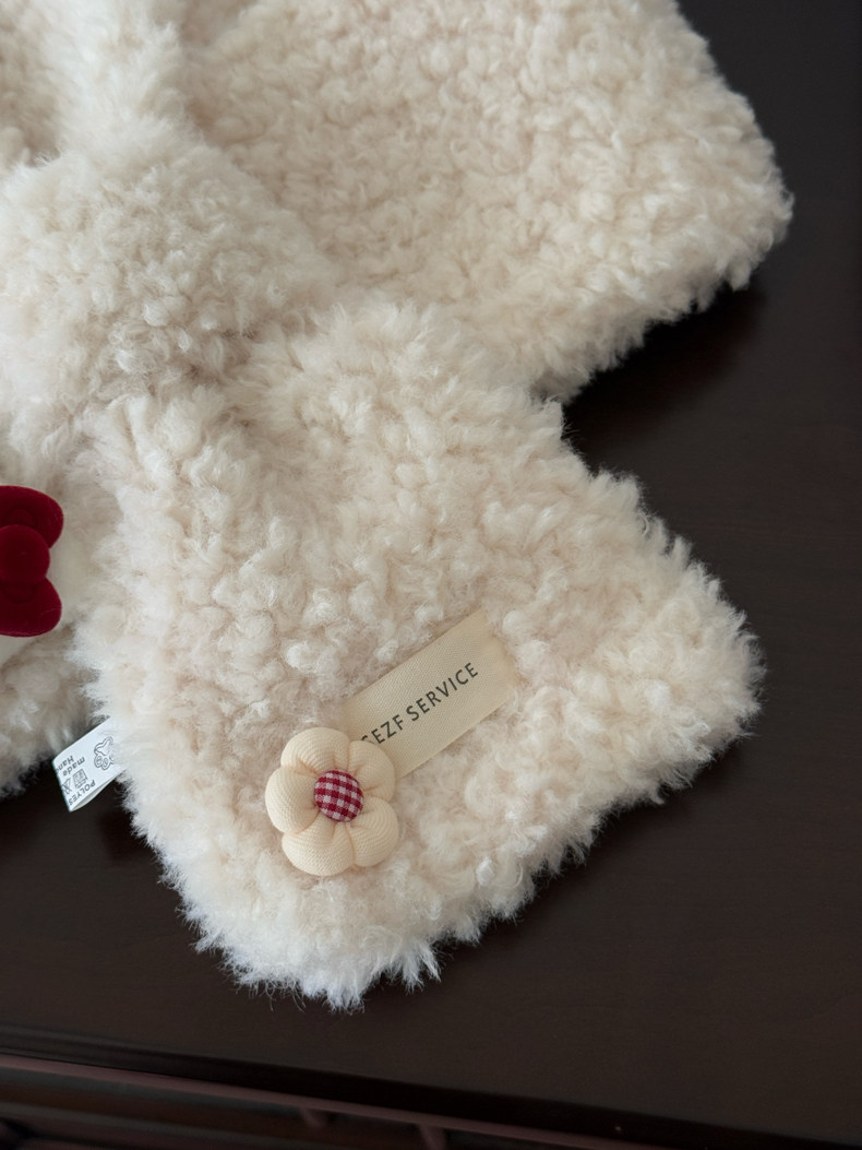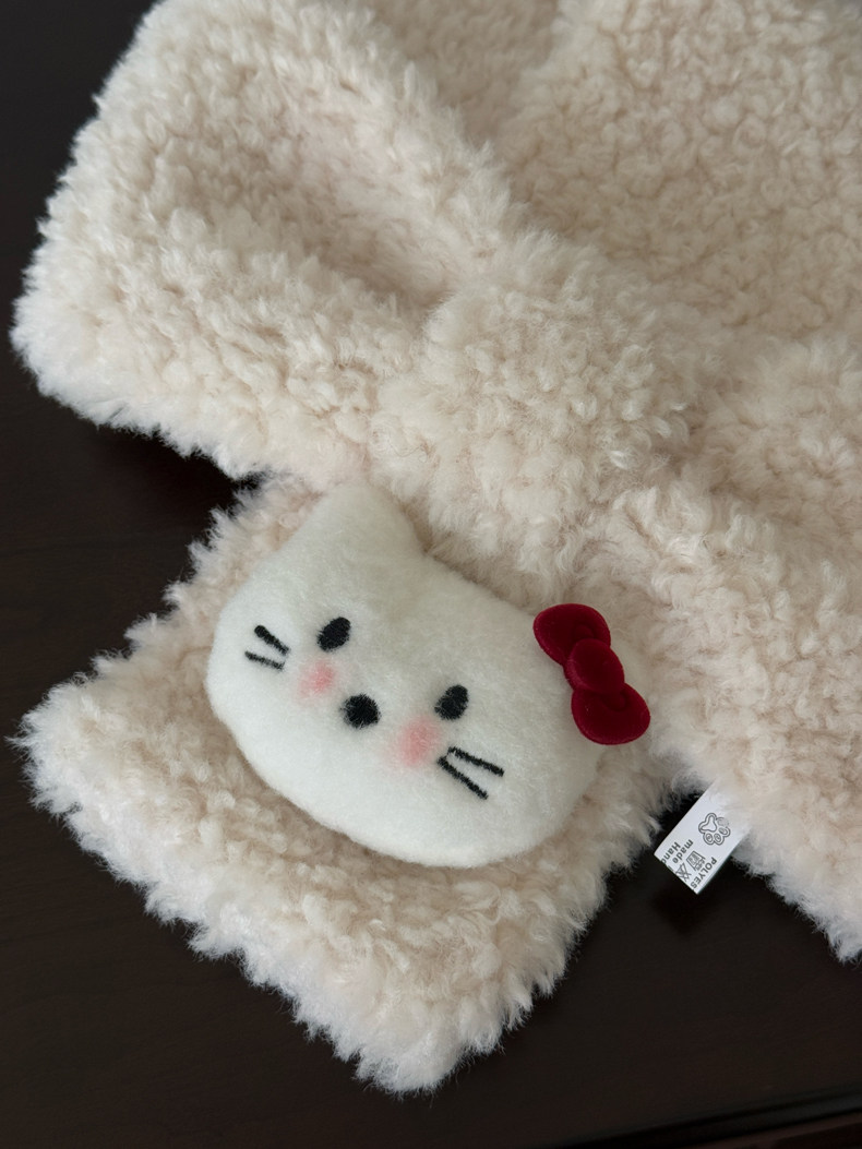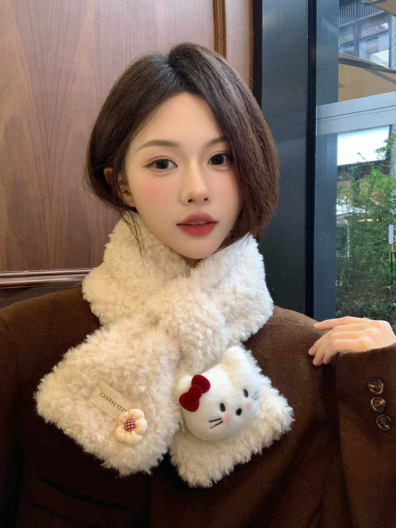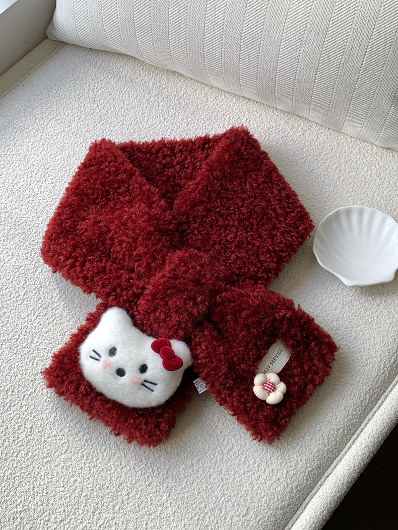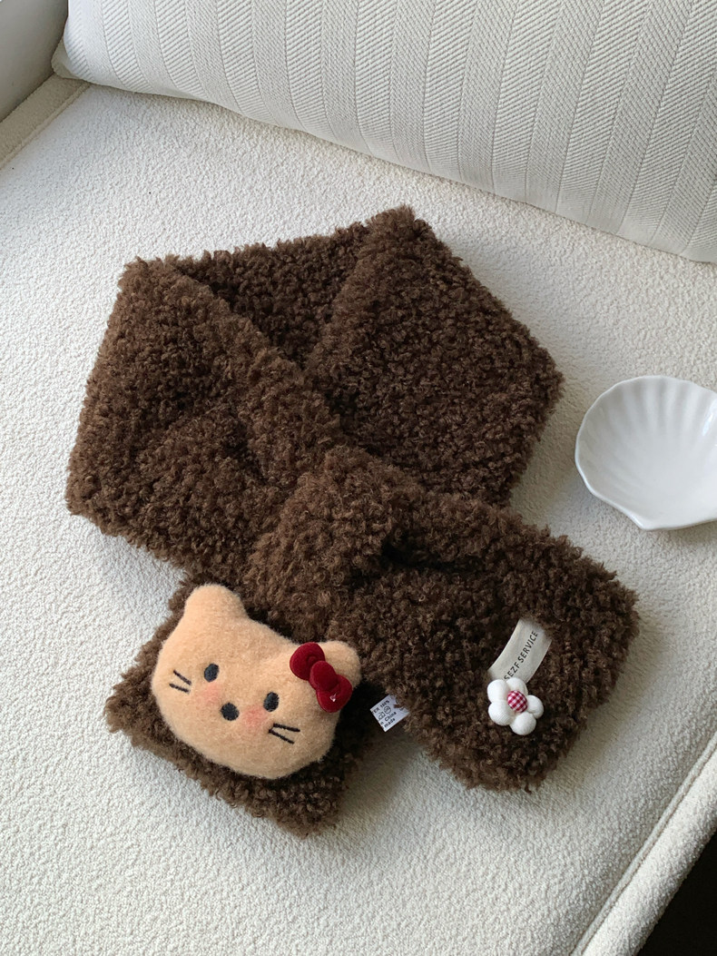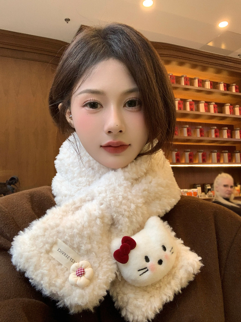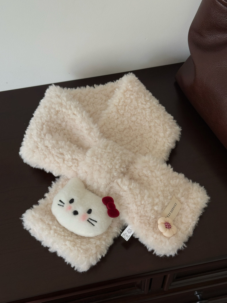 Cute Cat Plush Scarf for Women, Winter Warm Neck Protection, Cross Neck Scarf, Short Scarf for Students