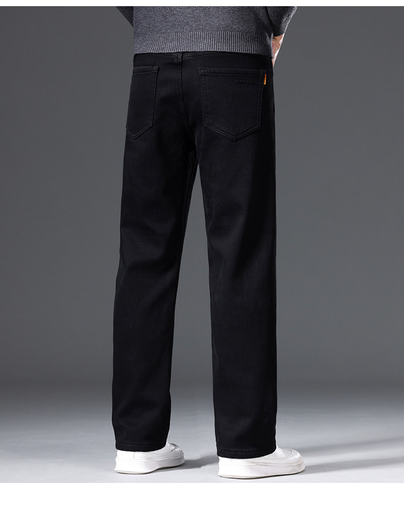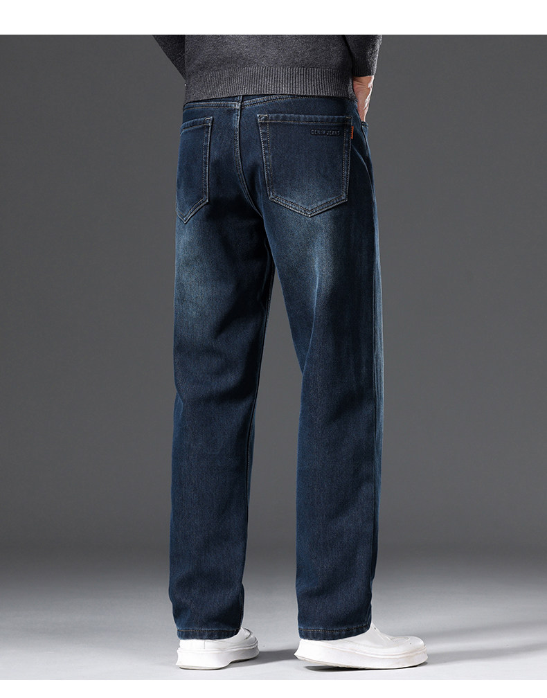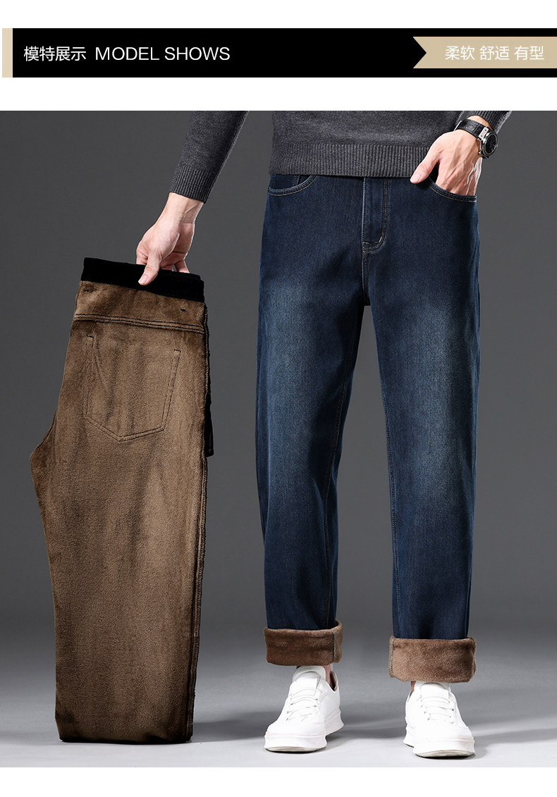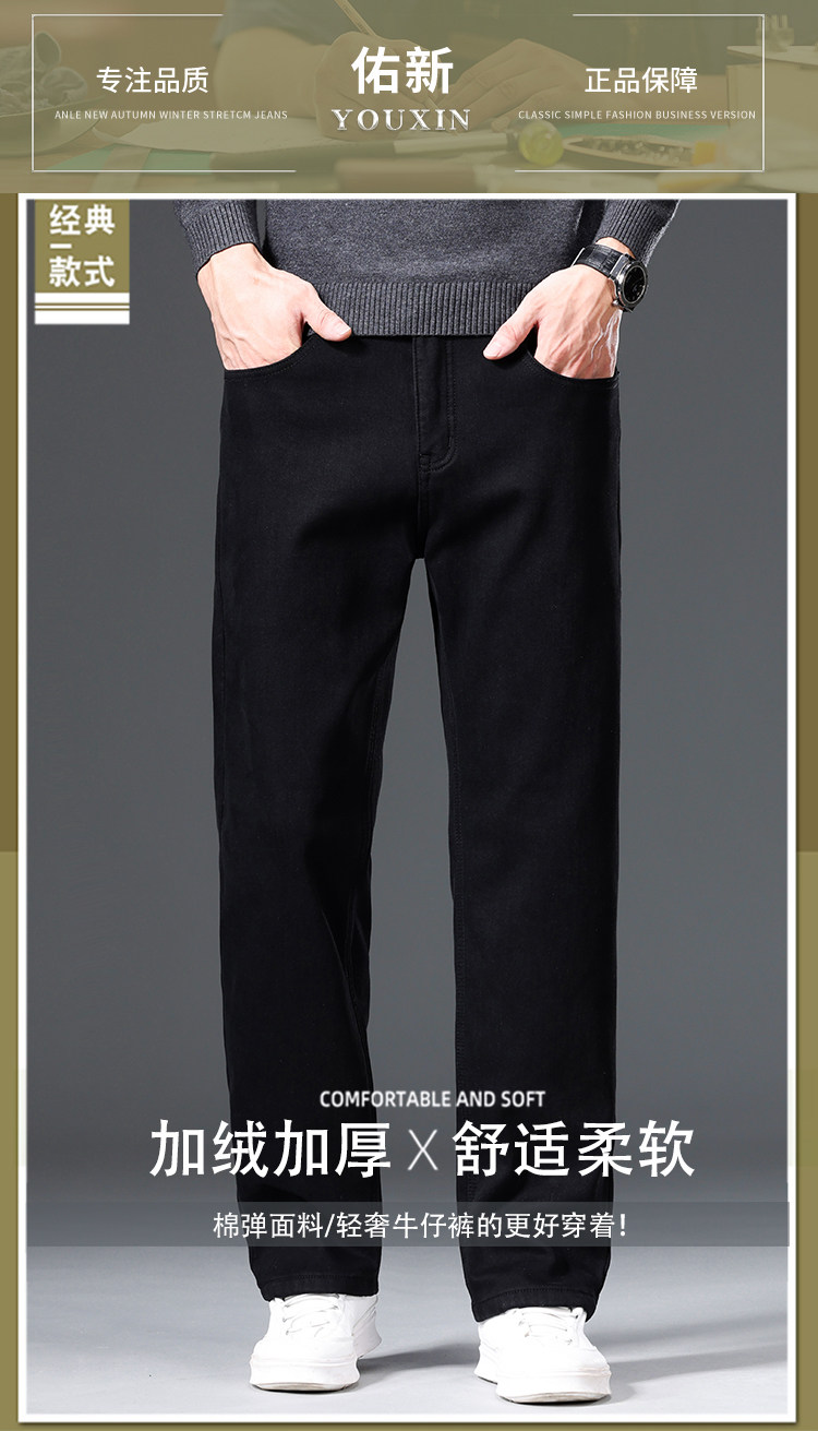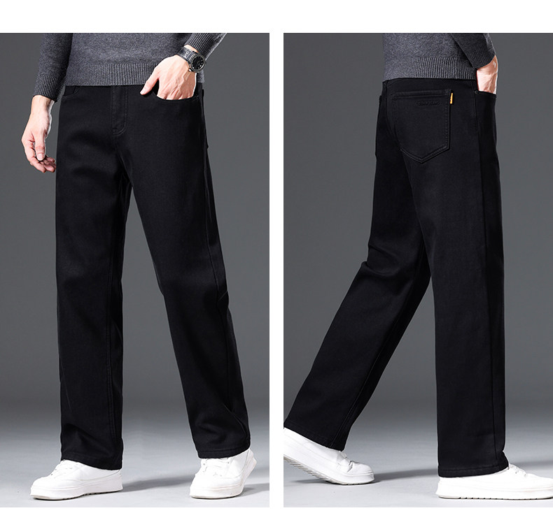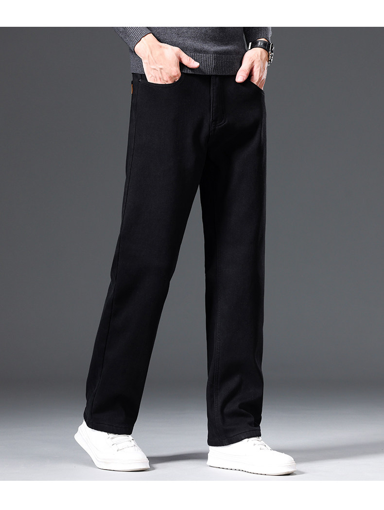 High-End Fleece-Lined Men's Straight-Leg Loose Jeans 2026 New Winter Black Thickened Warm Casual Pants for Middle-Aged Men