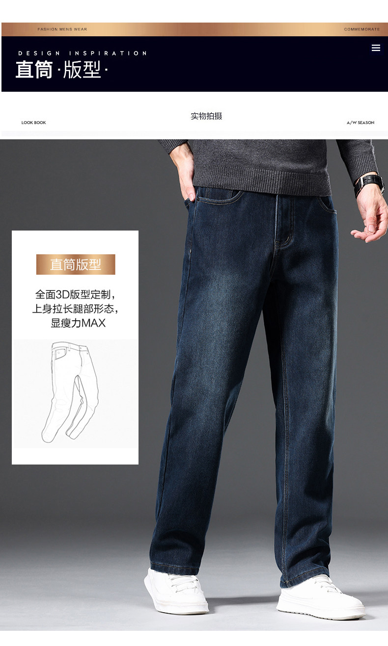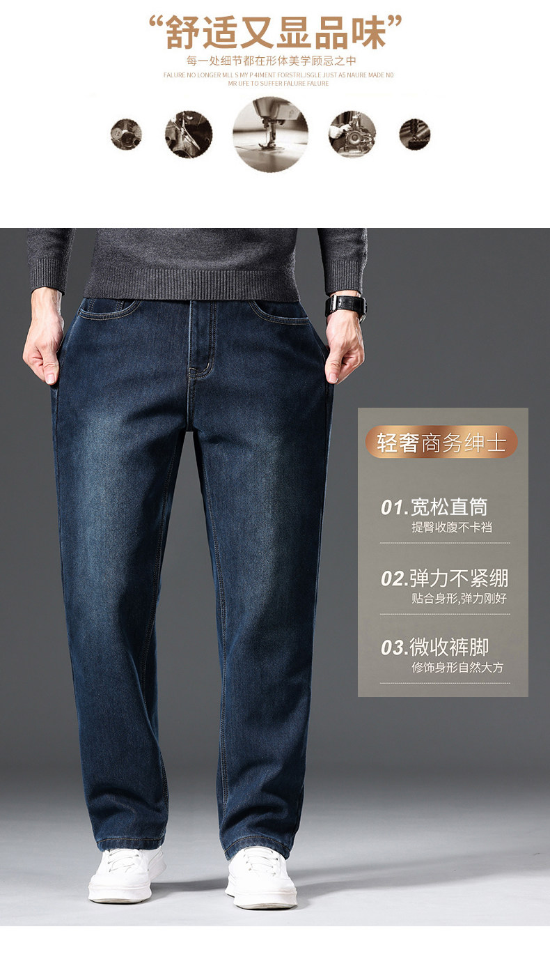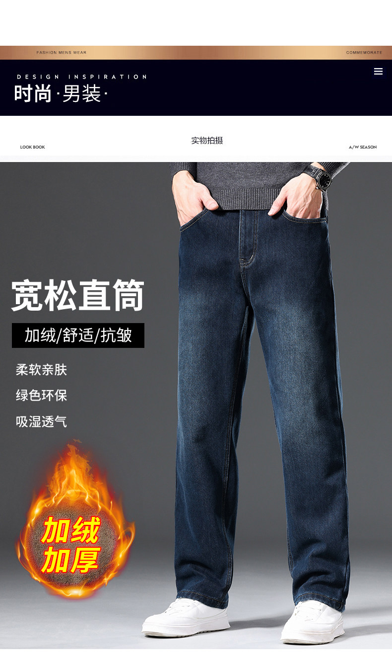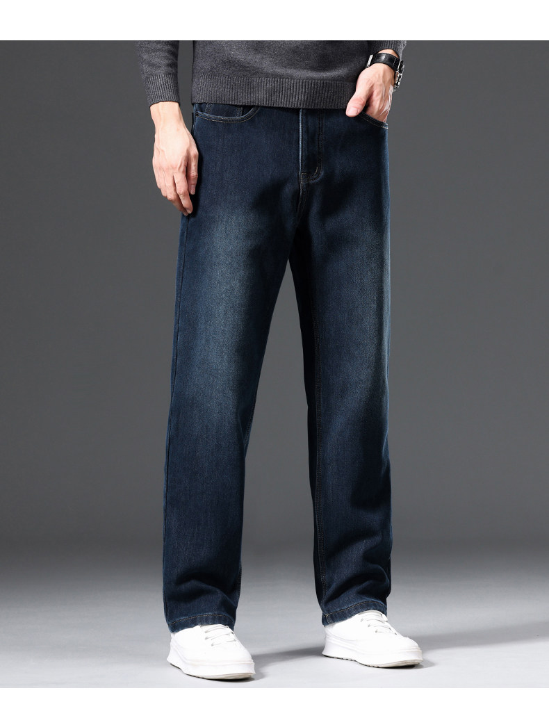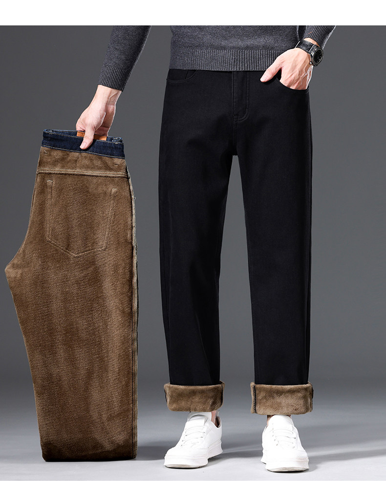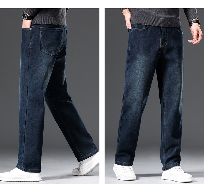 High-End Fleece-Lined Men's Straight-Leg Loose Jeans 2026 New Winter Black Thickened Warm Casual Pants for Middle-Aged Men