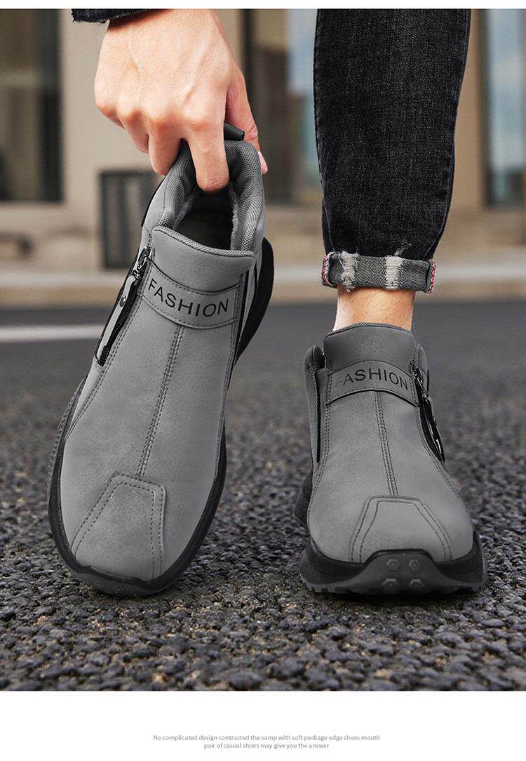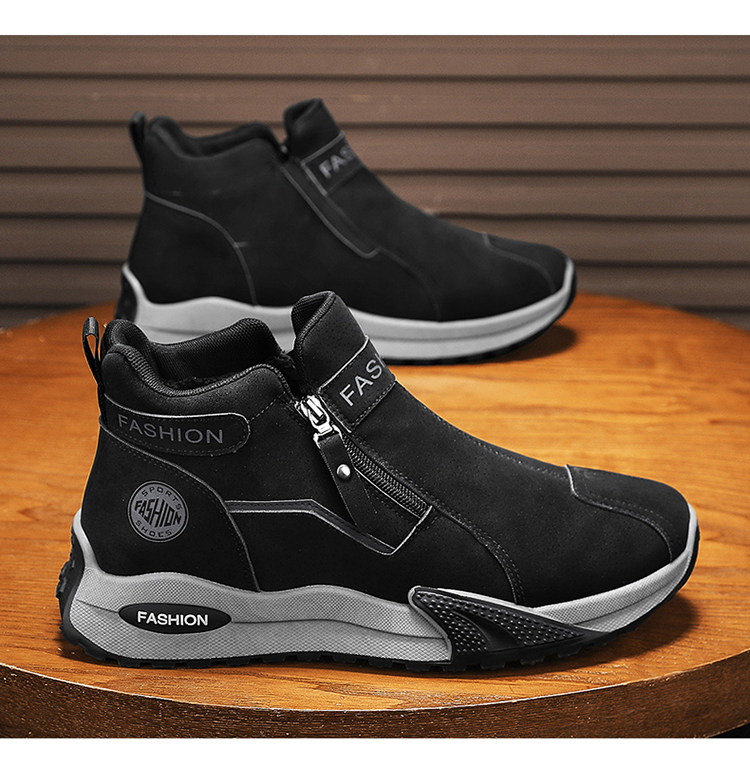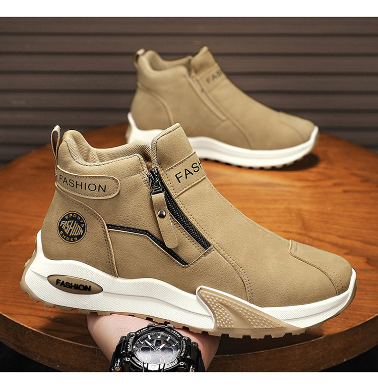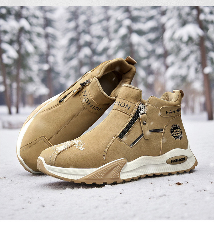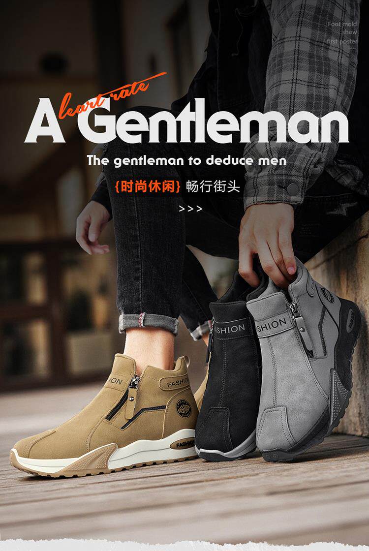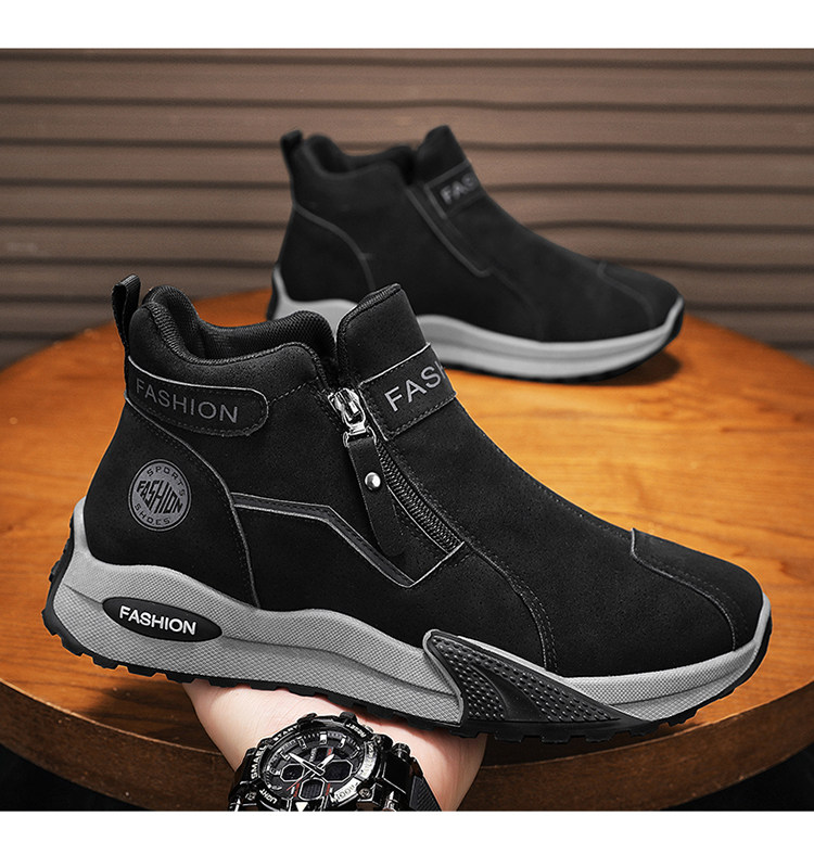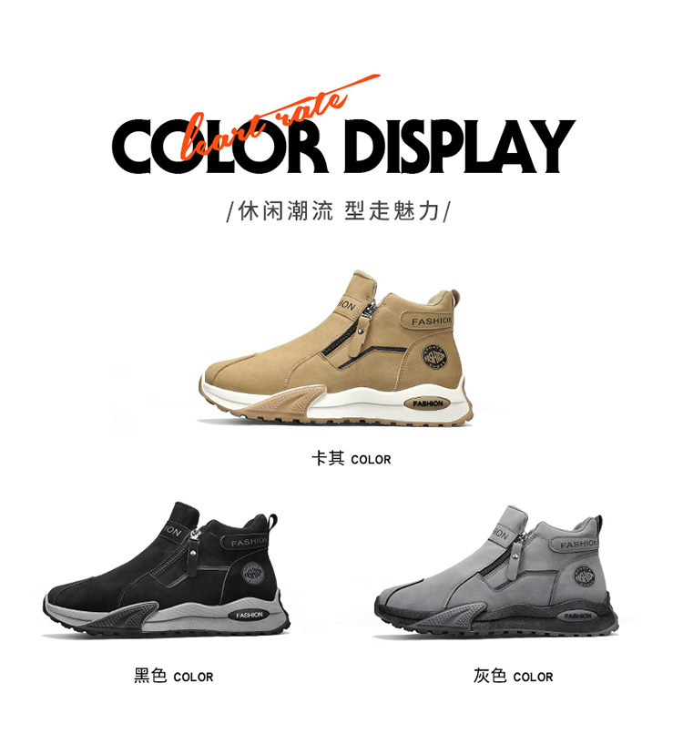 Li Yuxin high-top men's shoes winter velvet warm cotton shoes men's casual leather shoes thick-soled non-slip sports snow boots