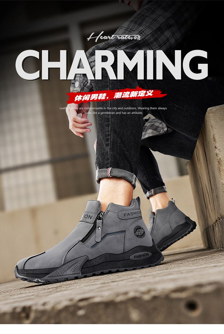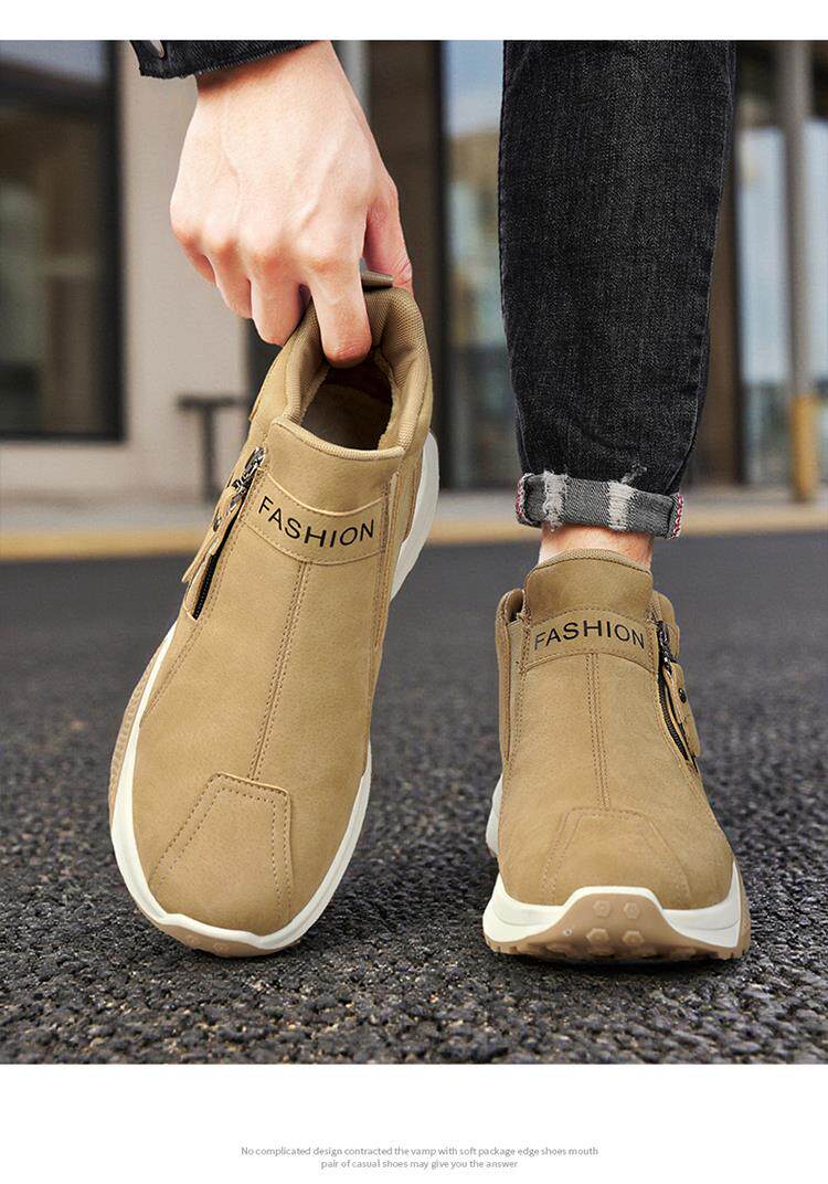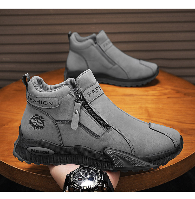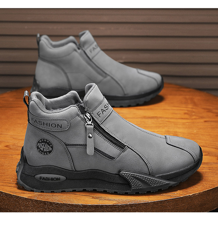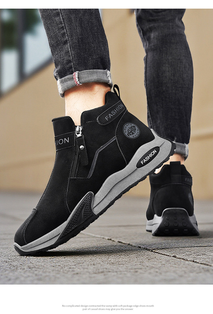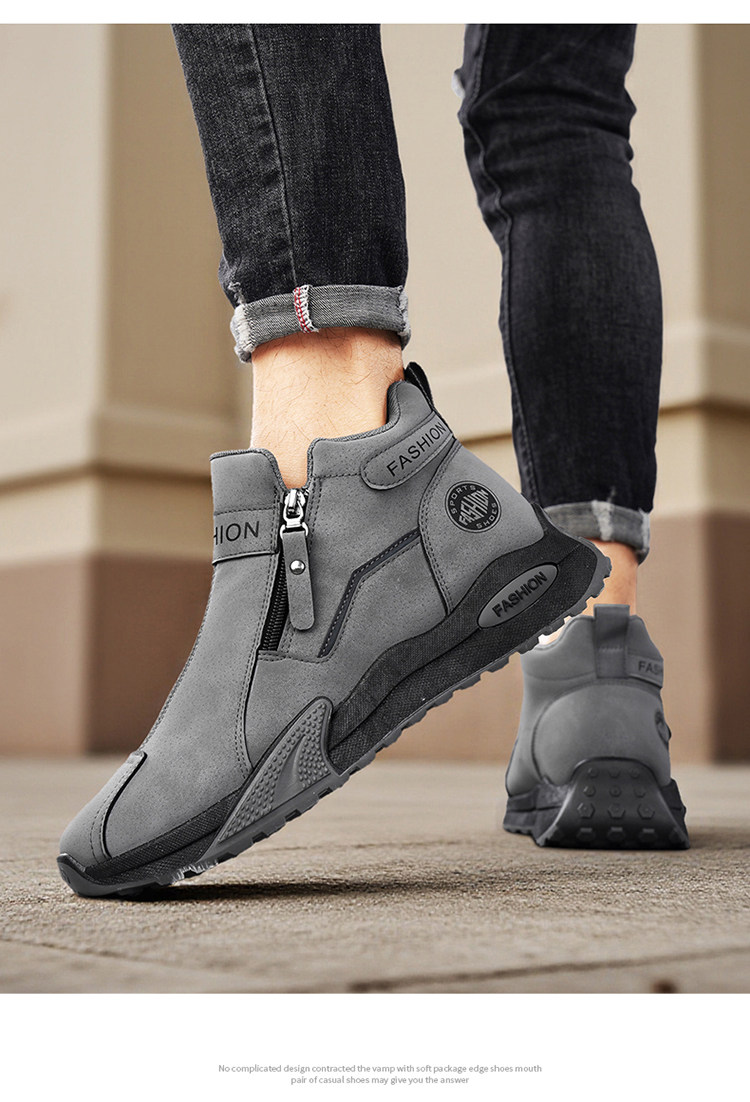 Li Yuxin high-top men's shoes winter velvet warm cotton shoes men's casual leather shoes thick-soled non-slip sports snow boots