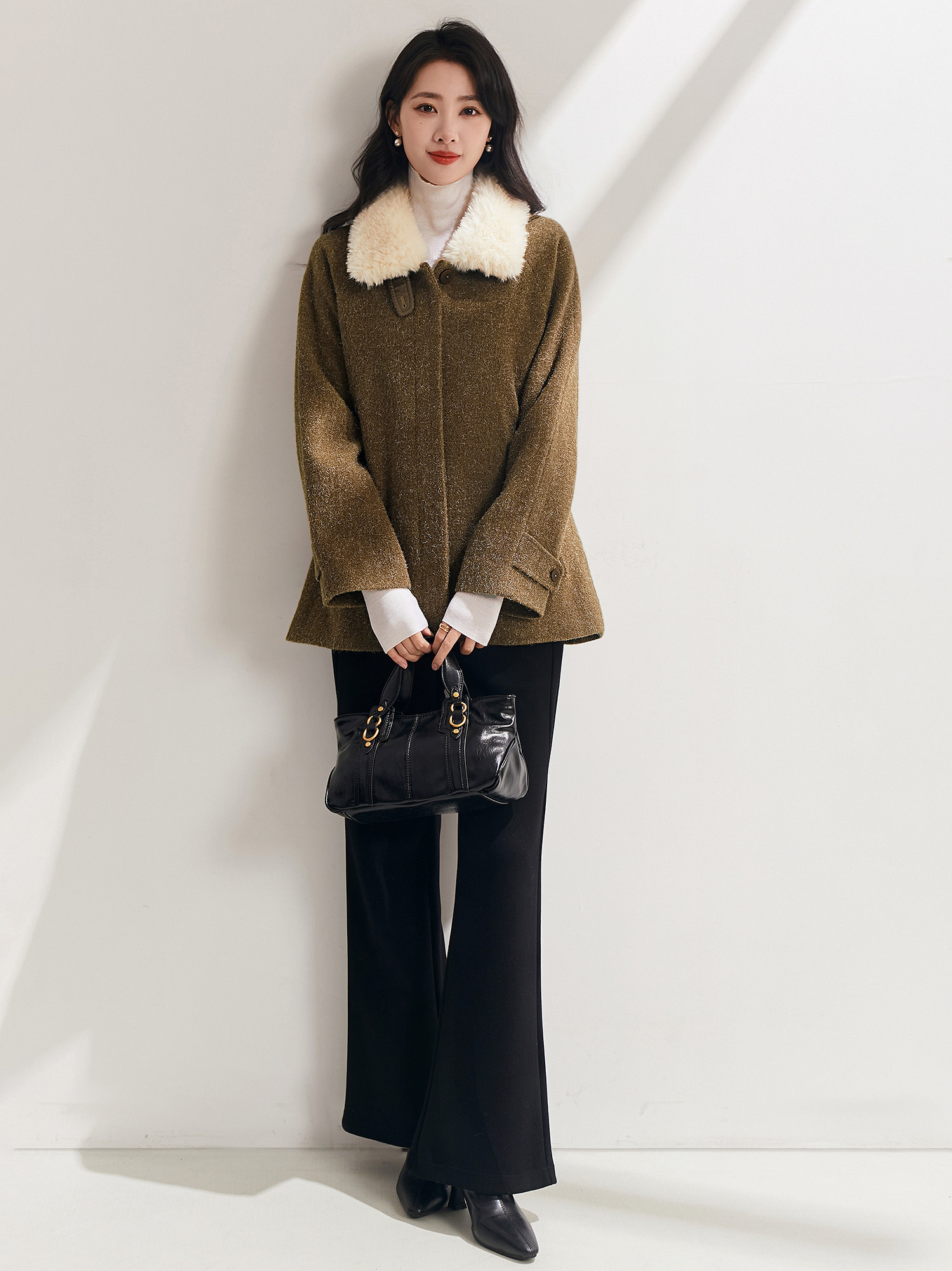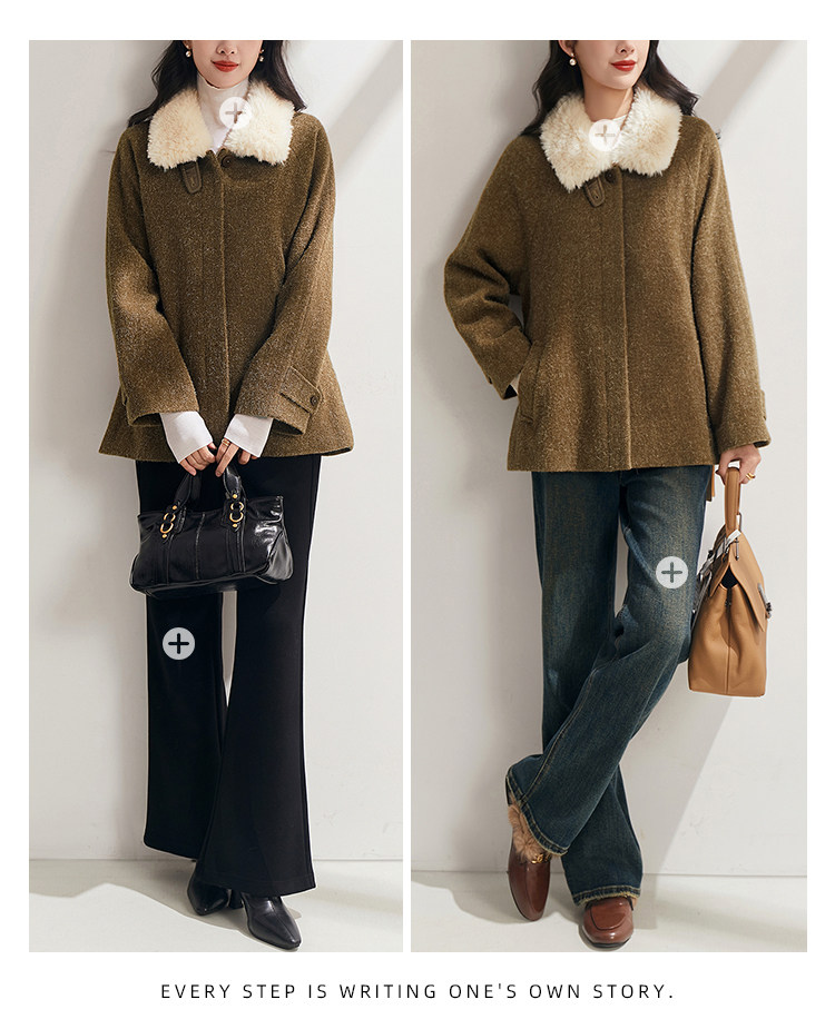 拼接米白色毛领可翻可立,打造多元穿搭