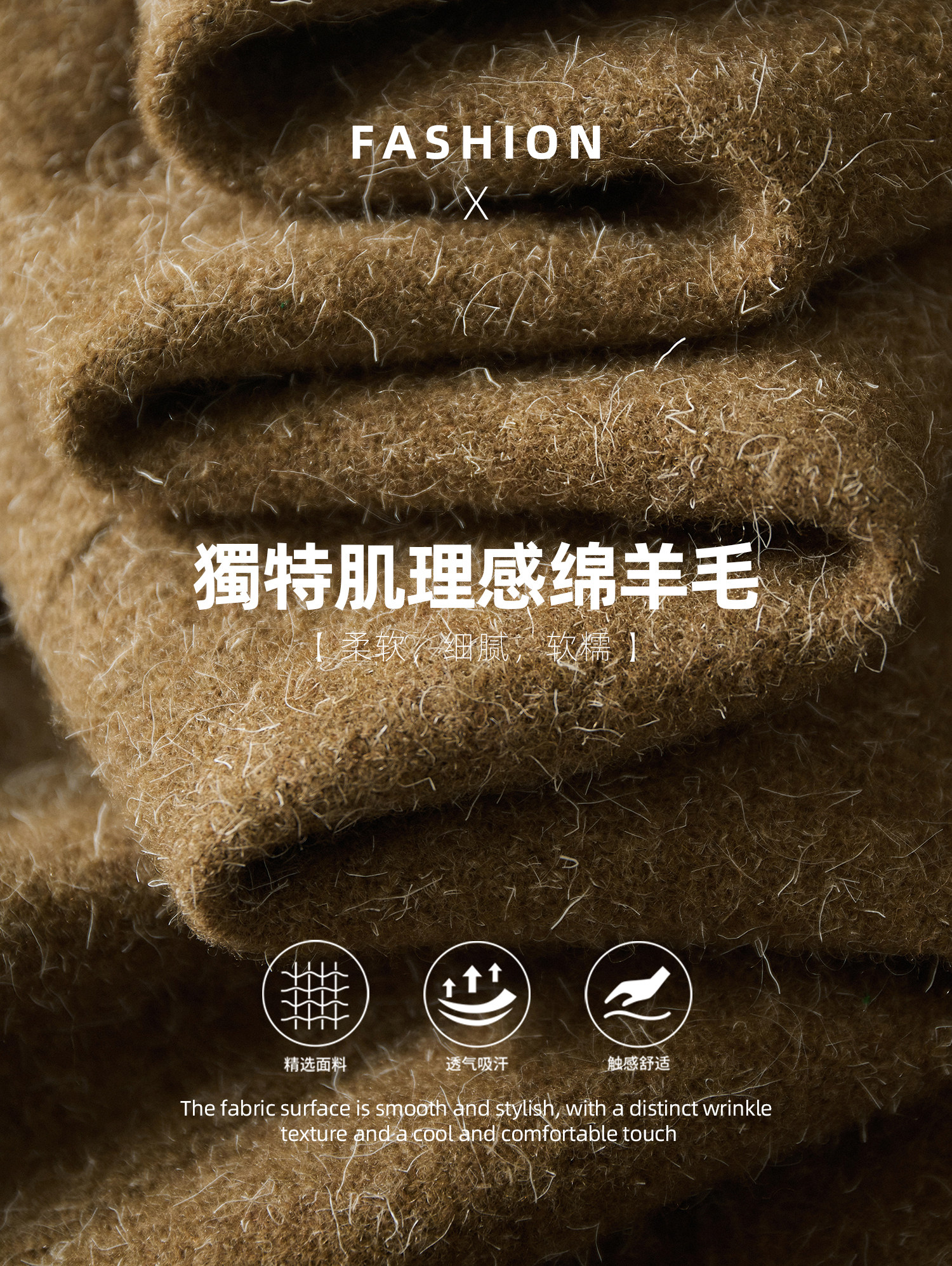 绵羊毛天然的细腻质感,赋予了衣物无与伦比的亲肤体验