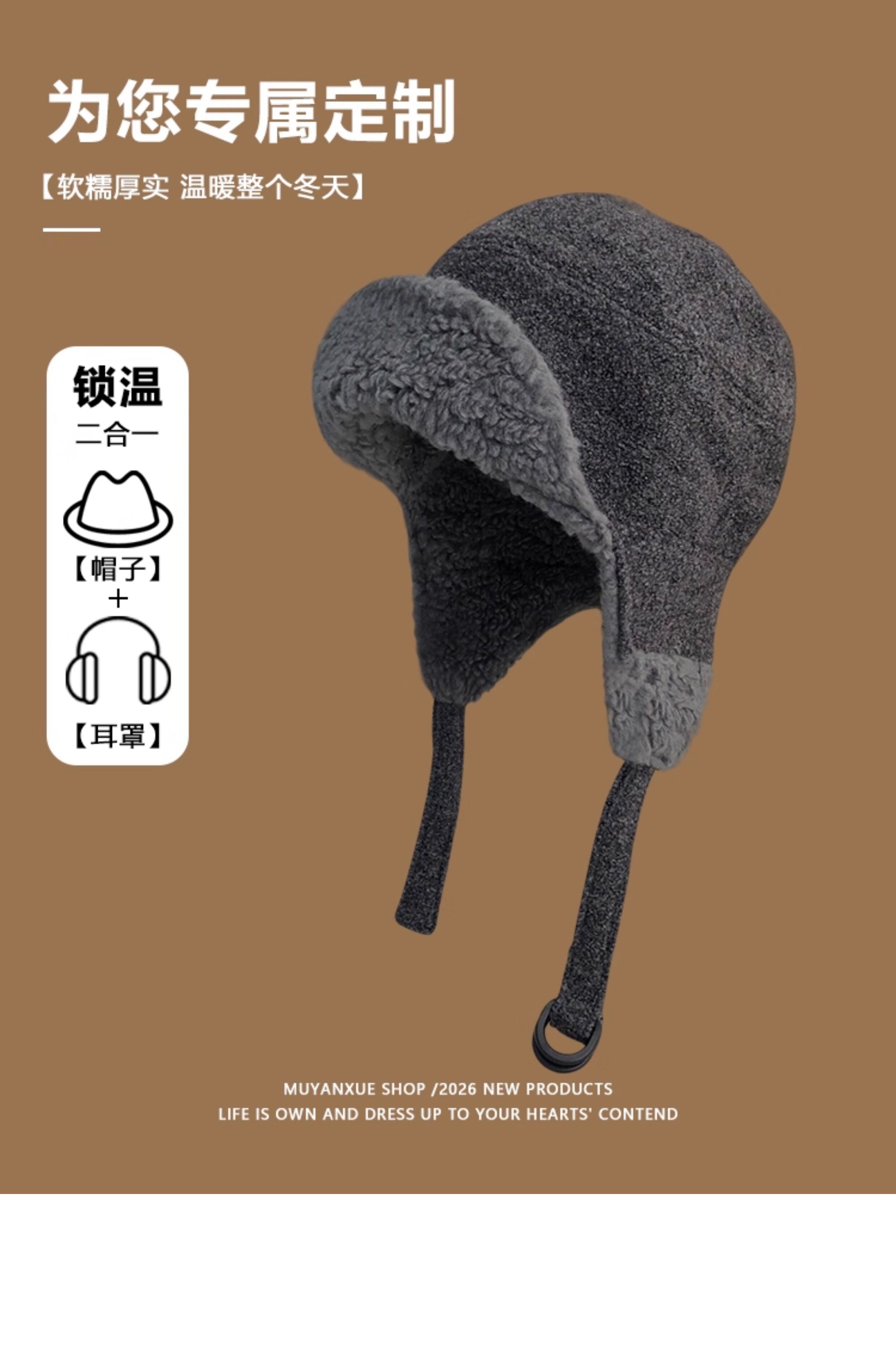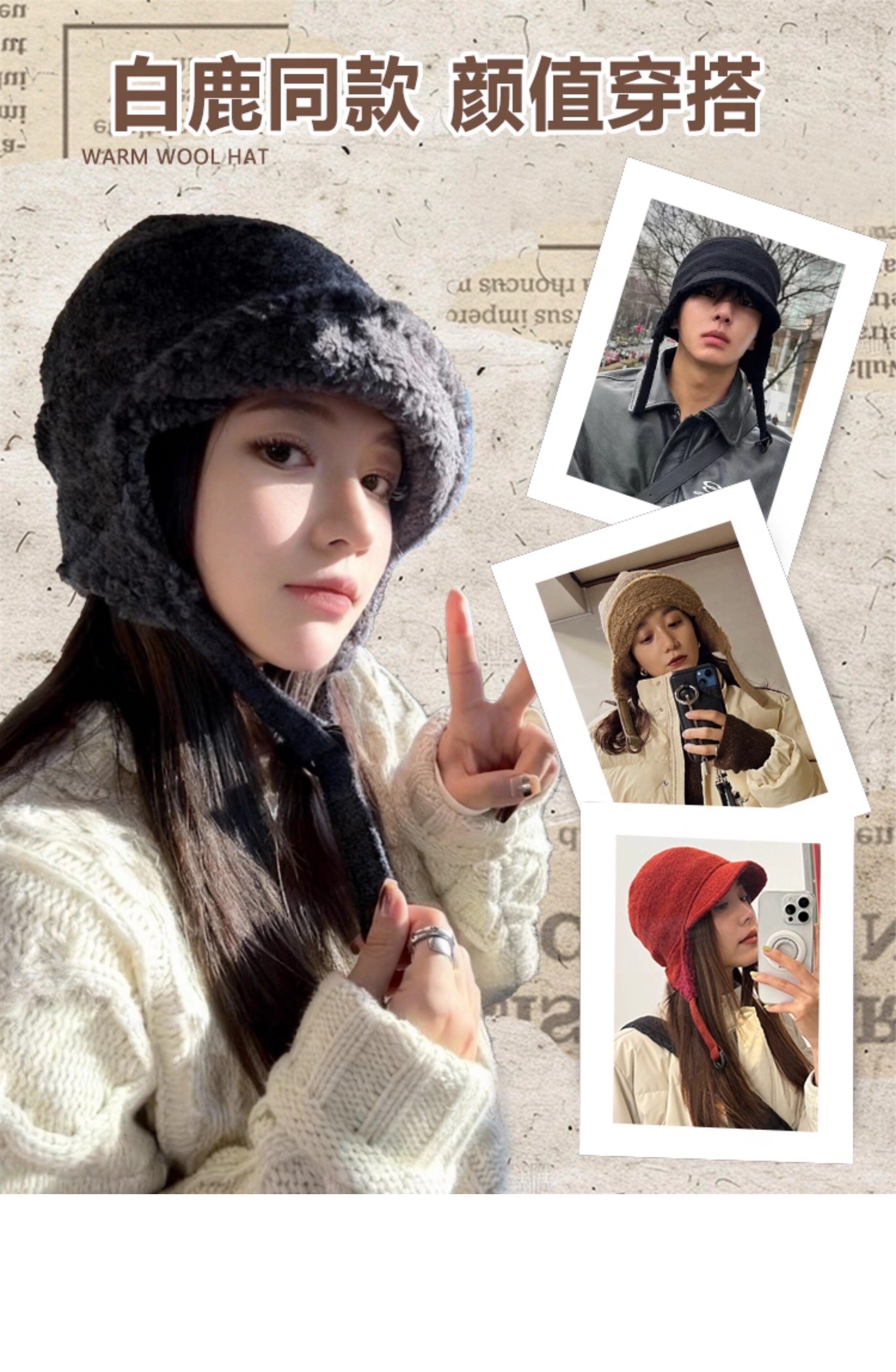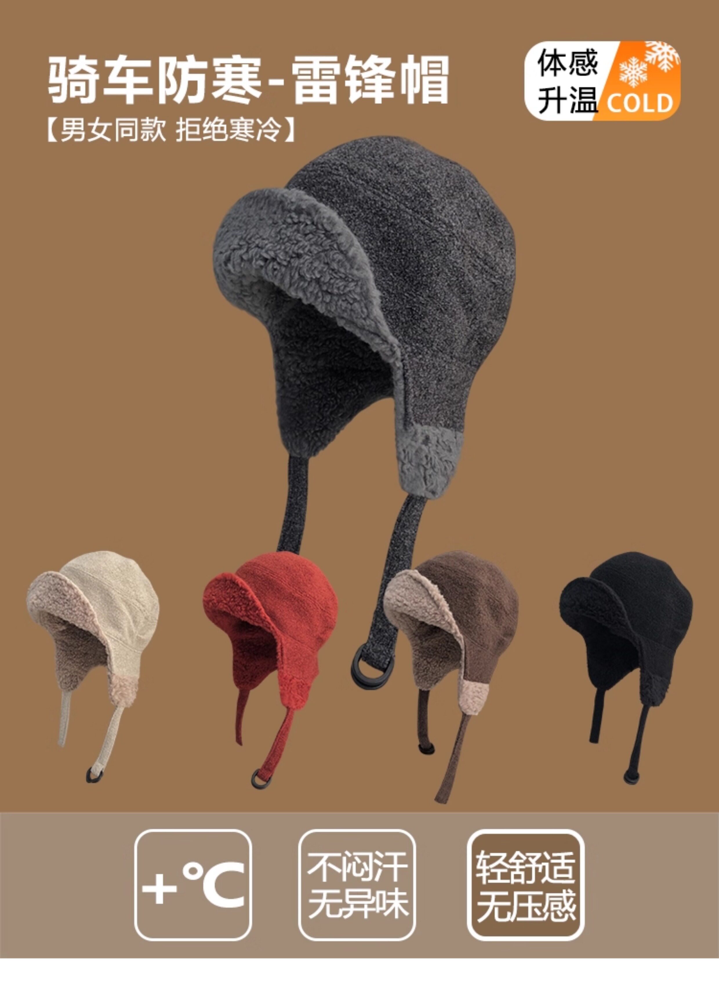 Japanese White Deer Style Lei Feng Hat for Women, Winter Warm Lamb Wool Ear-Protecting Aviator Hat for Men, Outdoor Cycling Cold-Proof Hat