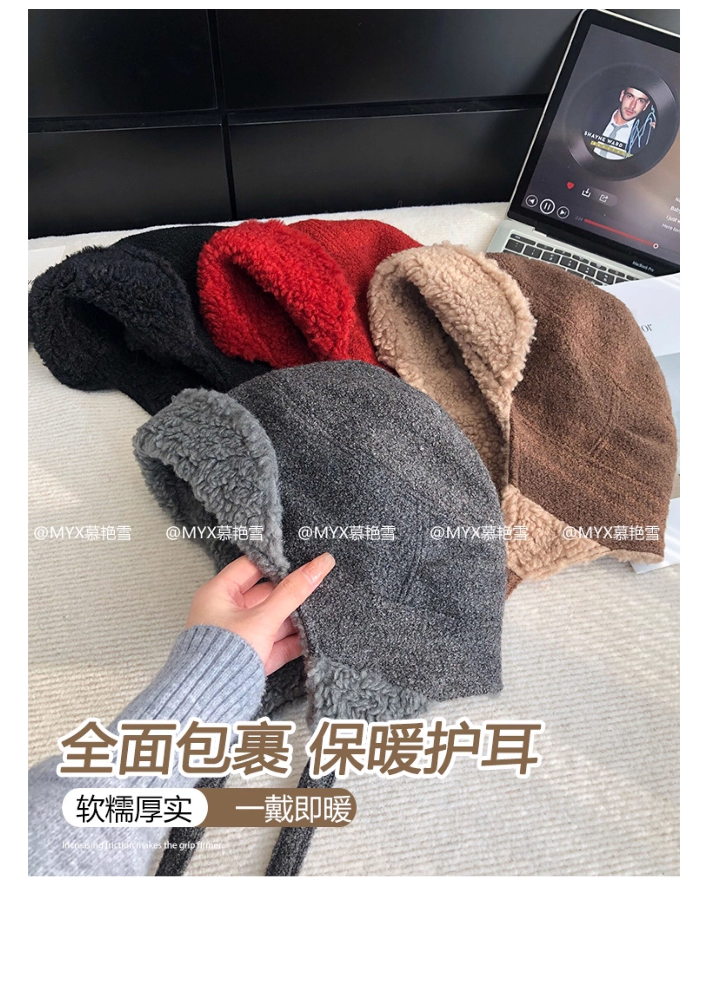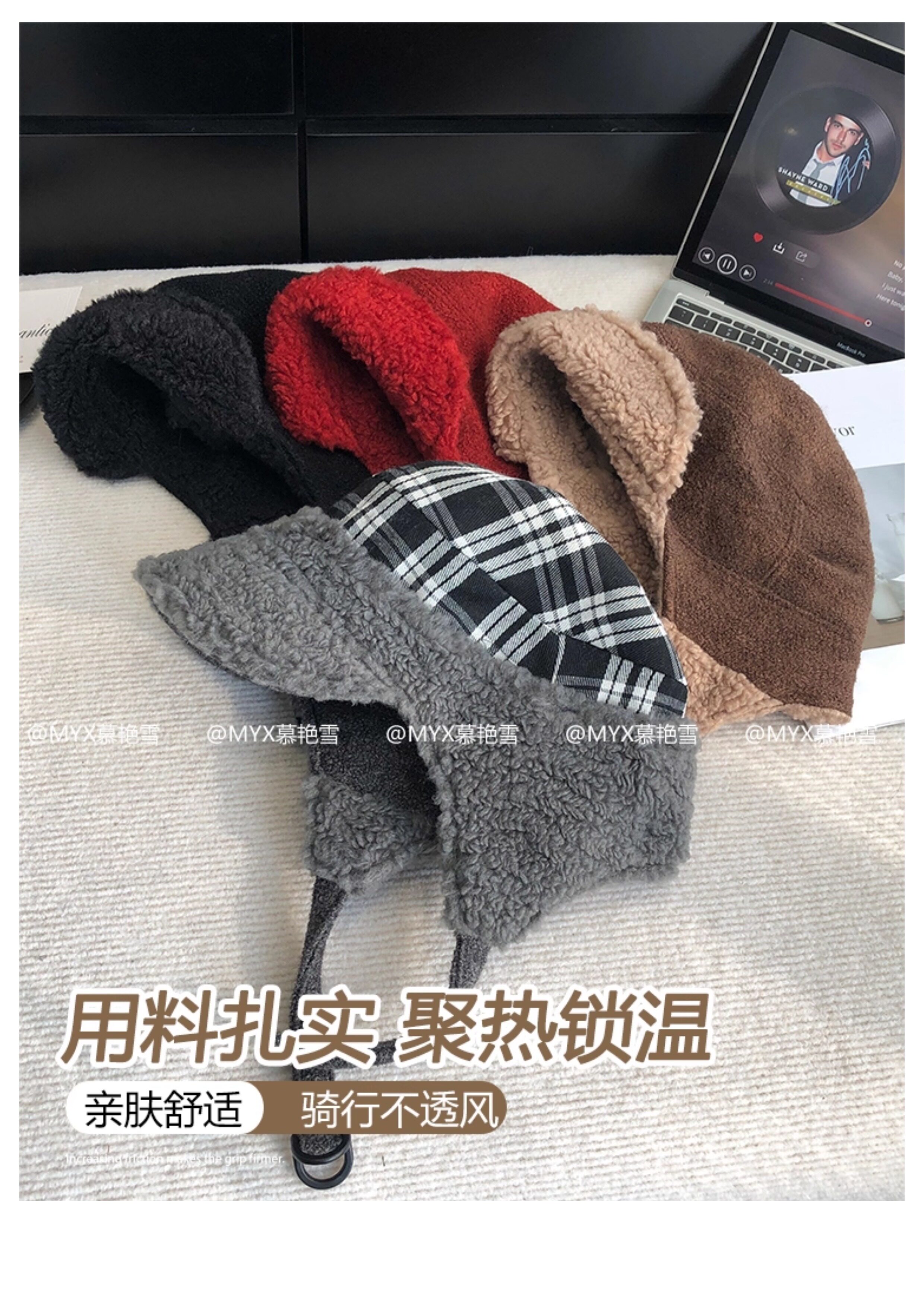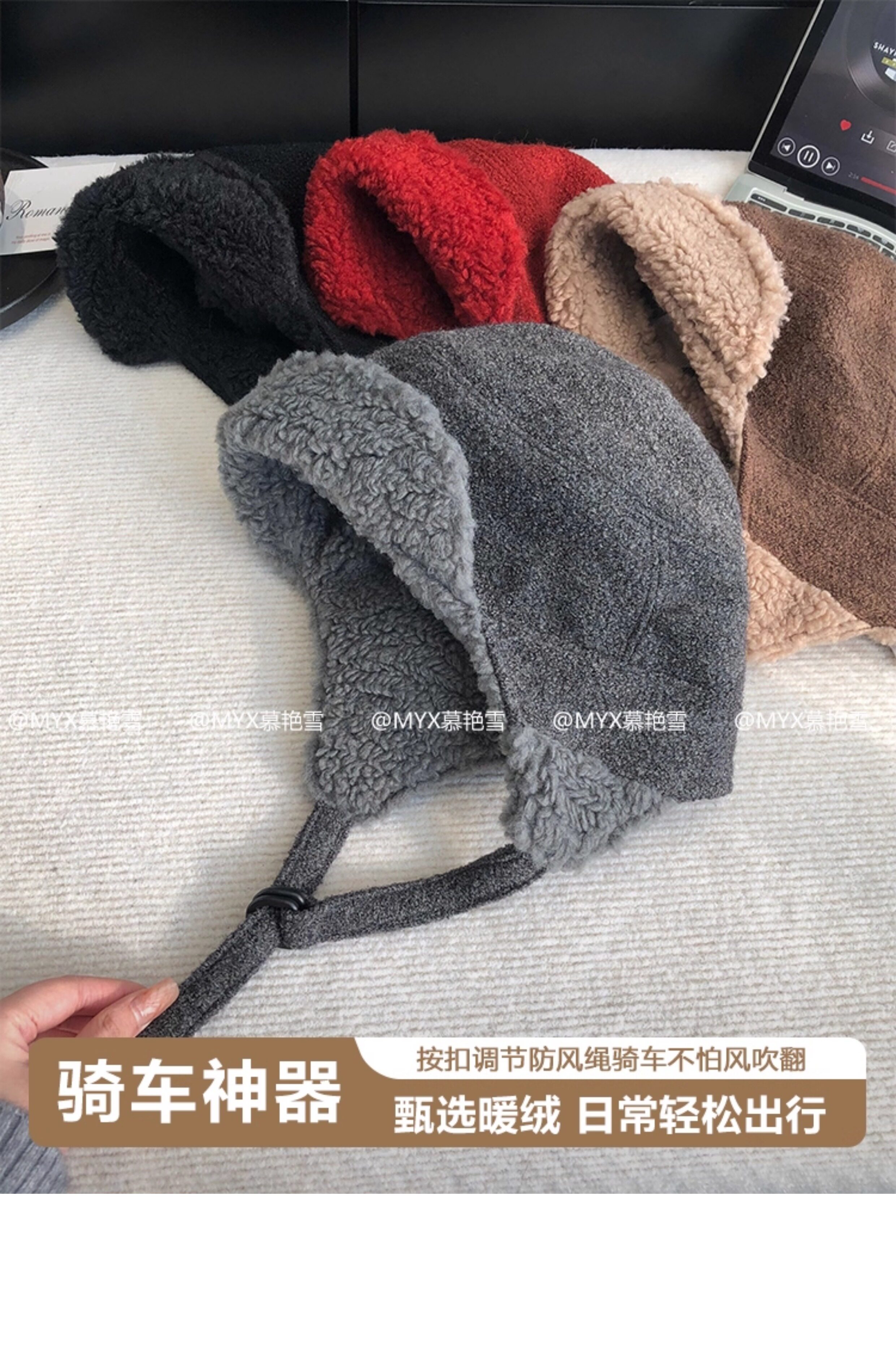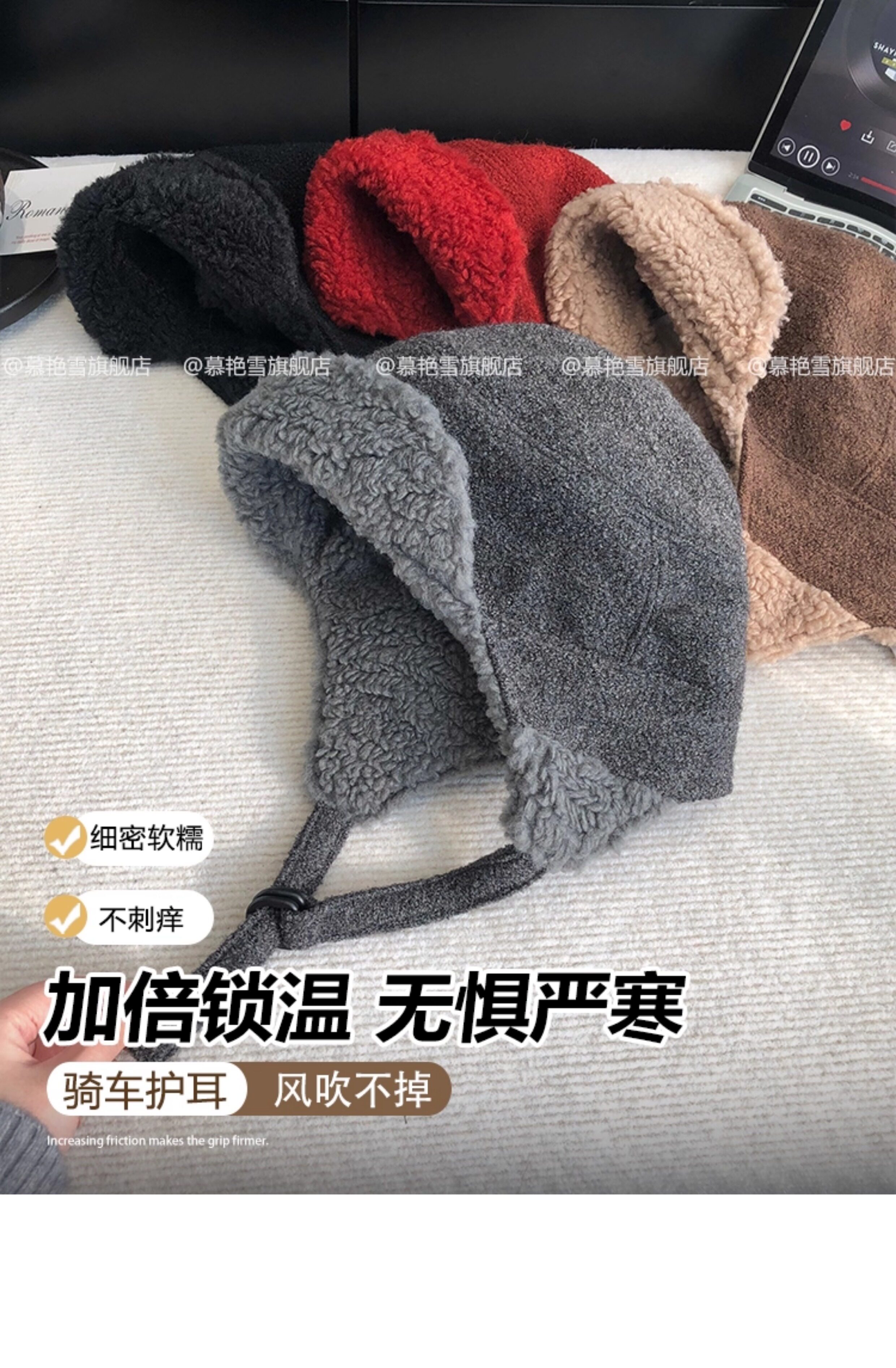 Japanese White Deer Style Lei Feng Hat for Women, Winter Warm Lamb Wool Ear-Protecting Aviator Hat for Men, Outdoor Cycling Cold-Proof Hat