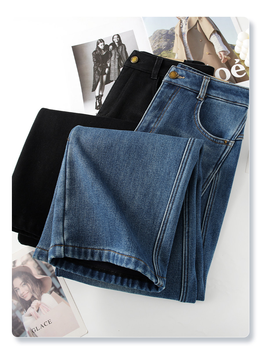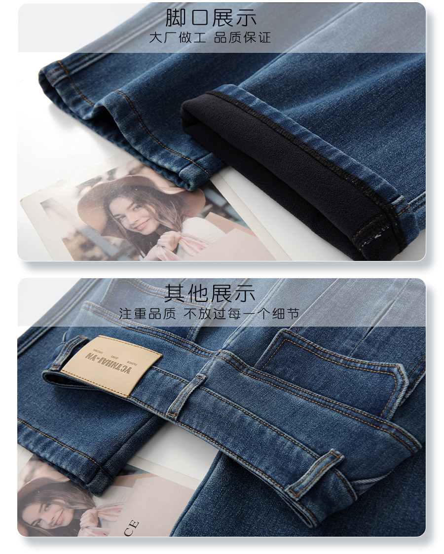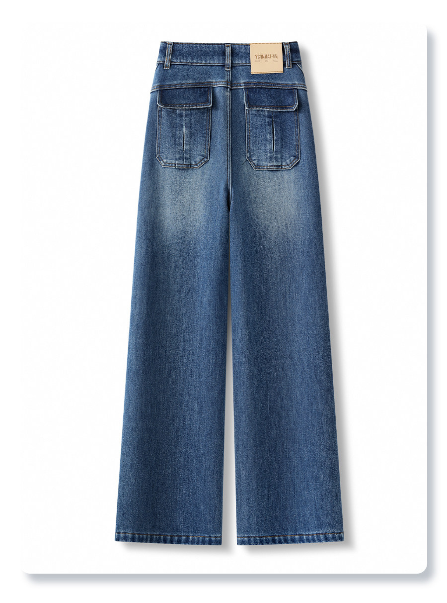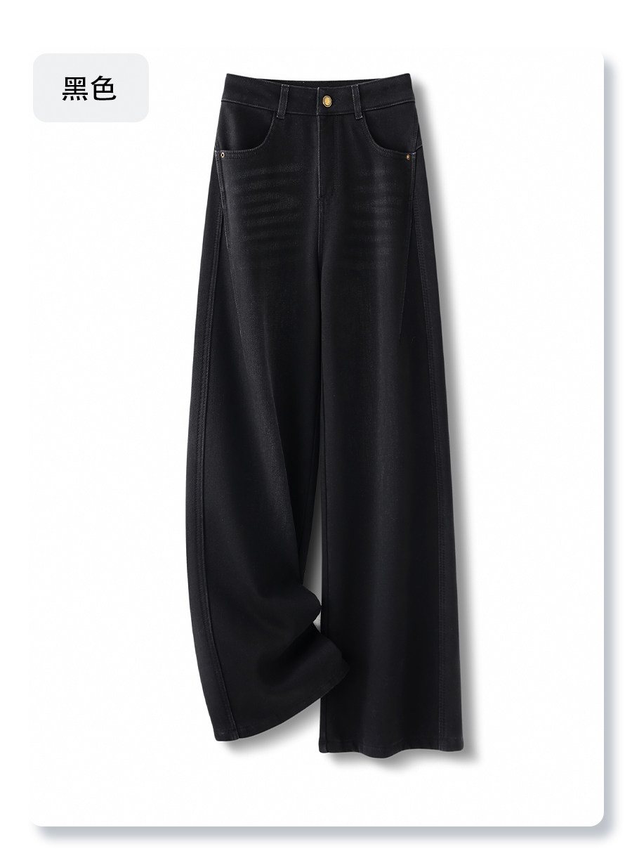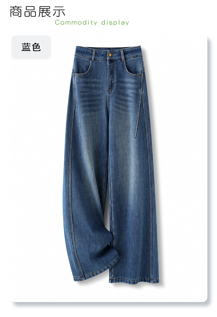 Blue retro velvet thickened wide-leg jeans for women 2025 new autumn and winter high-waist slim narrow straight pants