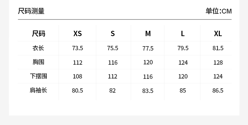 China(cm) 72-76 76-81 81-87 87-93 93-98