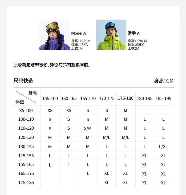 China (cm) 160-165/84-86 165-170 / 88-90 167-172 / 92-96 168-173 / 98-102 170-176 / 106-110