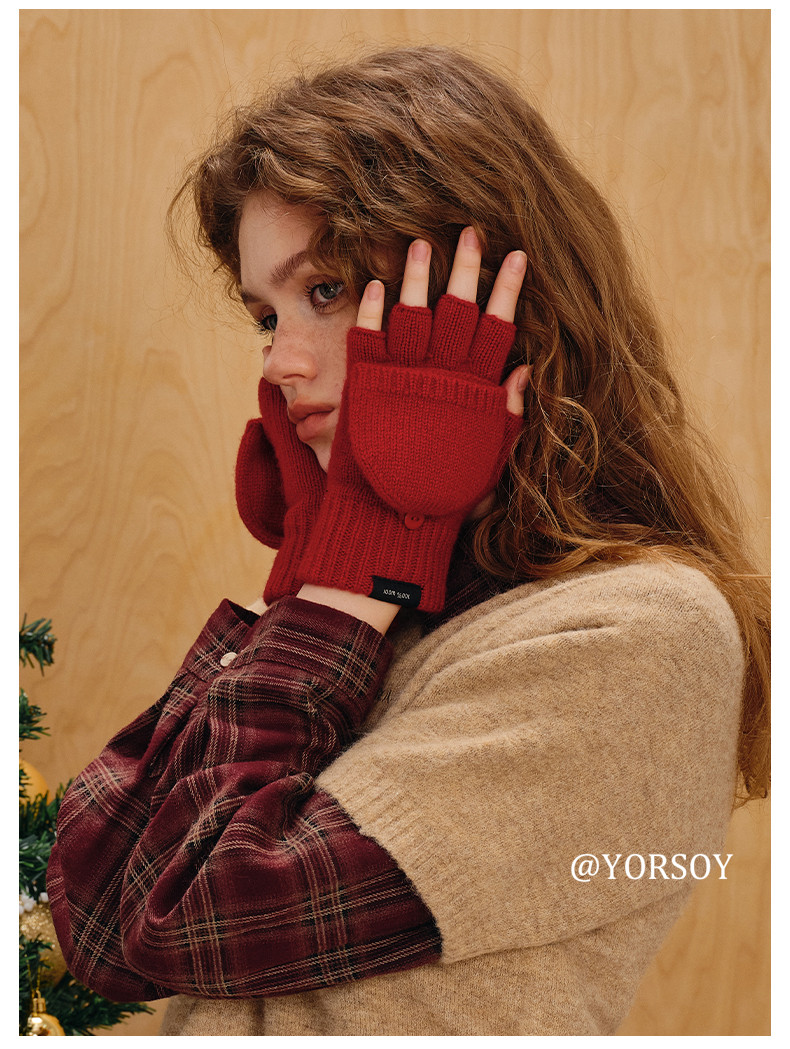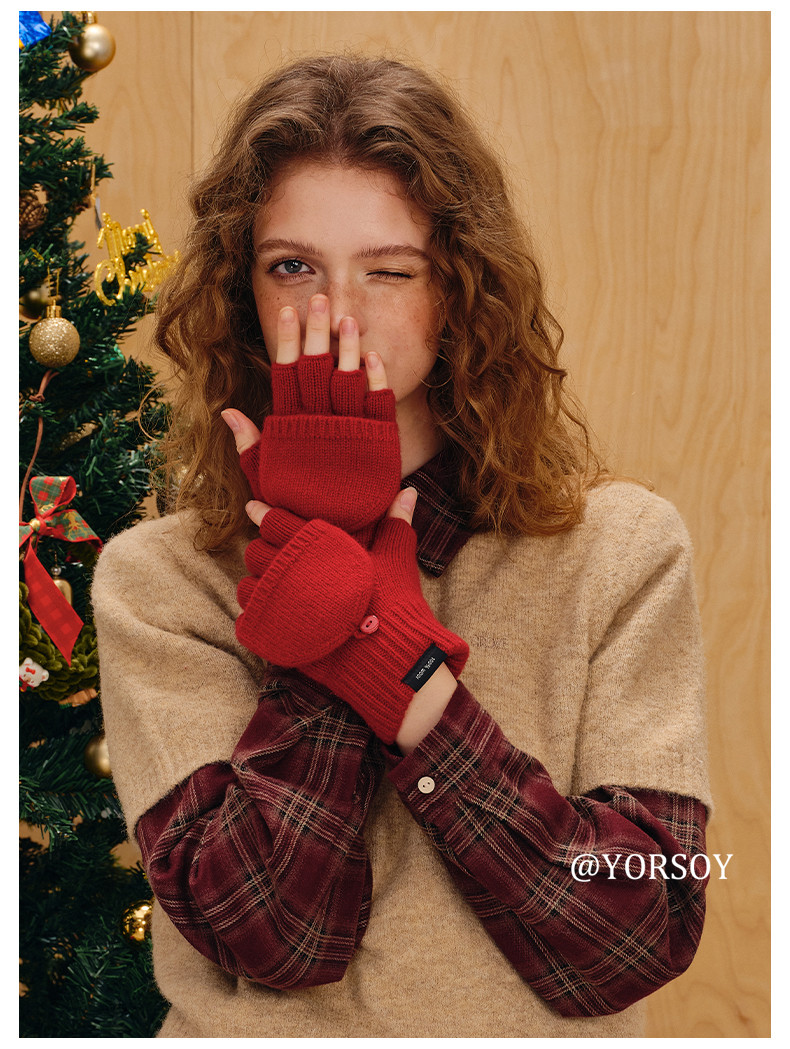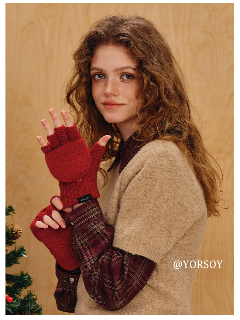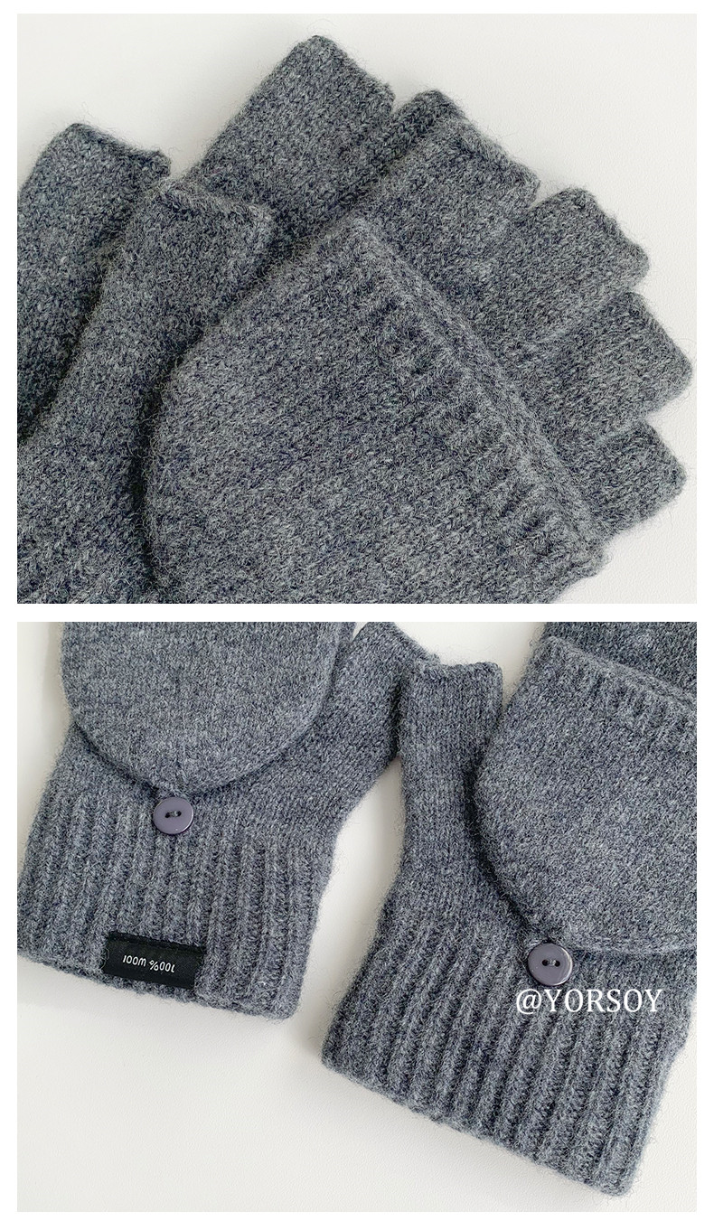 Australian 100% Pure Wool Half-Finger Flip-Top Gloves for Women, Autumn and Winter High-End Thickened Warm Writing Fingerless Touch Screen Gloves