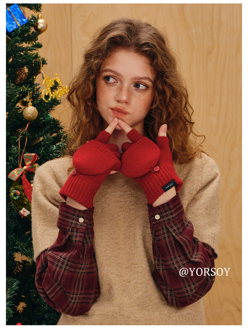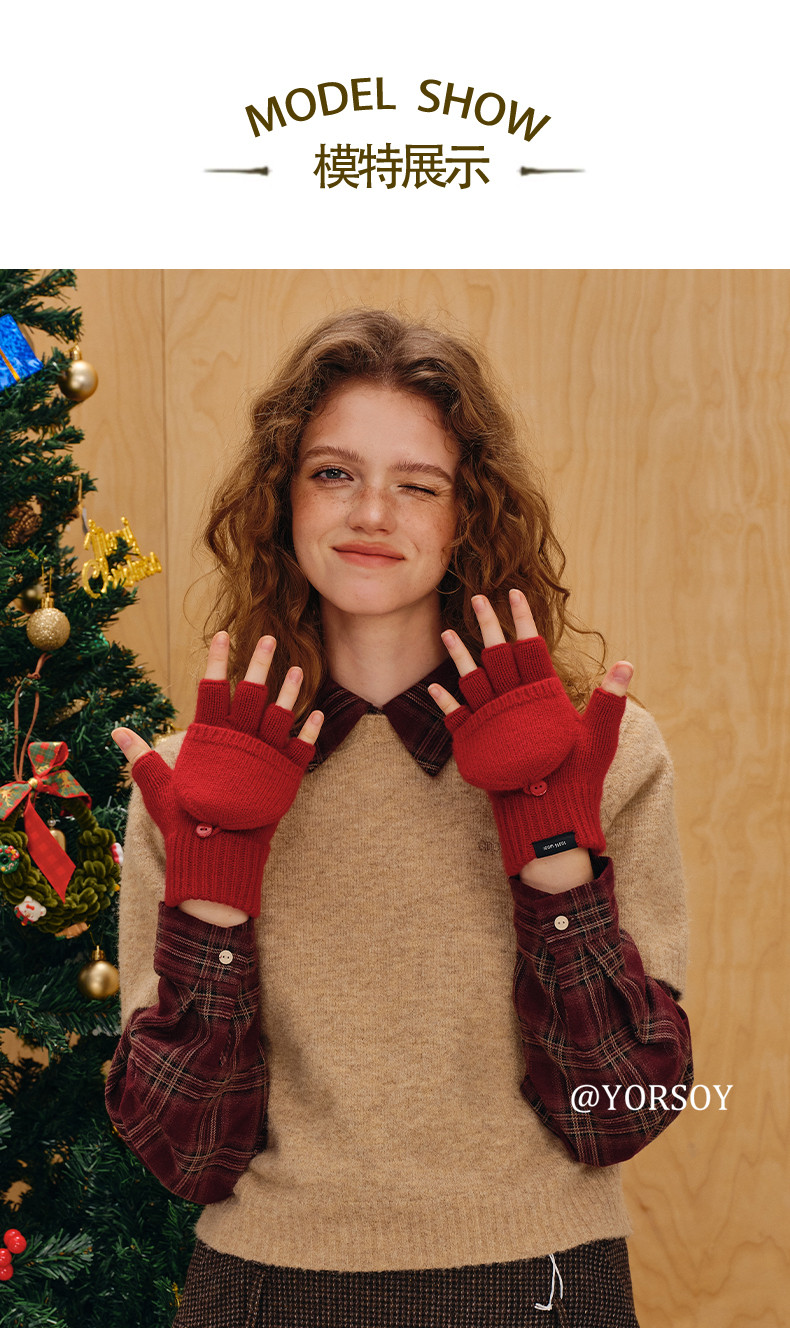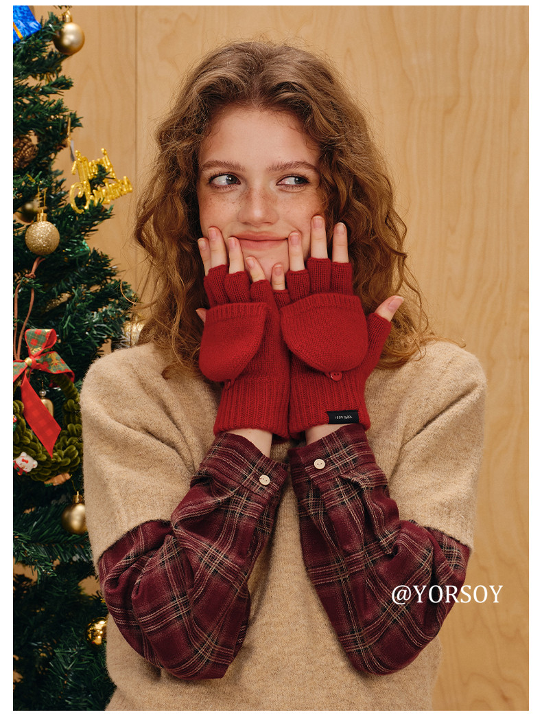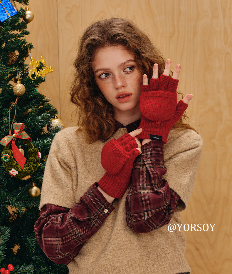 Australian 100% Pure Wool Half-Finger Flip-Top Gloves for Women, Autumn and Winter High-End Thickened Warm Writing Fingerless Touch Screen Gloves