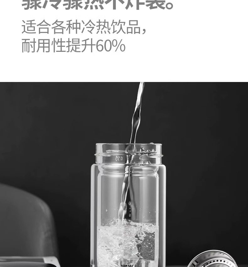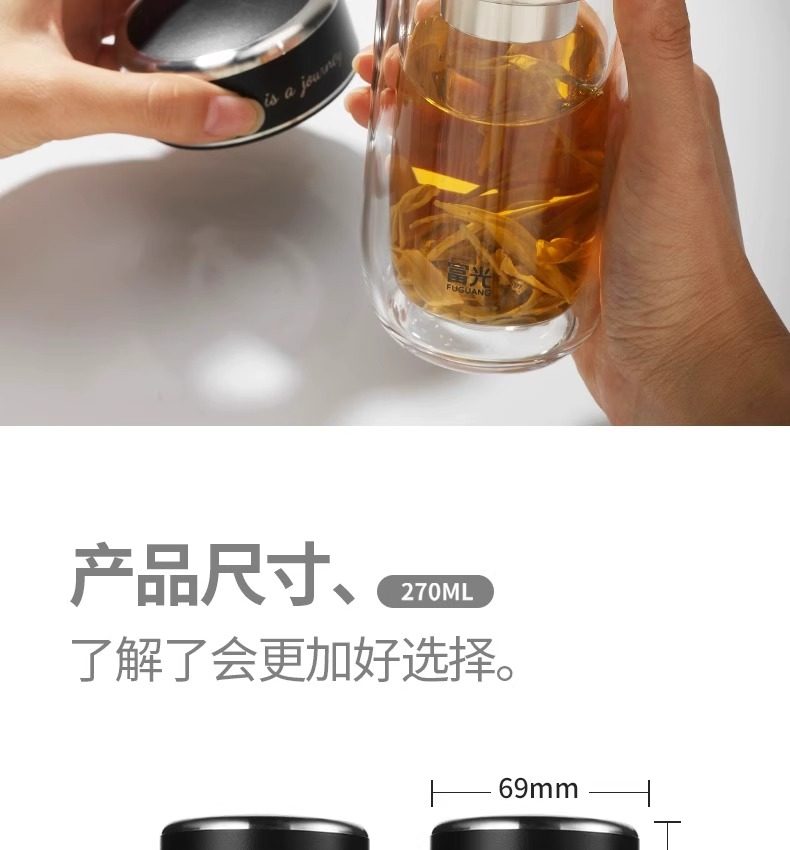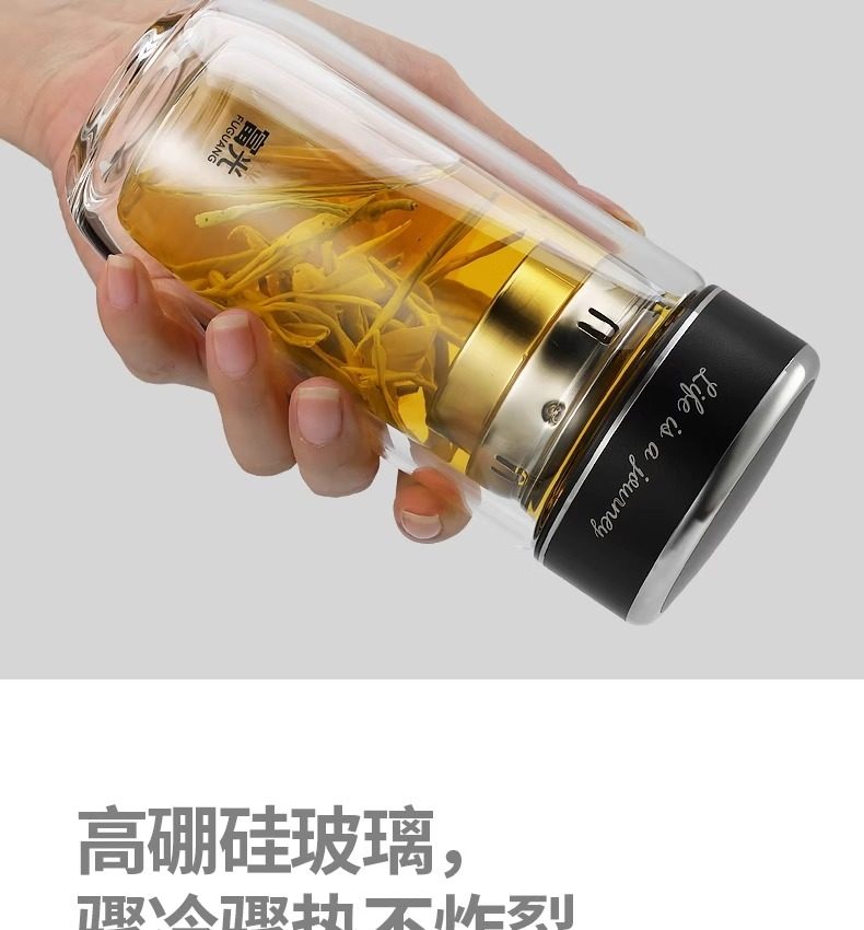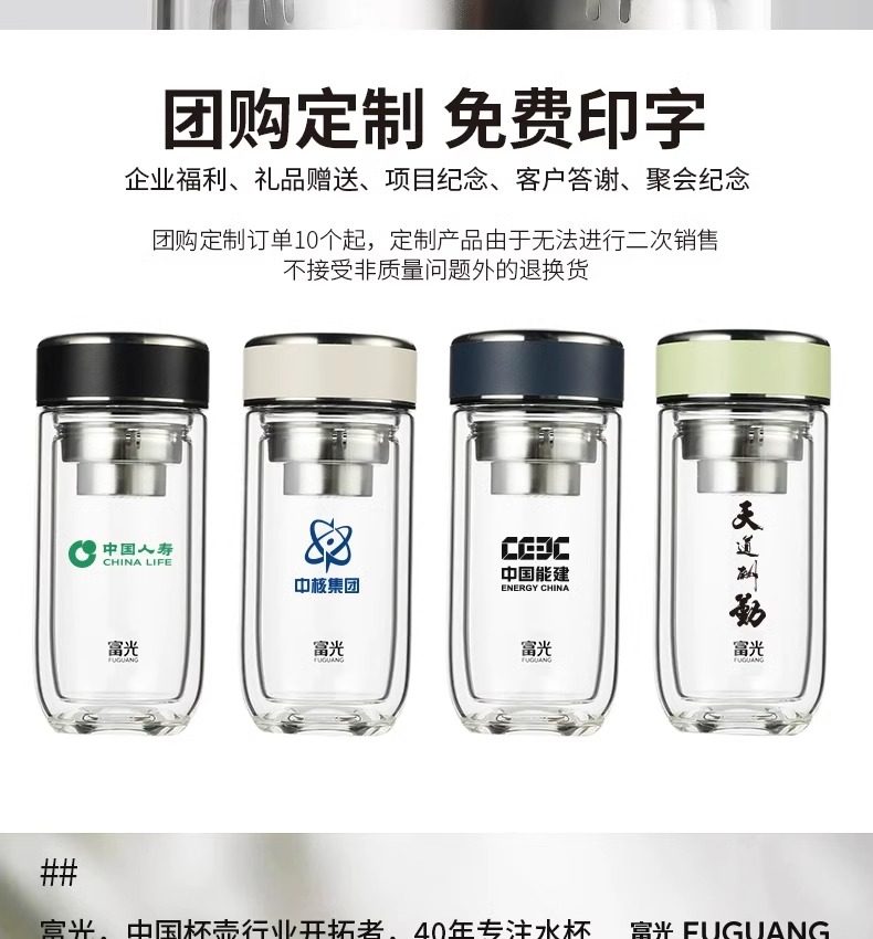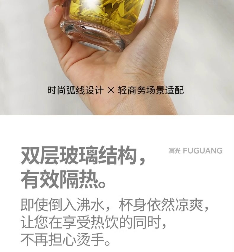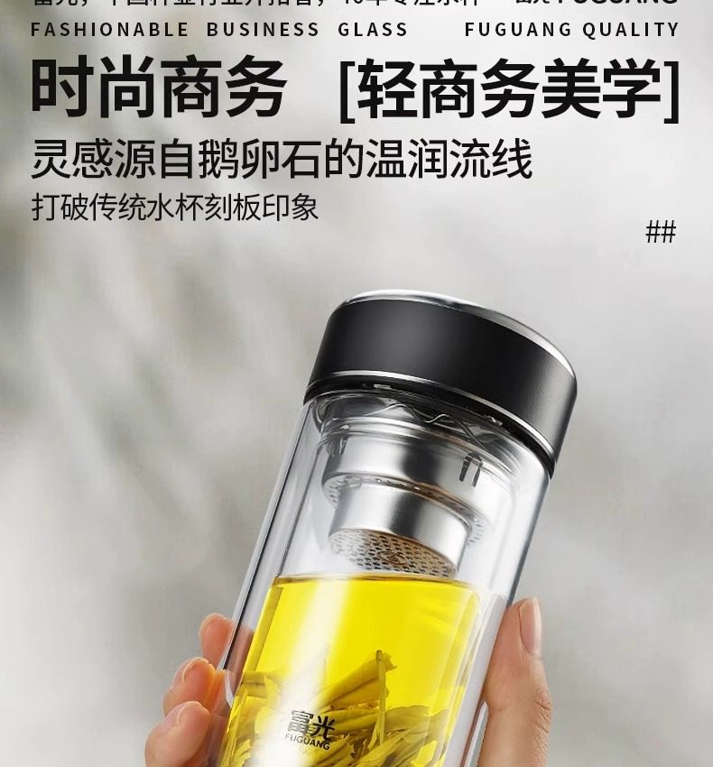 Fuguang Double-Layer Popular Glass Cup for Men, High-Temperature Resistant Tea Cup, Portable Water Cup, New Style High-Value Cup for Women