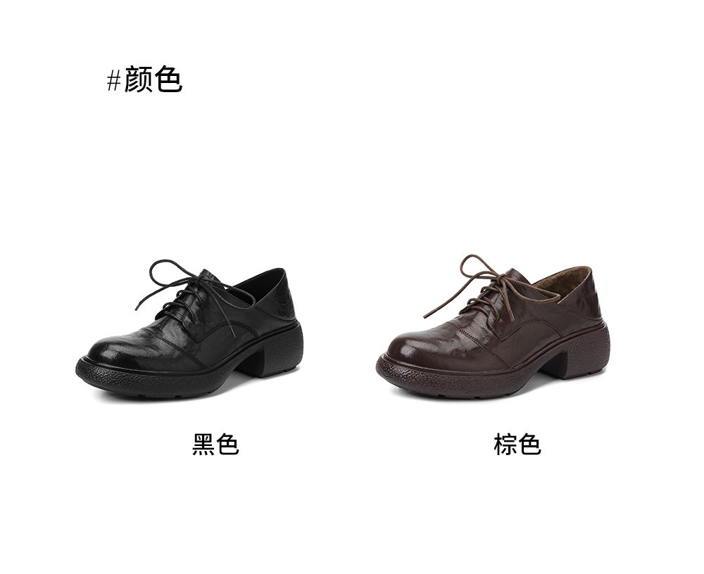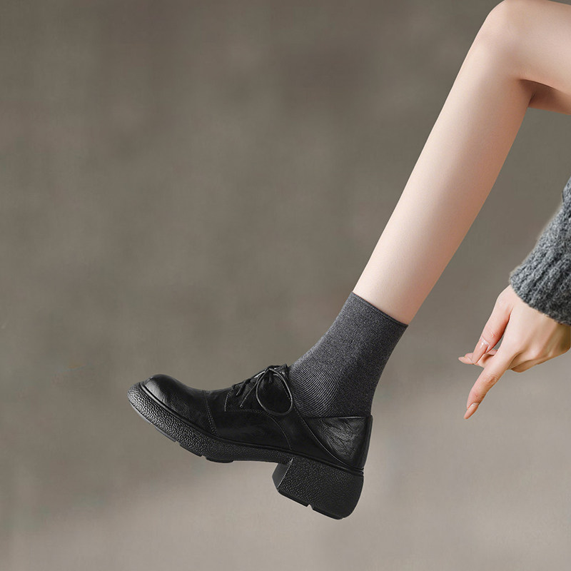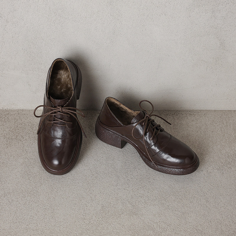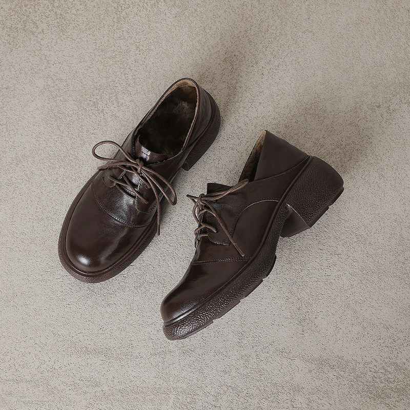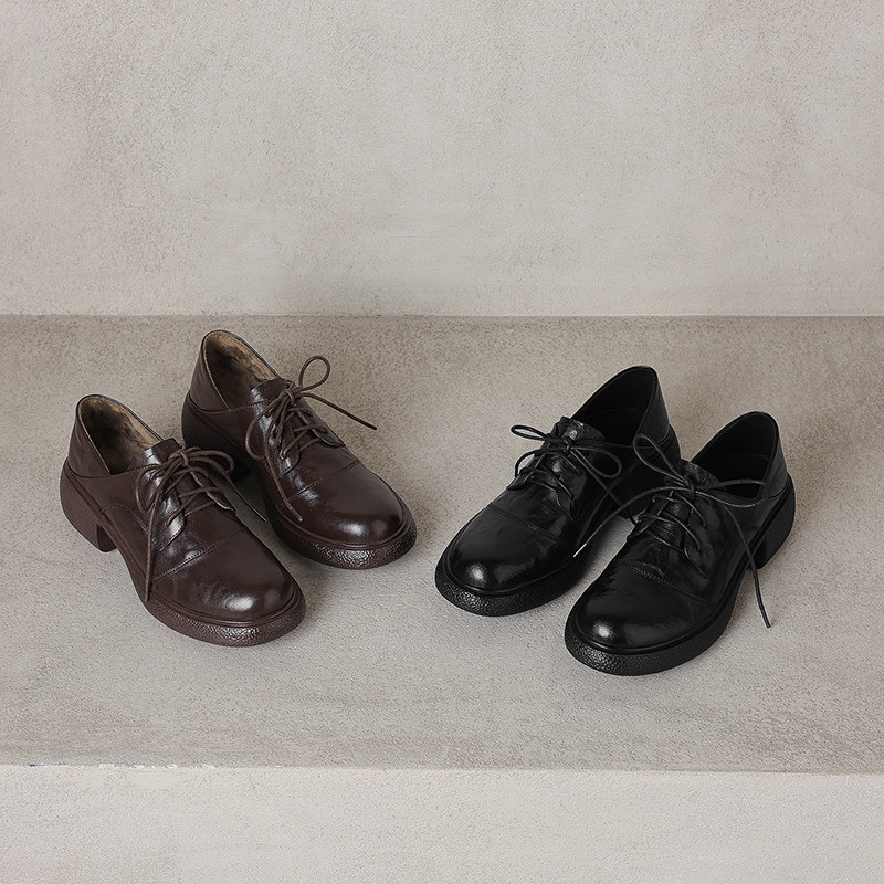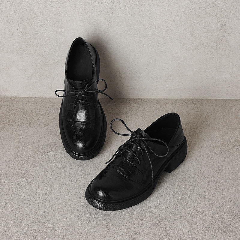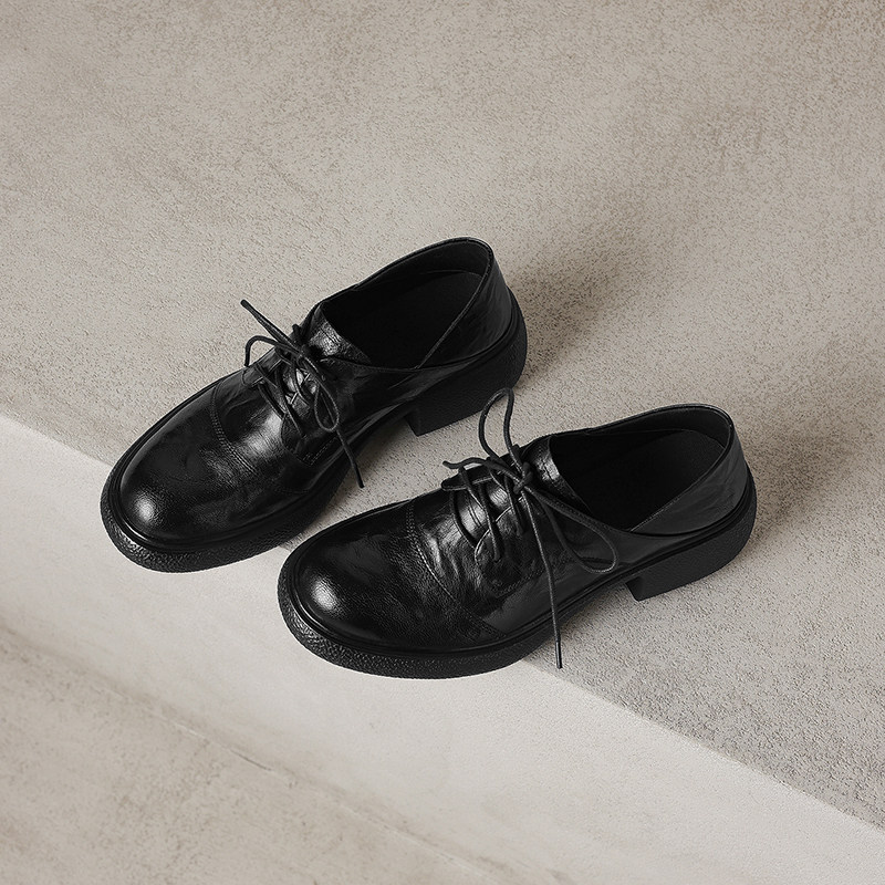Original Soft Sheepskin British Style Thick-Soled Deep-Cut Women's Lace-Up Leather Shoes with Chunky Heels, Retro Loafers