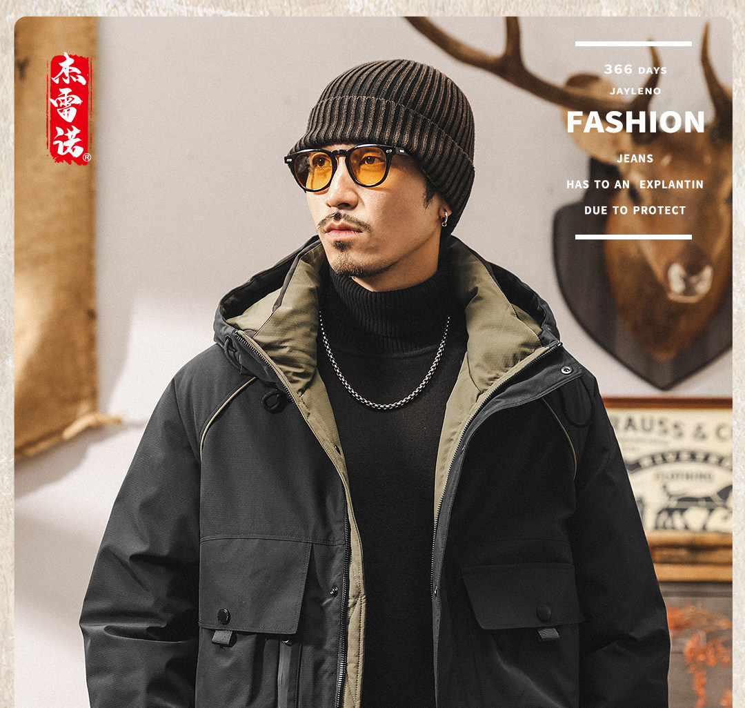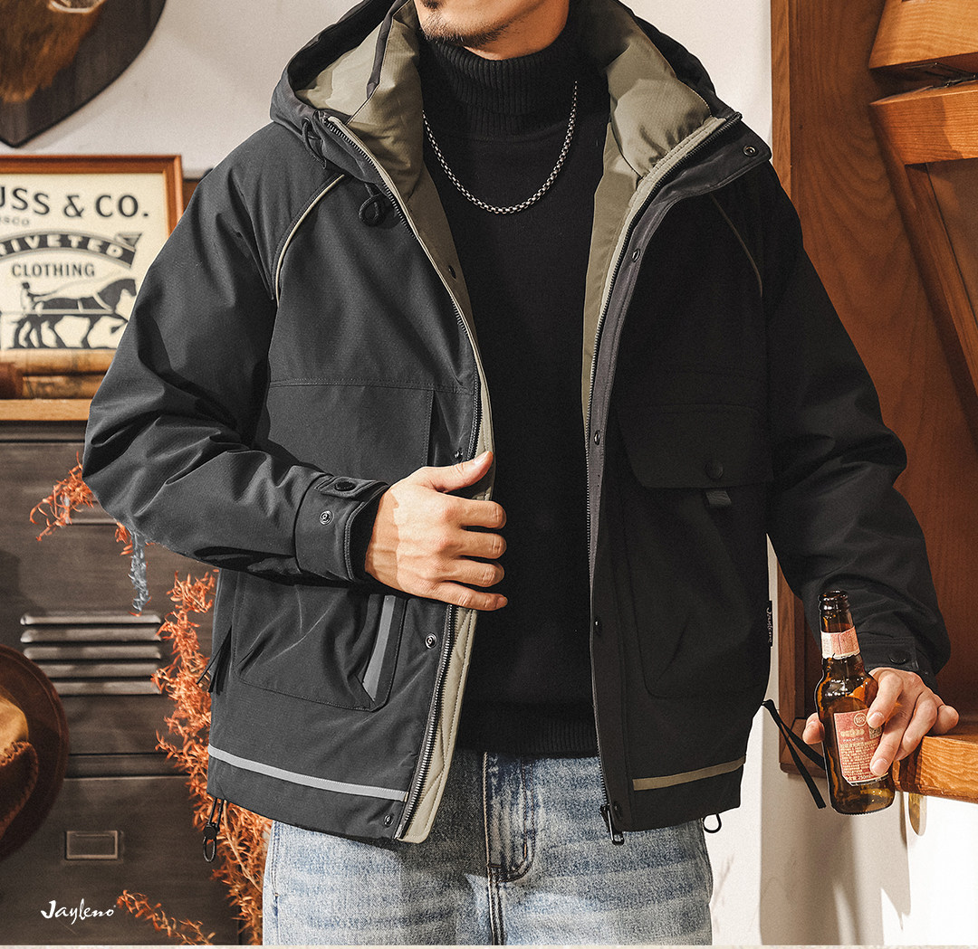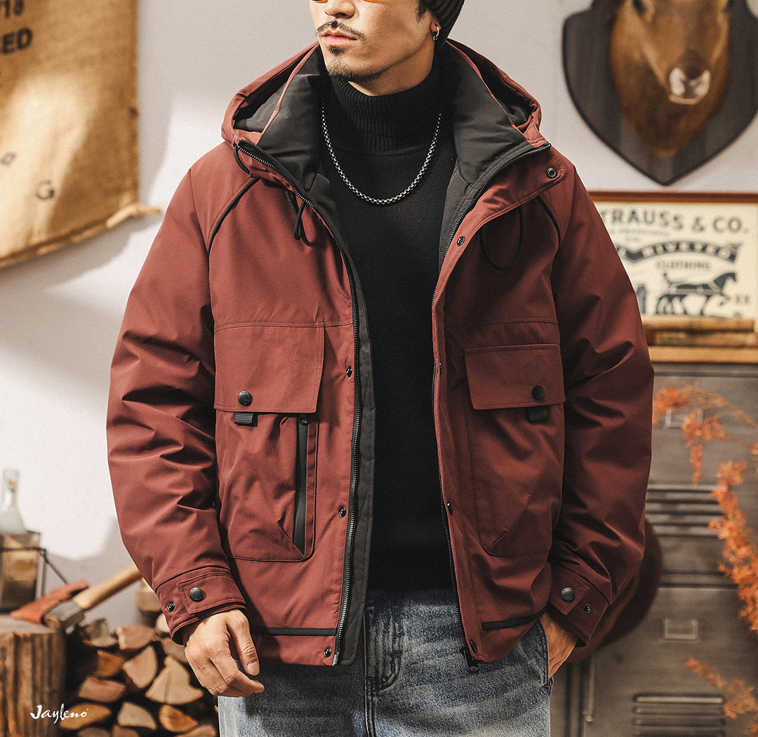American retro high-fill velvet cold workwear down jacket for men in winter thickened and warm outdoor party jacket