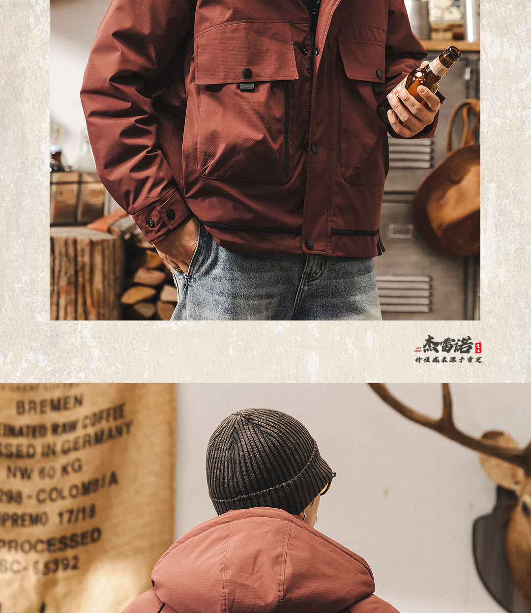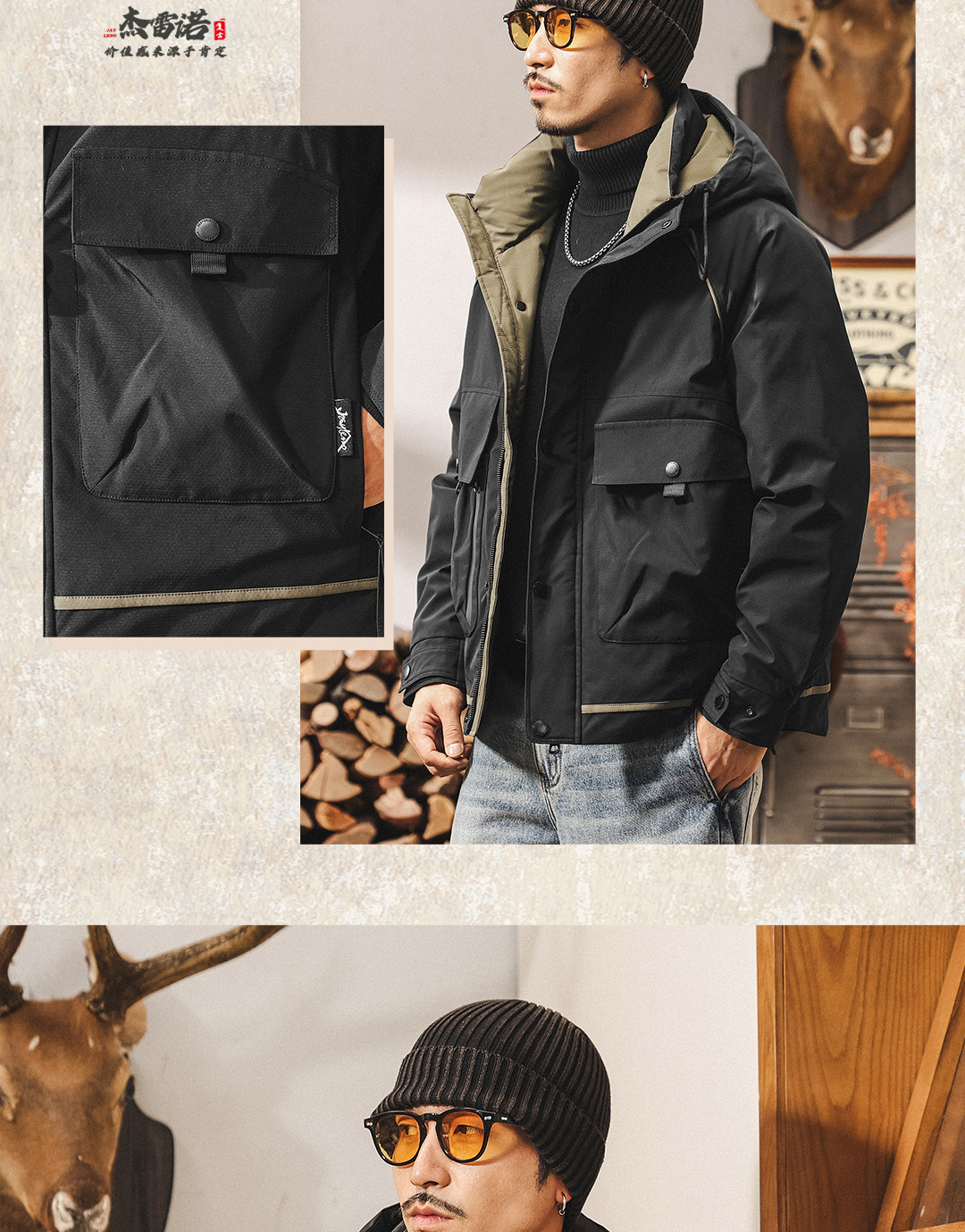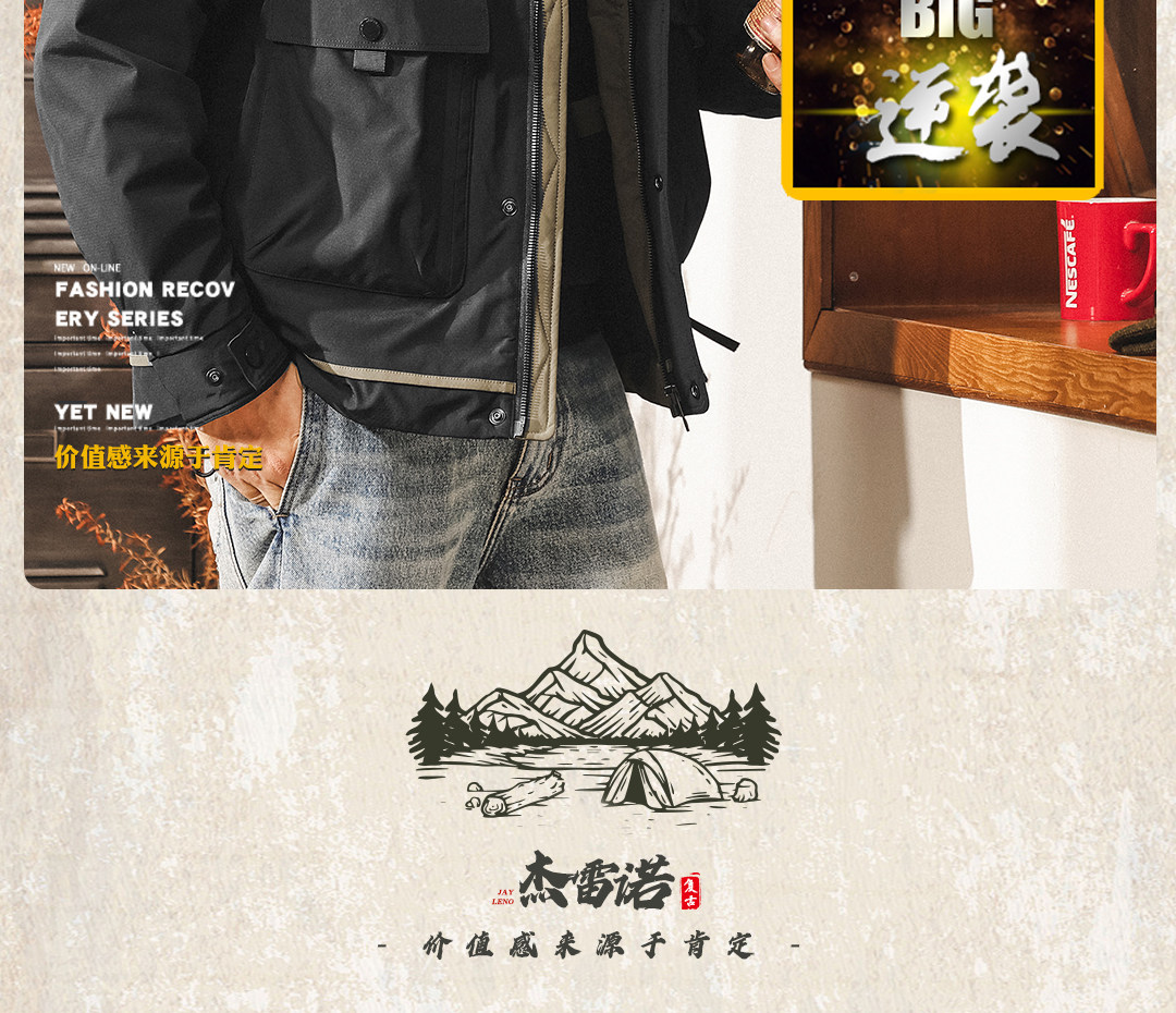 American retro high-fill velvet cold workwear down jacket for men in winter thickened and warm outdoor party jacket