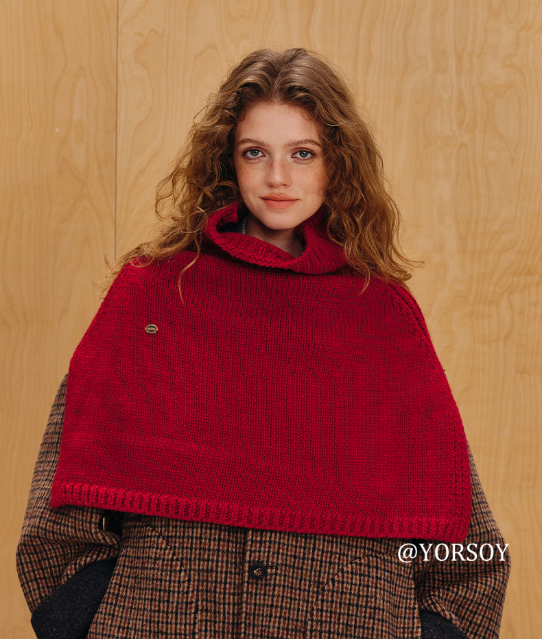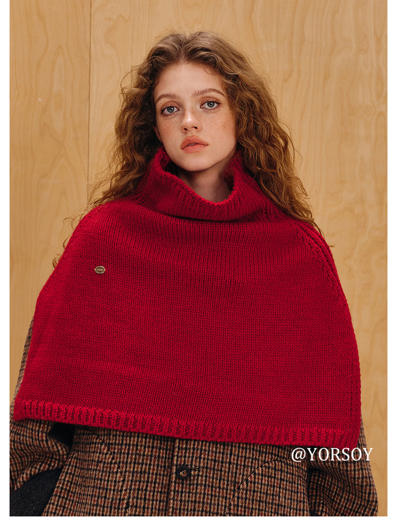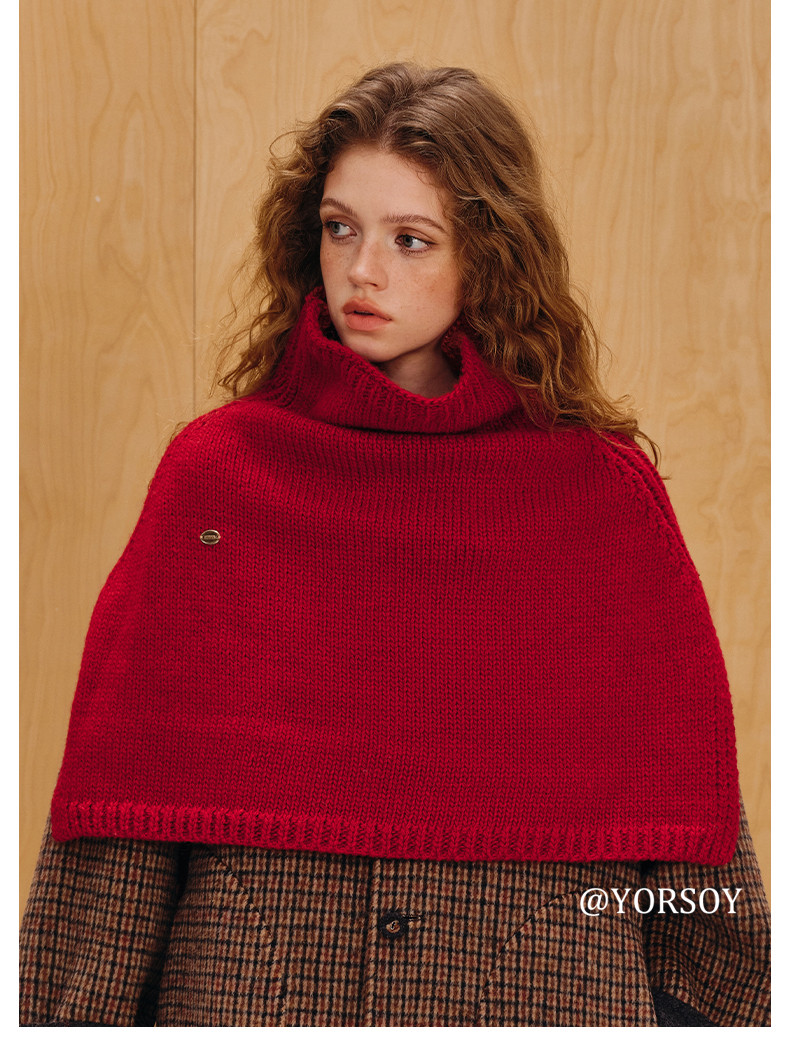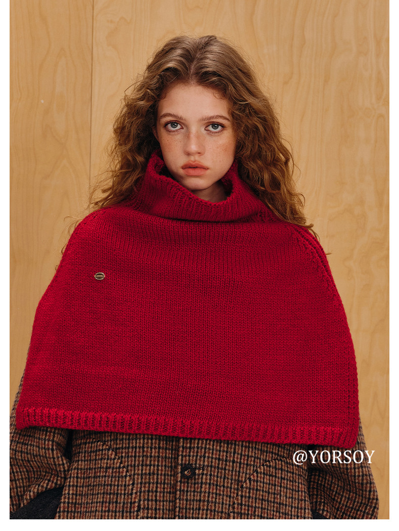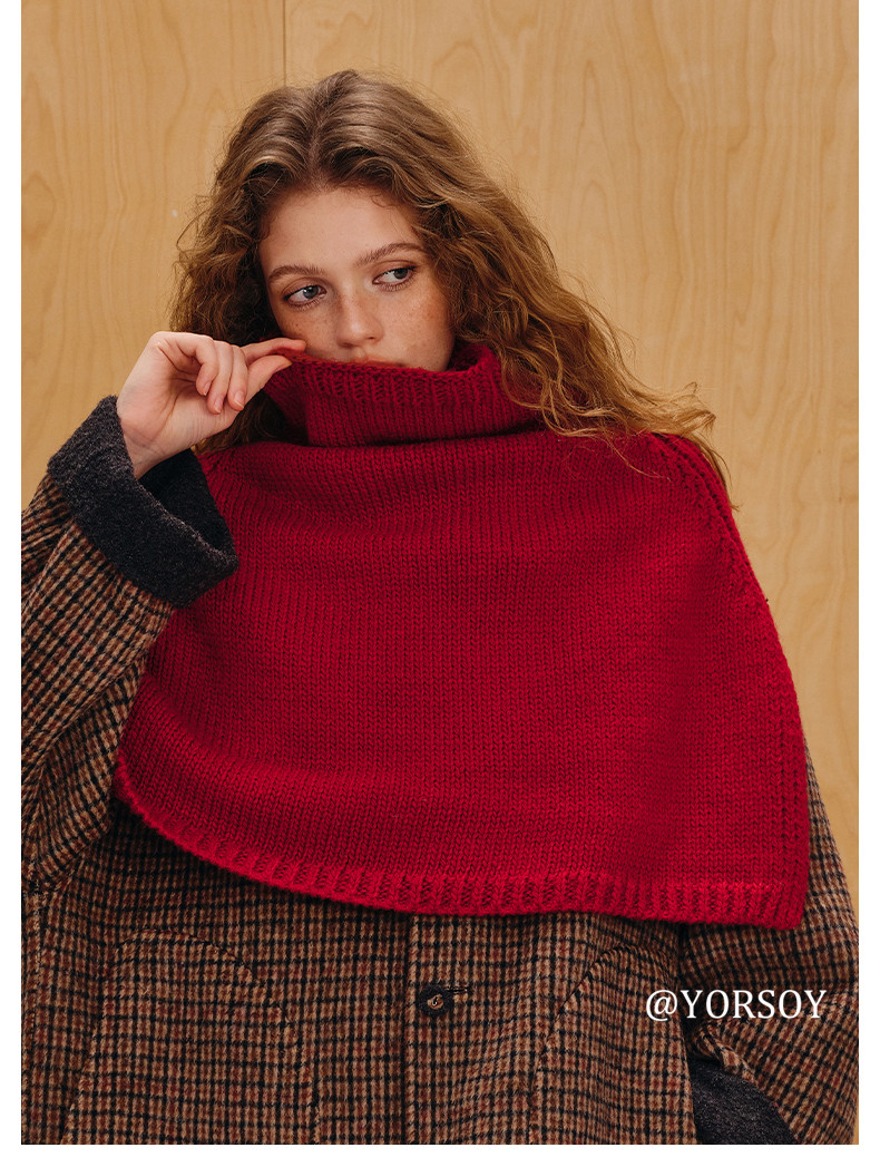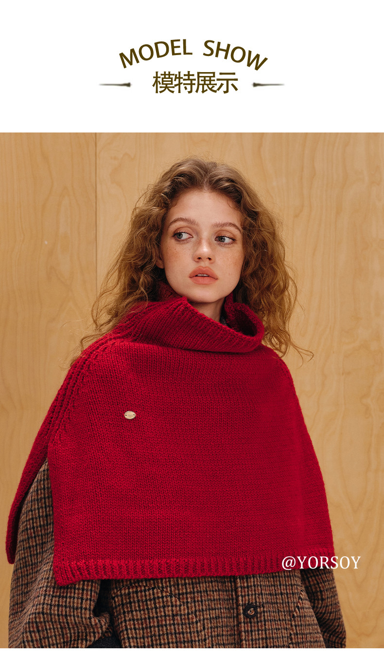 Retro Red Cape Shawl Integrated Scarf for Women, Autumn and Winter Shoulder Warmer, Neck Protector, Knitted Neck Wrap to Pair with Coat