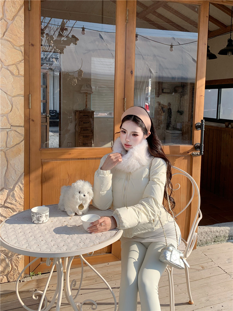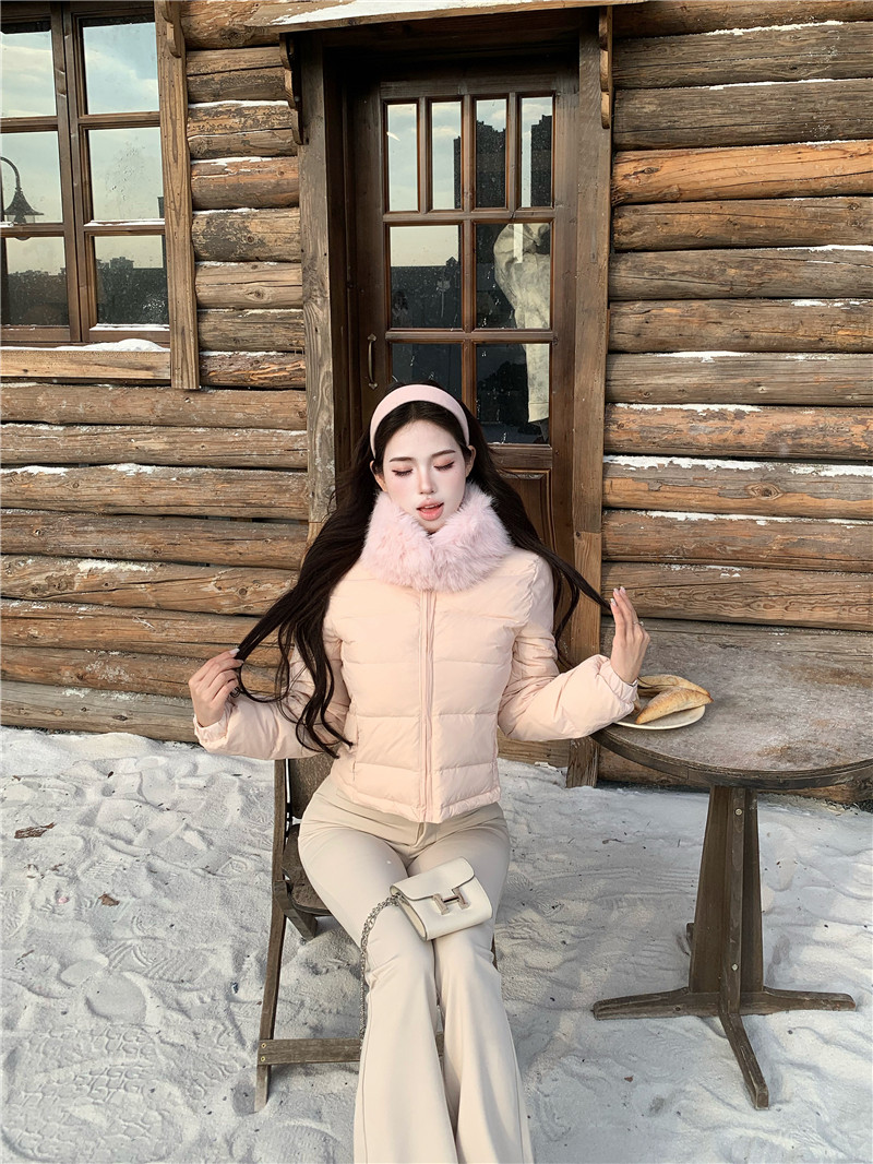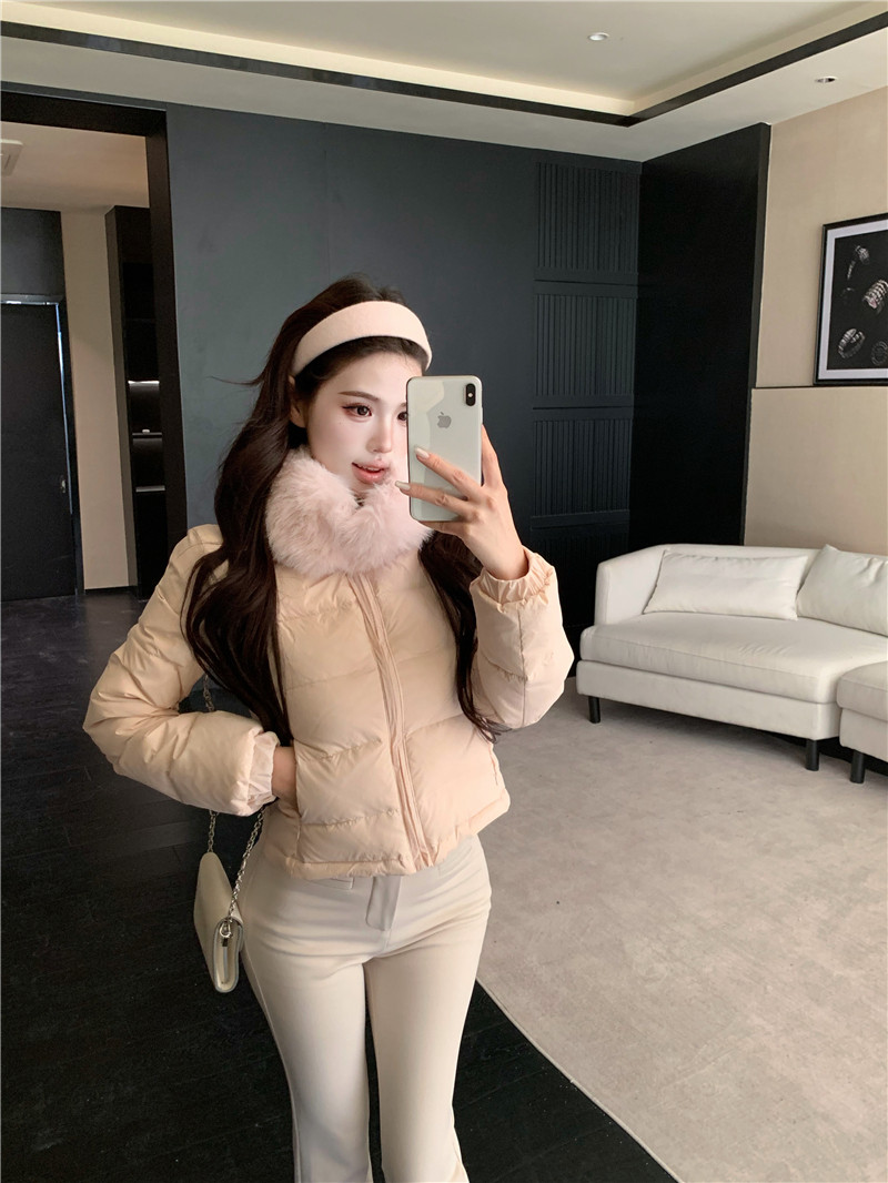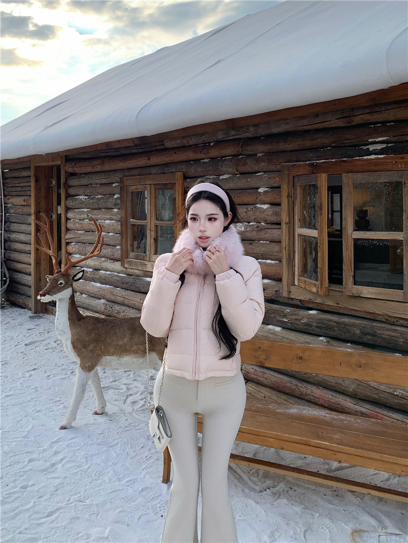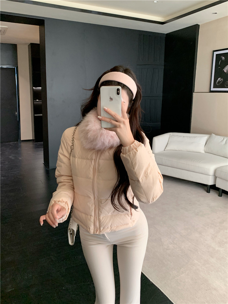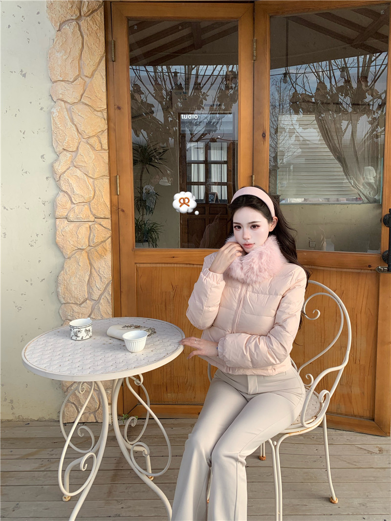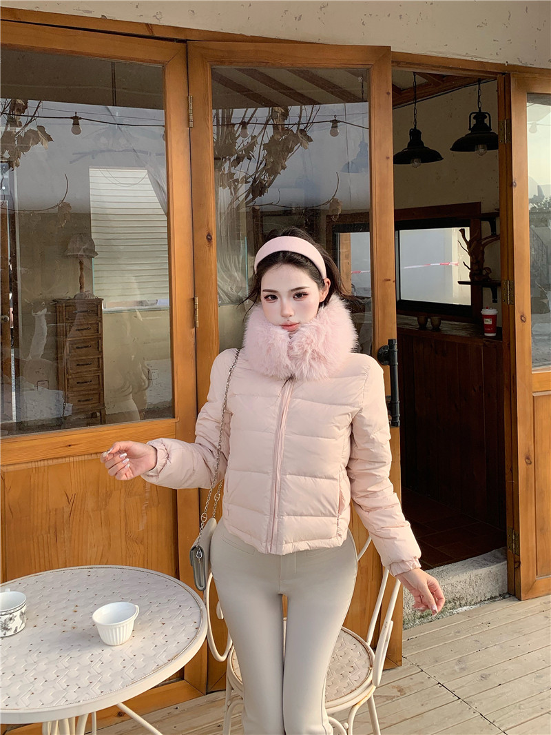 Korean version of pink warm fur collar cotton coat for women winter versatile loose down jacket zipper slimming cotton coat and jacket
