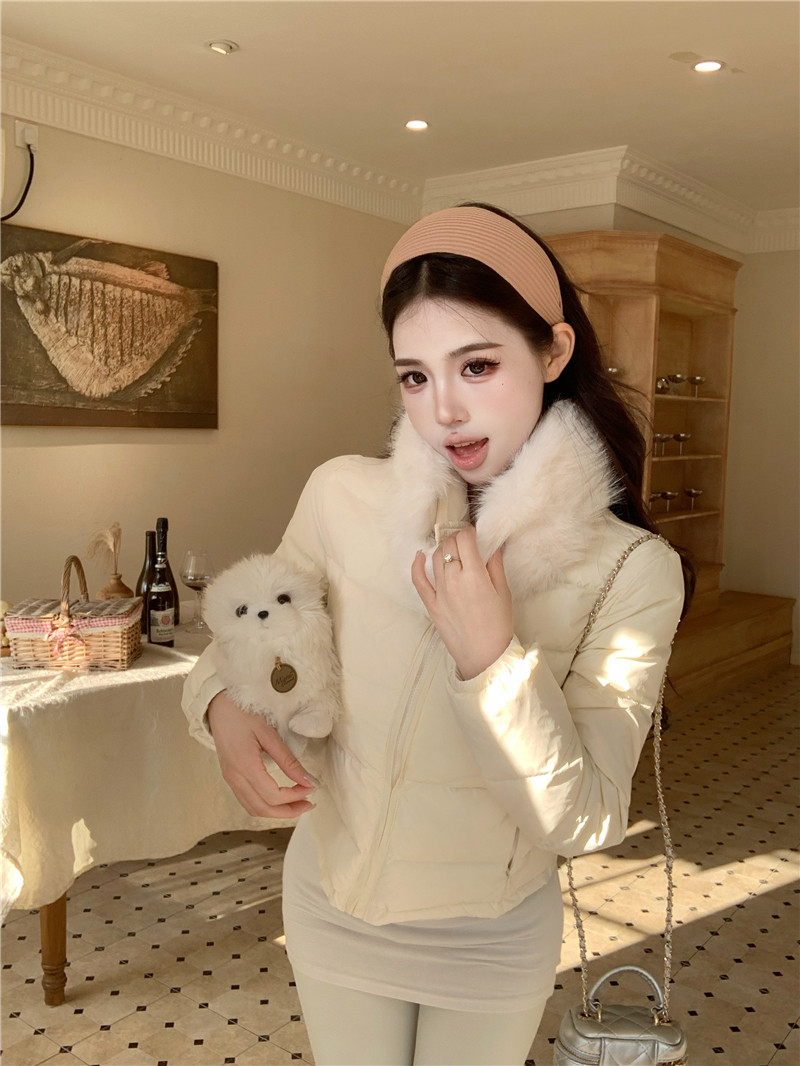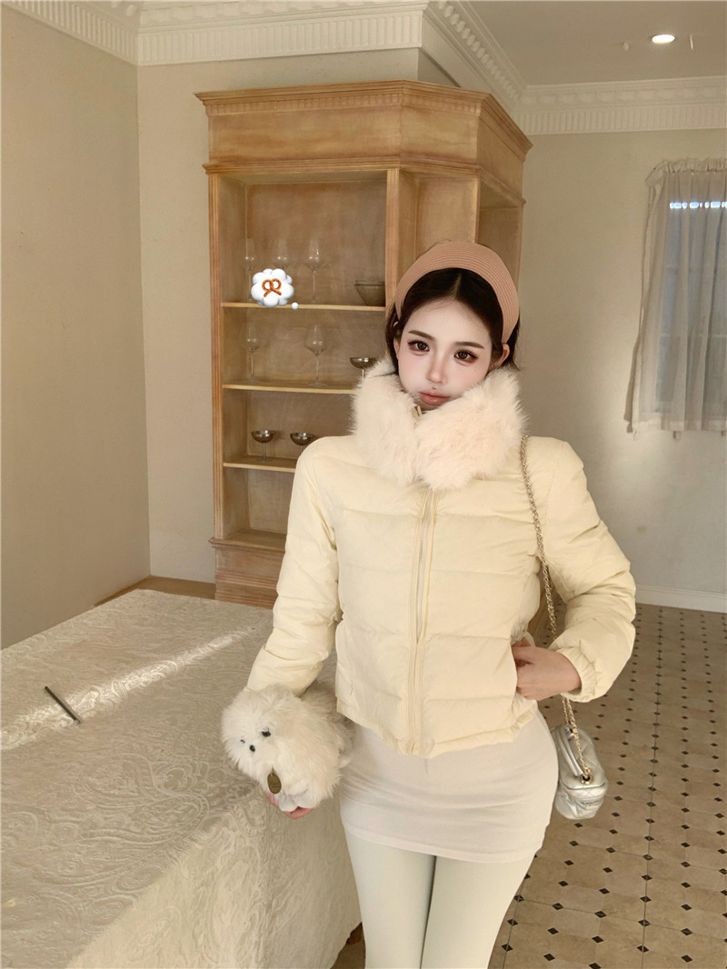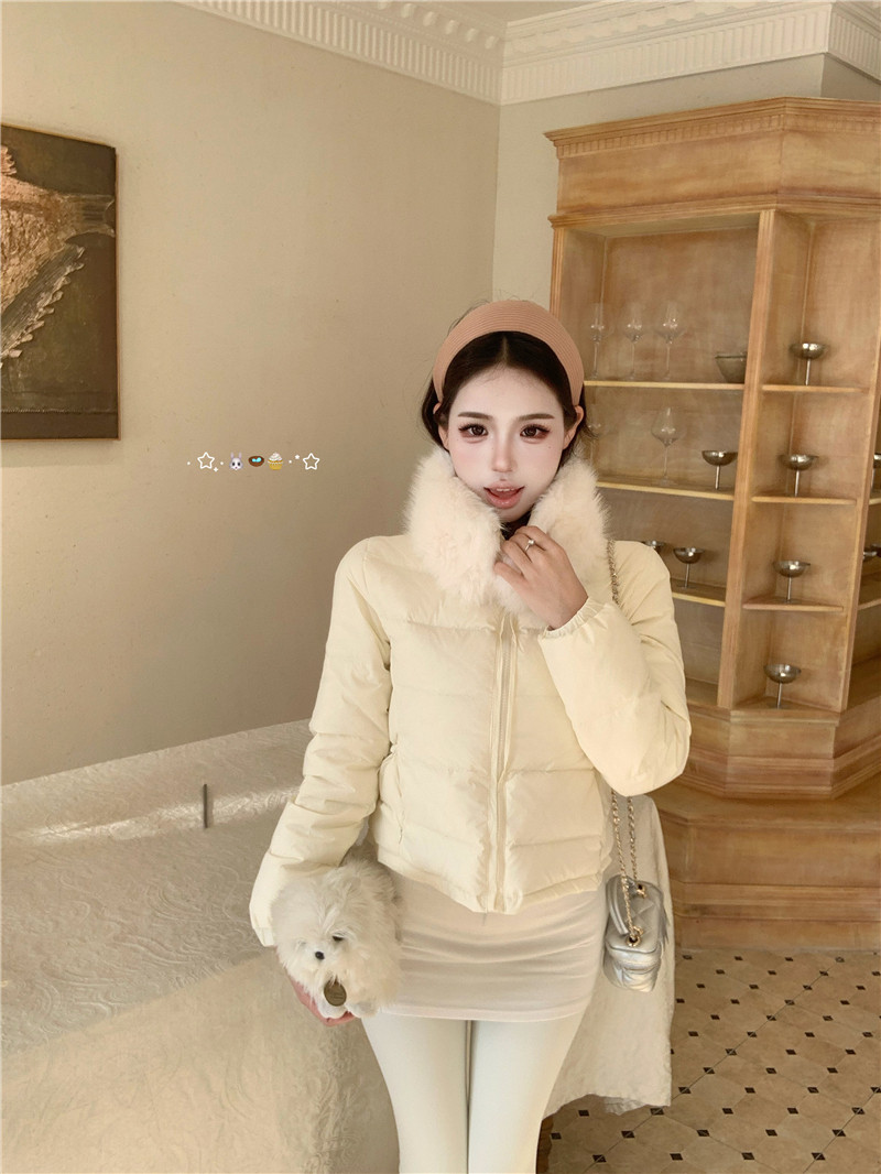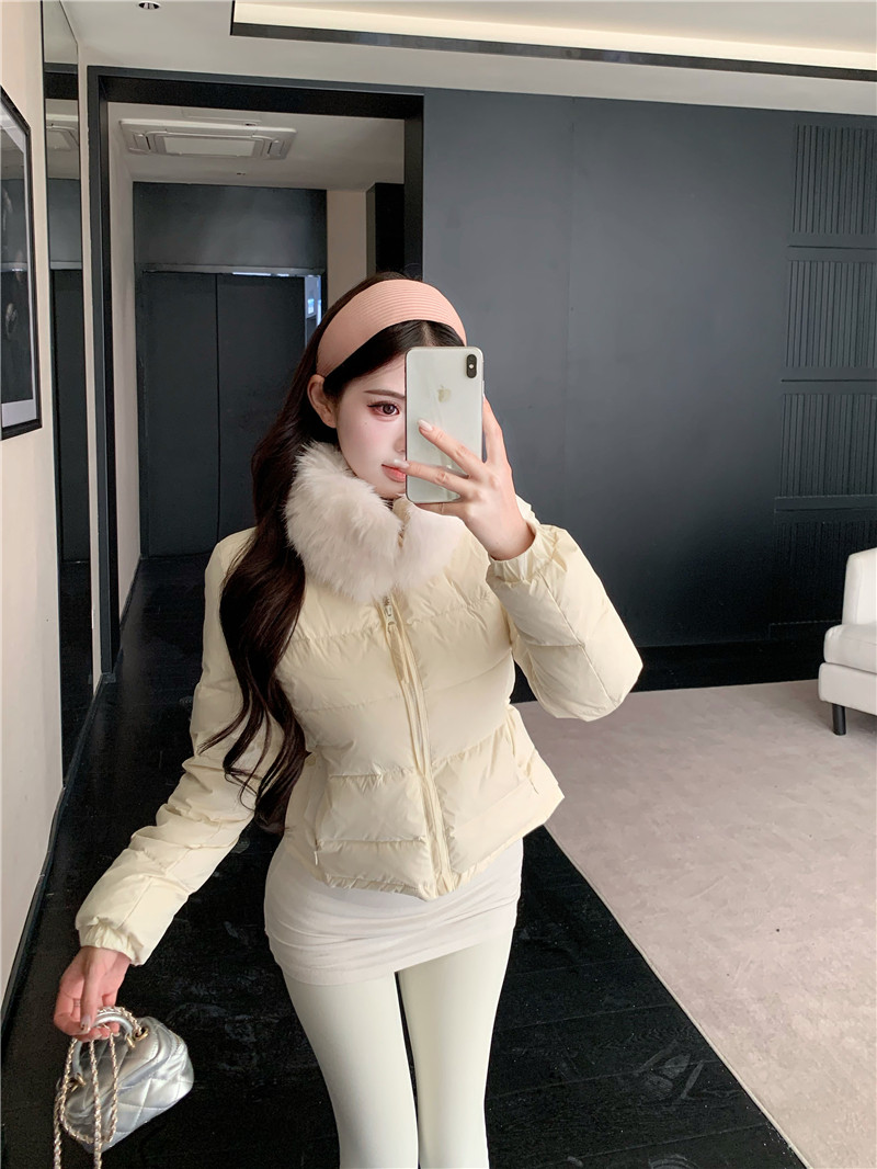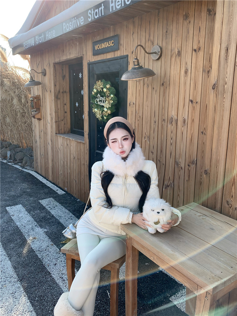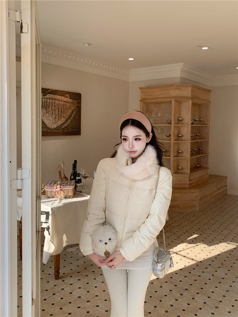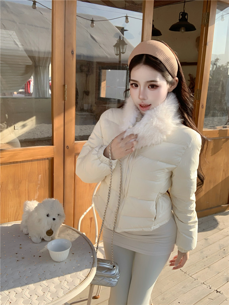 Korean version of pink warm fur collar cotton coat for women winter versatile loose down jacket zipper slimming cotton coat and jacket