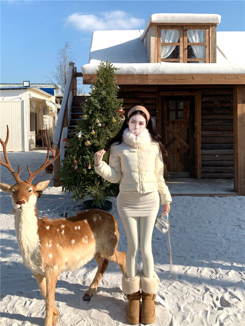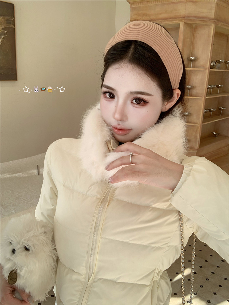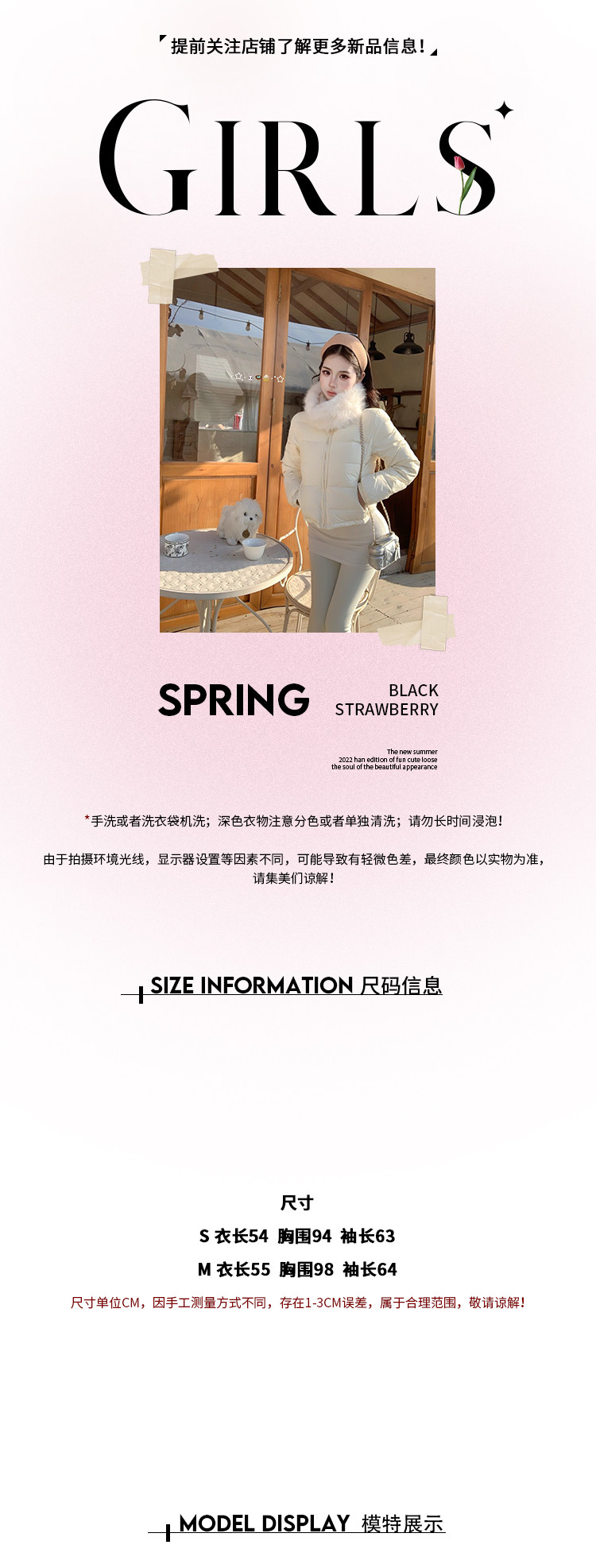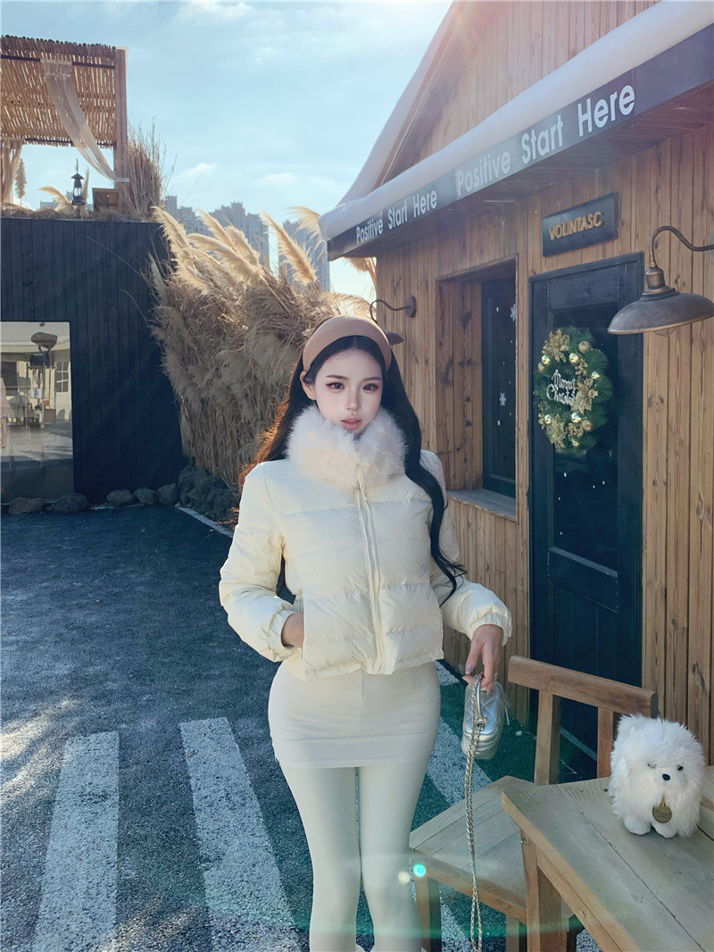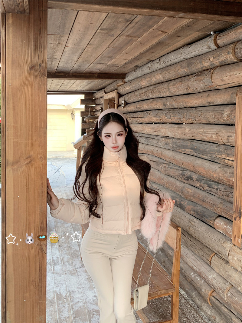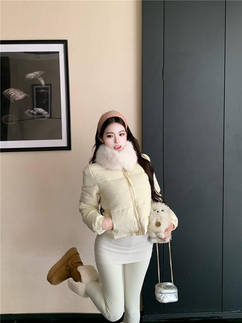 Korean version of pink warm fur collar cotton coat for women winter versatile loose down jacket zipper slimming cotton coat and jacket