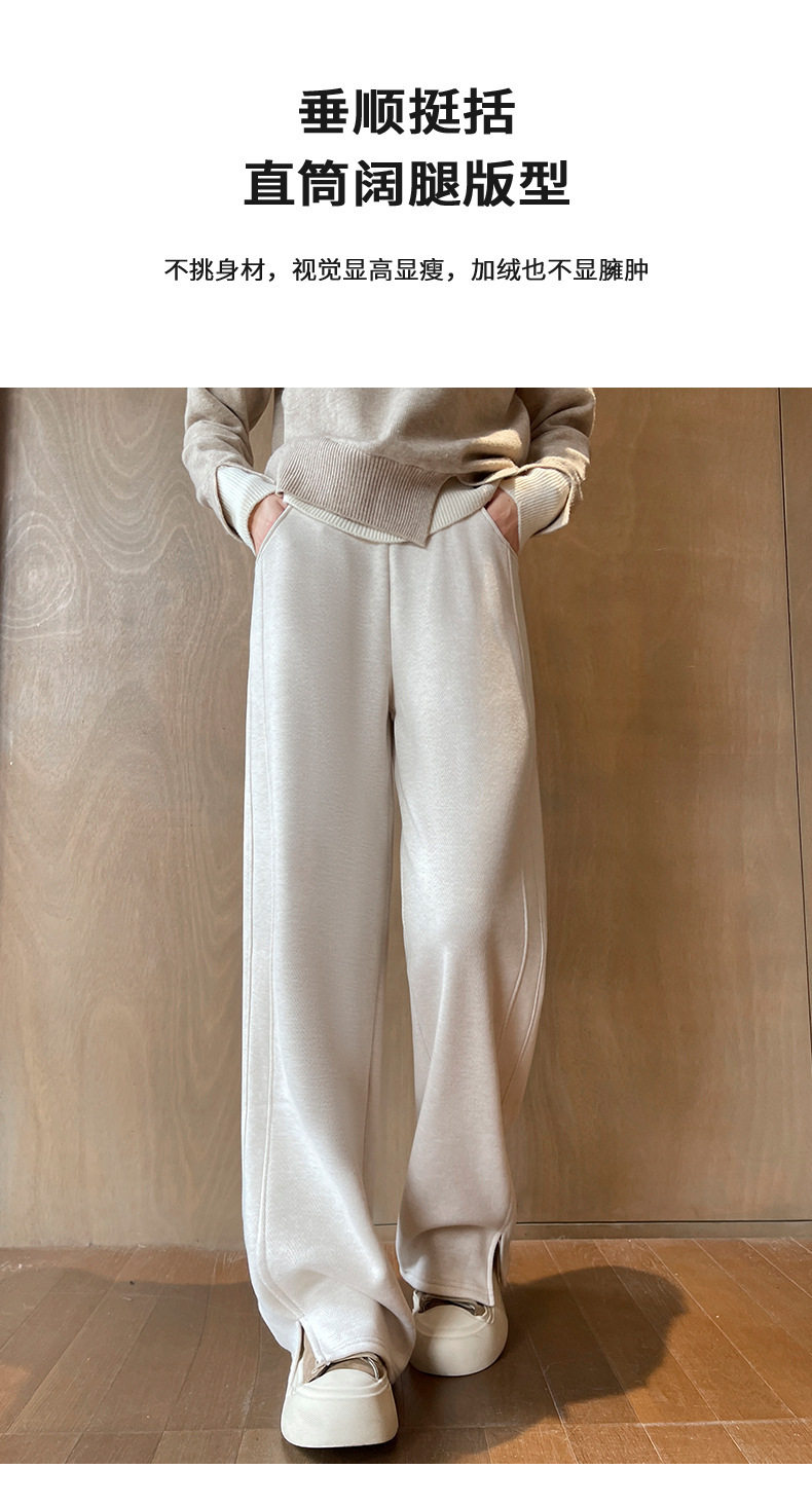Korean-style velvet wide-leg pants for women 2025 spring, autumn and winter slit loose high-waisted herringbone trousers drapey sports sweatpants